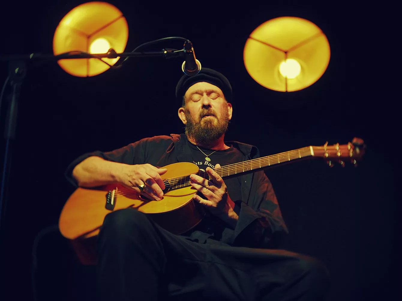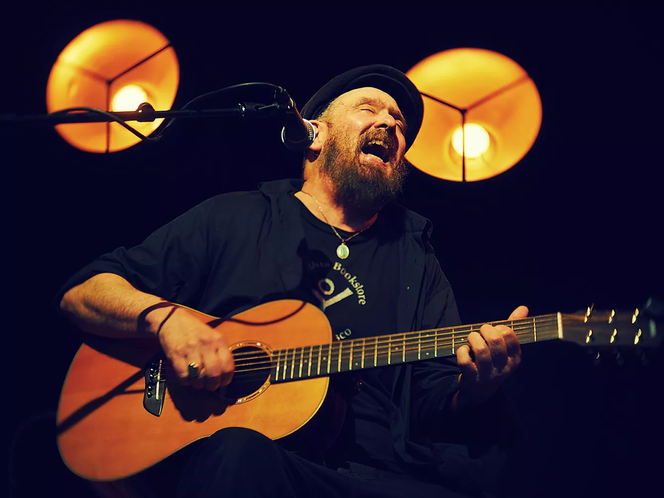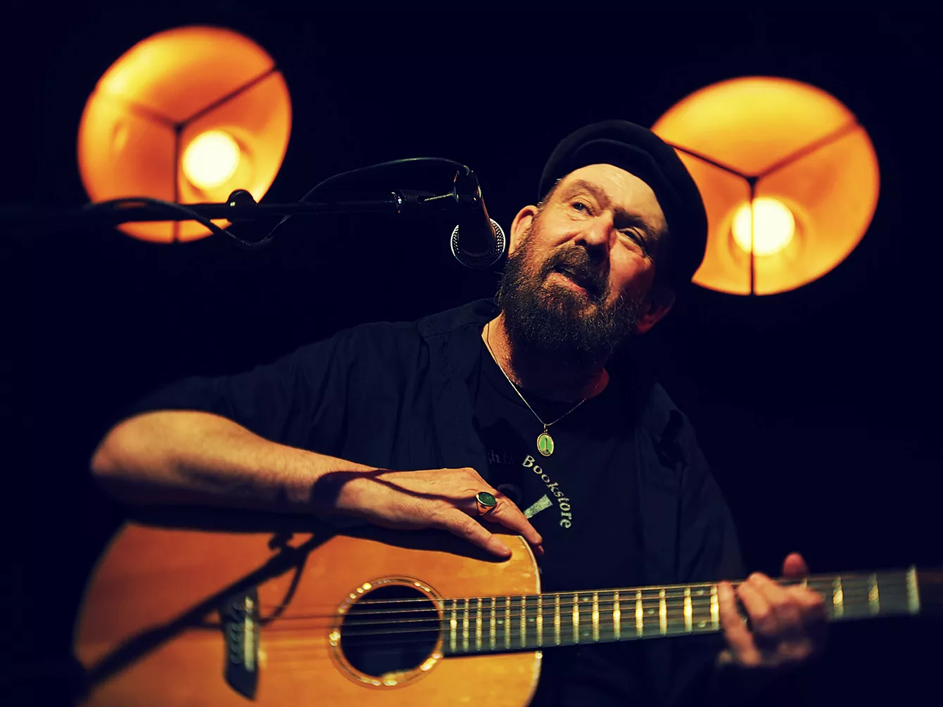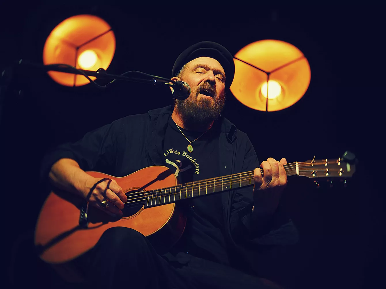 Det er næsten for godt vejr og for velværeskabende omgivelser at opleve Mark Eitzel i, da han træder på scenen lørdag eftermiddag klokken 17 på baren VinDanmark på Aarhus Ø. Foråret er kommet til byen, solens stråler reflekteres i den boblende vin i glassene, lystbådene er vel at blive gjort sæsonklare,