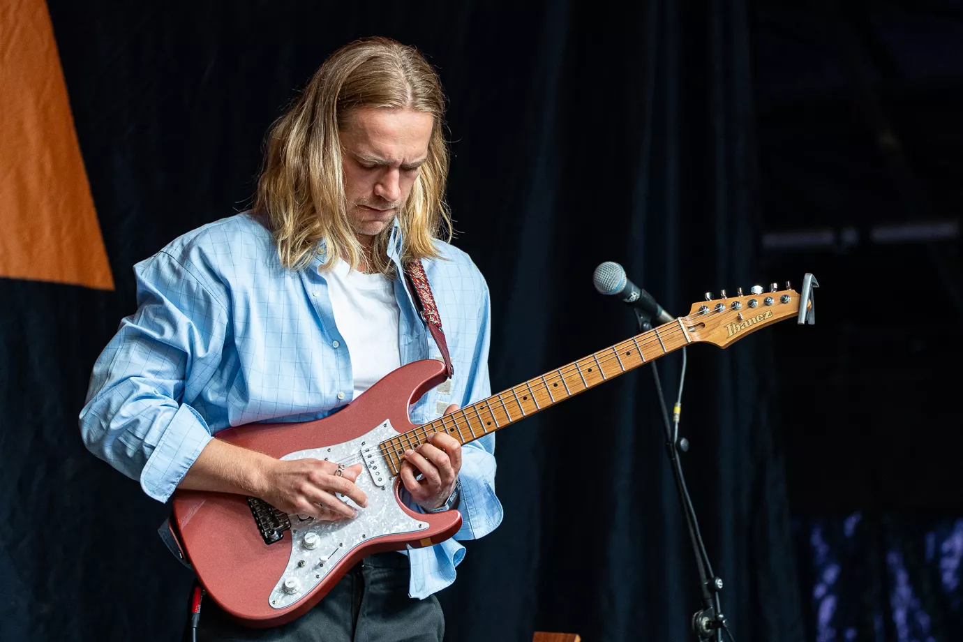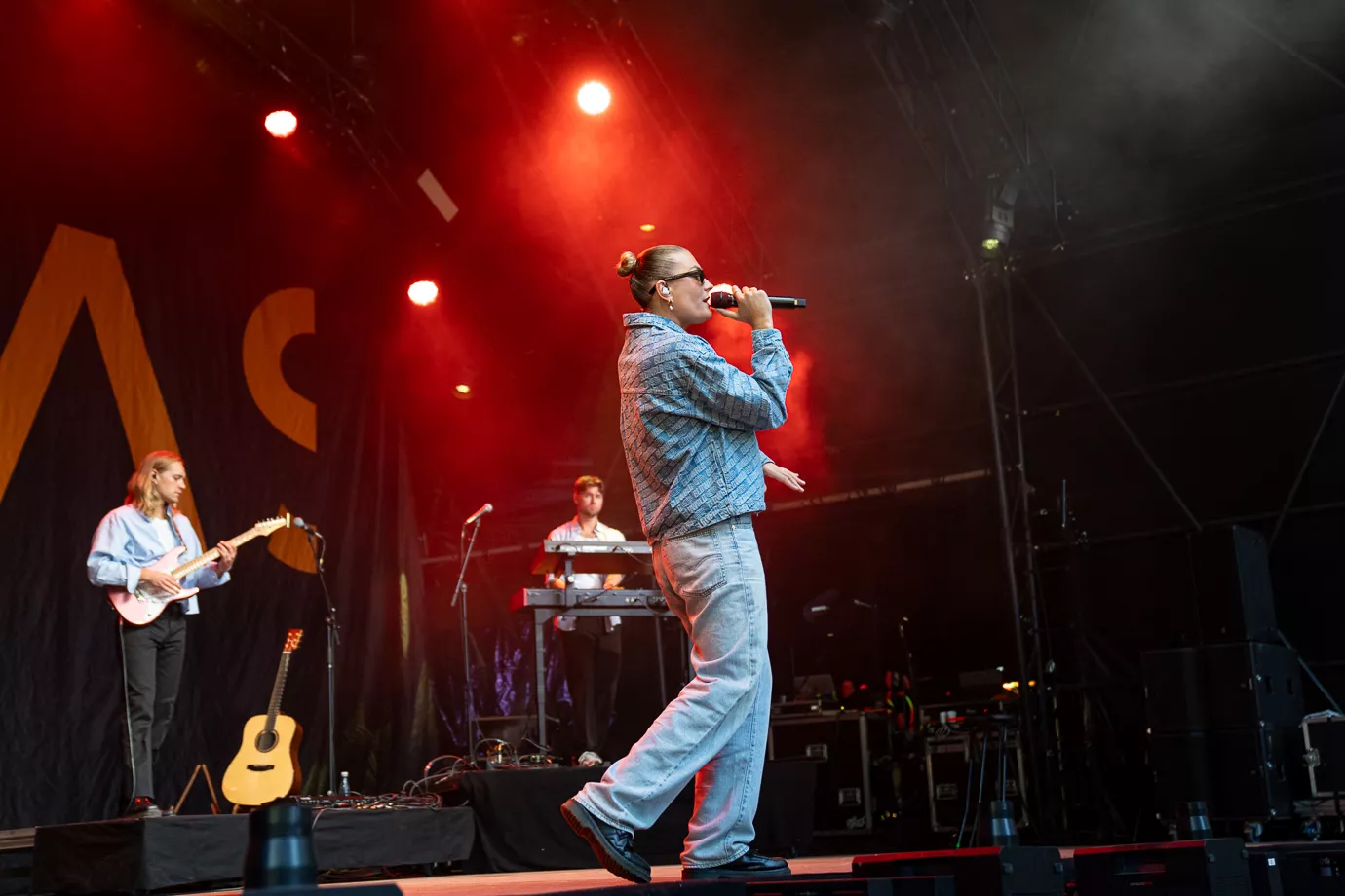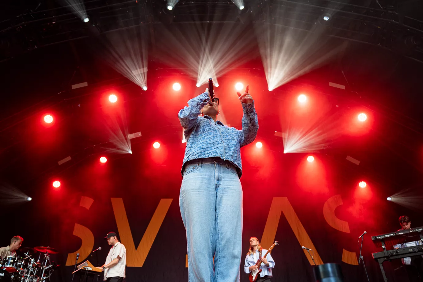 Det er en god flok, der har fundet vejen til The Hood denne tidlige fredag aften. Det er ikke tætpakket til koncertstart. Bagtæppet er sortklædt med Svea S. skrevet som på hendes debutalbum Forevigt i går (2025). Og det er også numrene fra det nyeste album, der får plads på sætlisten. Et