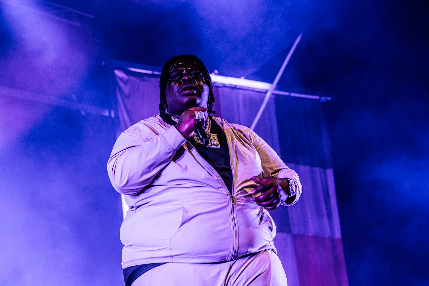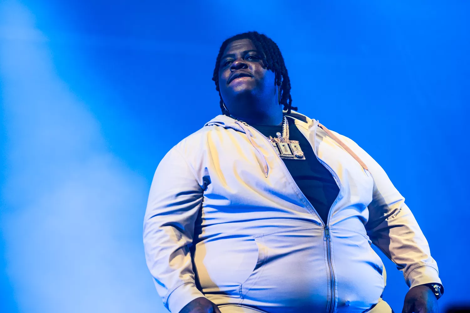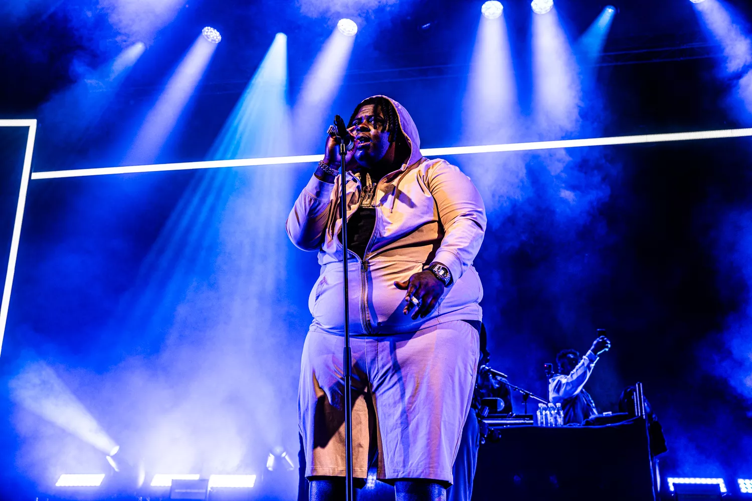 BigXthaPlug rapper med sin Rick Ross-dybe røst om at være “the biggest” og “the largest” på den titulære “The Largest” fra Take Care (2024). I dag på Avalon gik den store mand dog med både livrem og seler ind i det udsagn. Flankeret af en dj med forkærlighed for lyden af knusende glas og