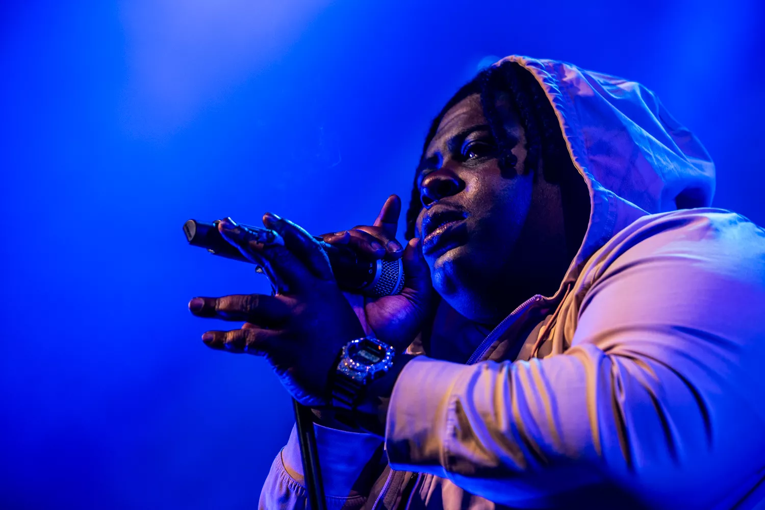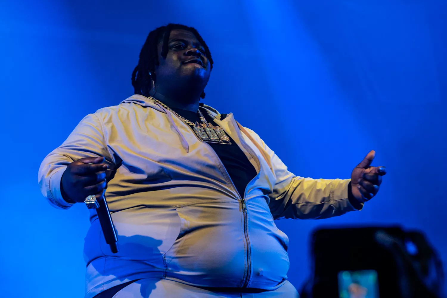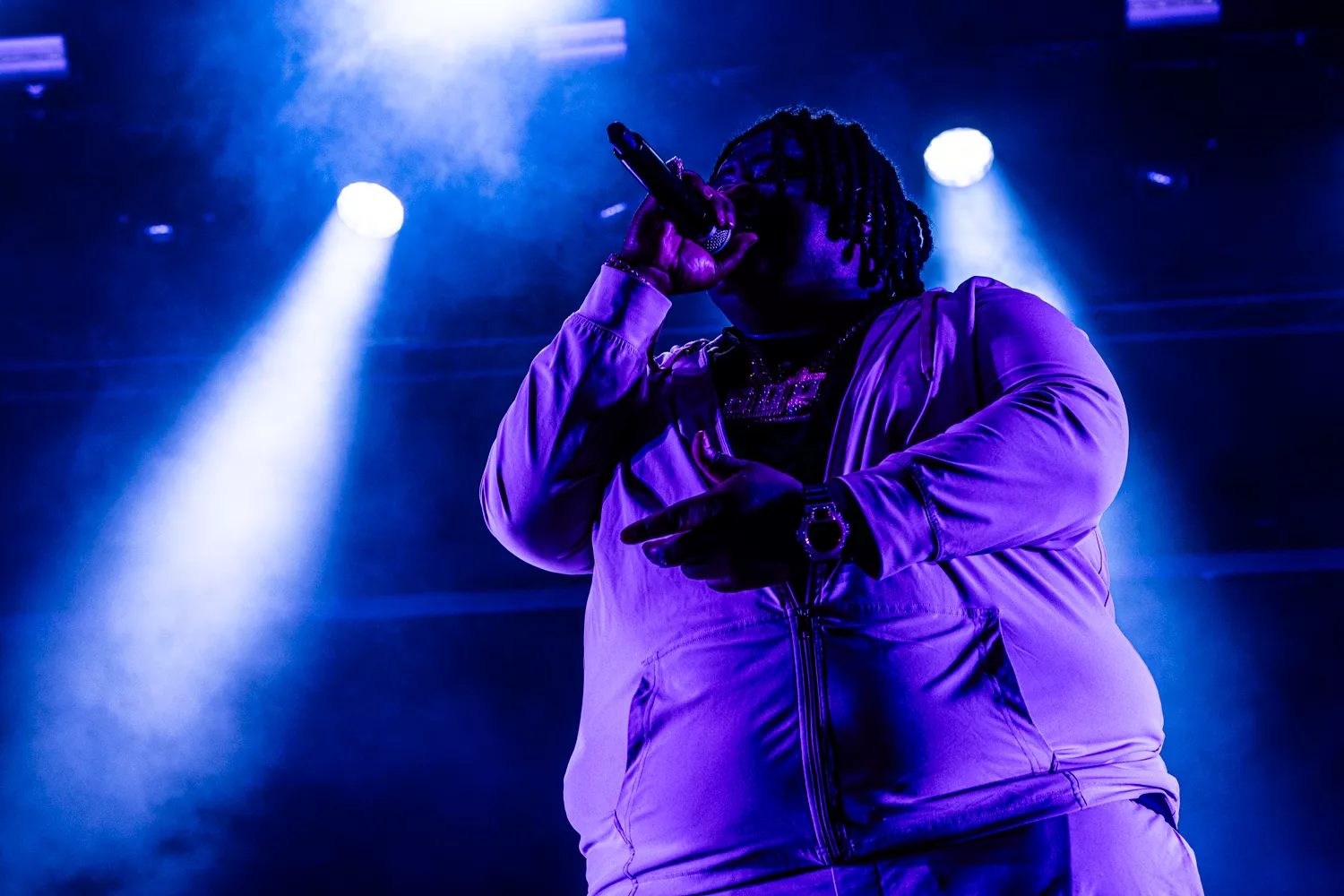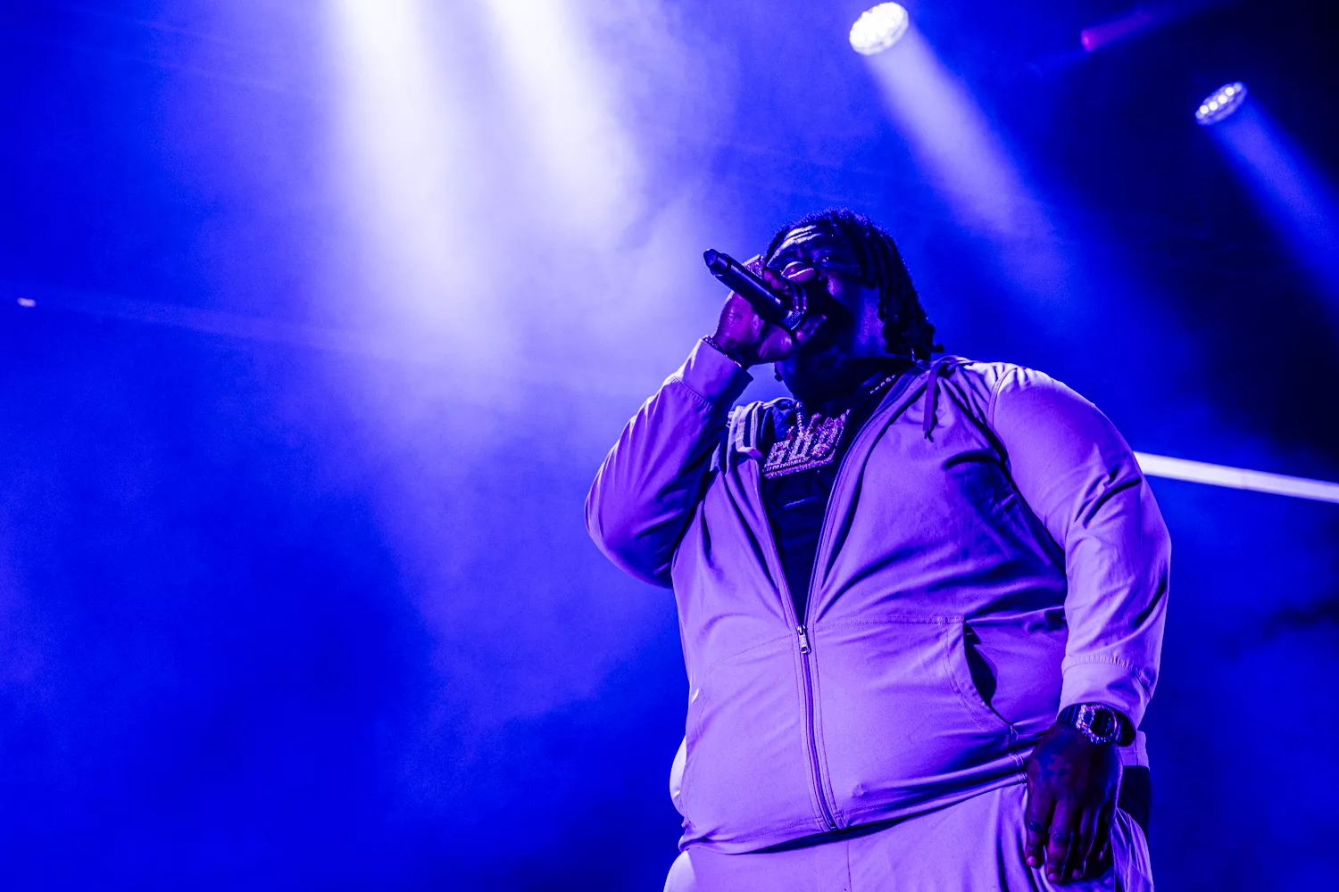BigXthaPlug rapper med sin Rick Ross-dybe røst om at være “the biggest” og “the largest” på den titulære “The Largest” fra Take Care (2024). I dag på Avalon gik den store mand dog med både livrem og seler ind i det udsagn. Flankeret af en dj med forkærlighed for lyden af knusende glas og