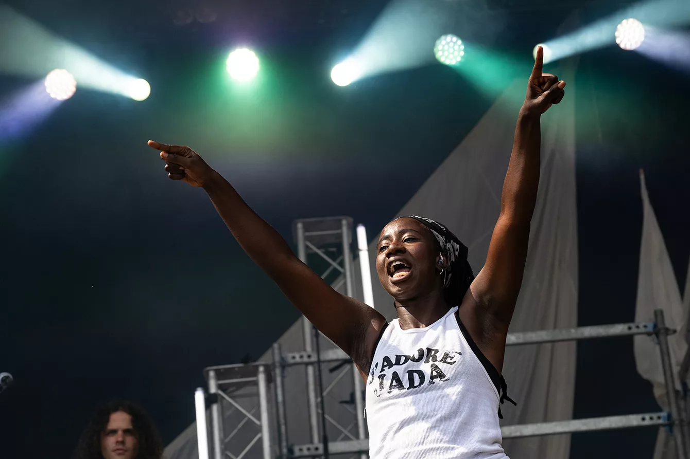 I det tidligste slot på en varm og overskyet dag, og inden festivalens fulde publikum har indfundet sig, går Jada på scenen midt i skyerne og får solen til at bryde igennem.