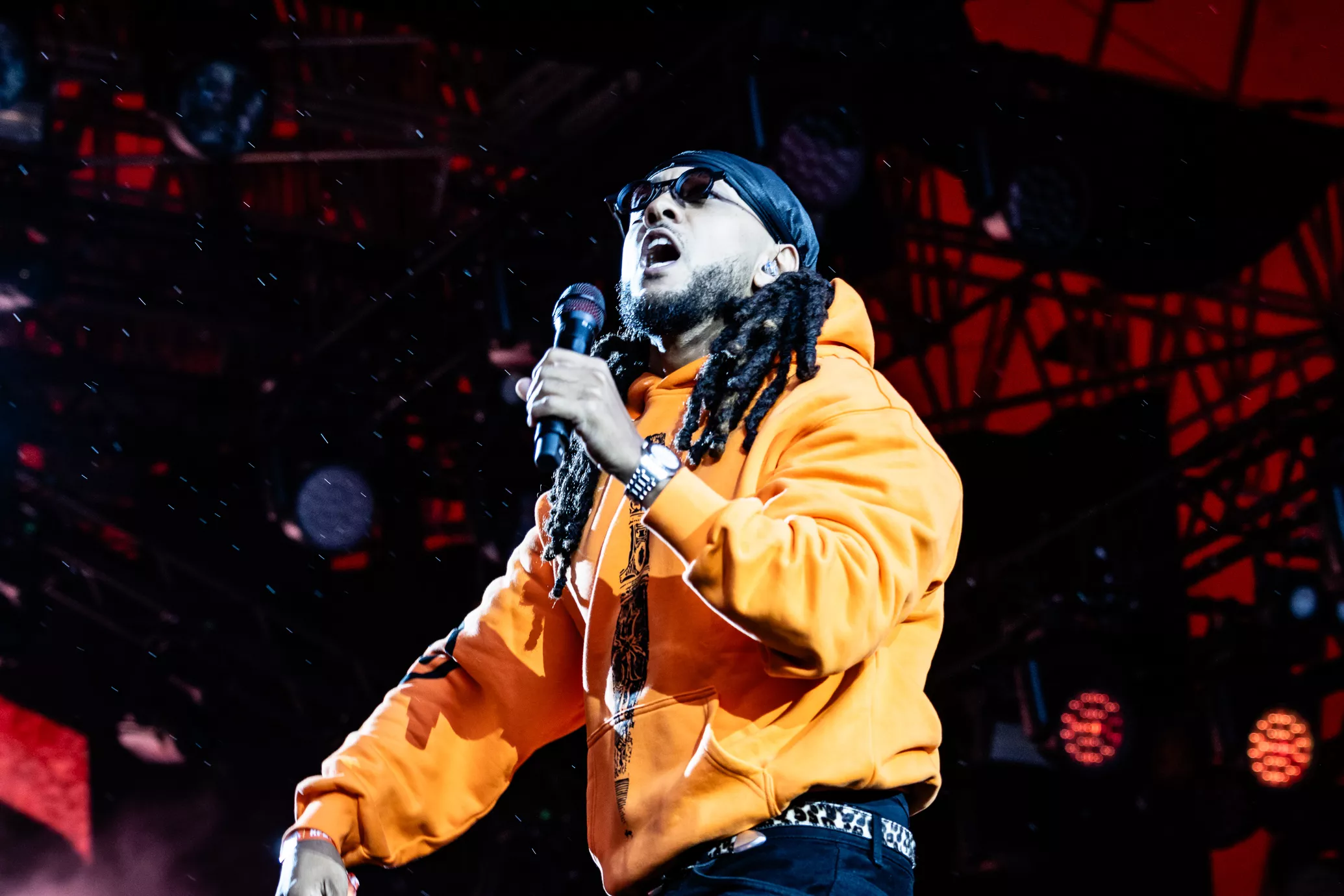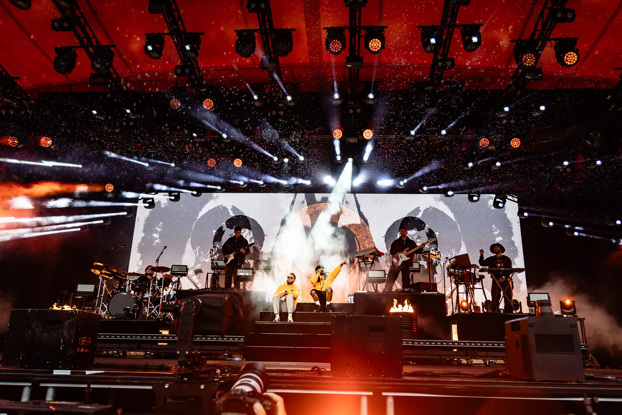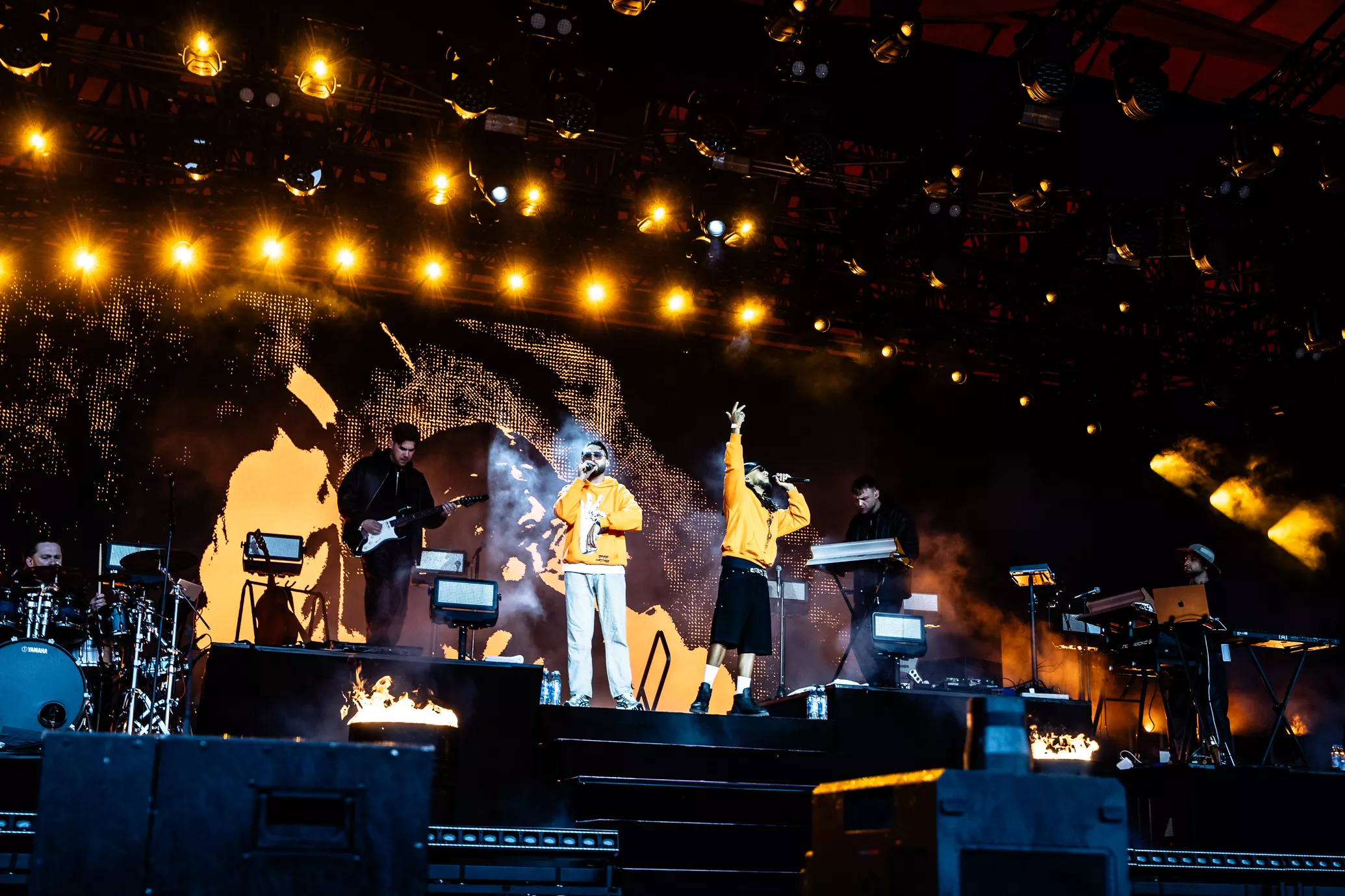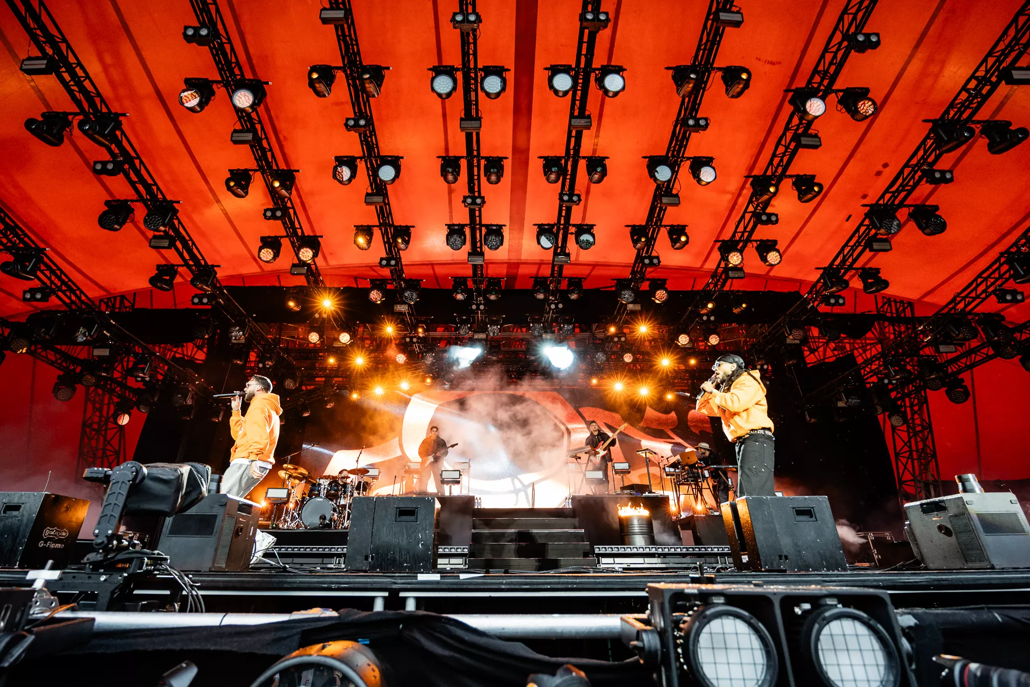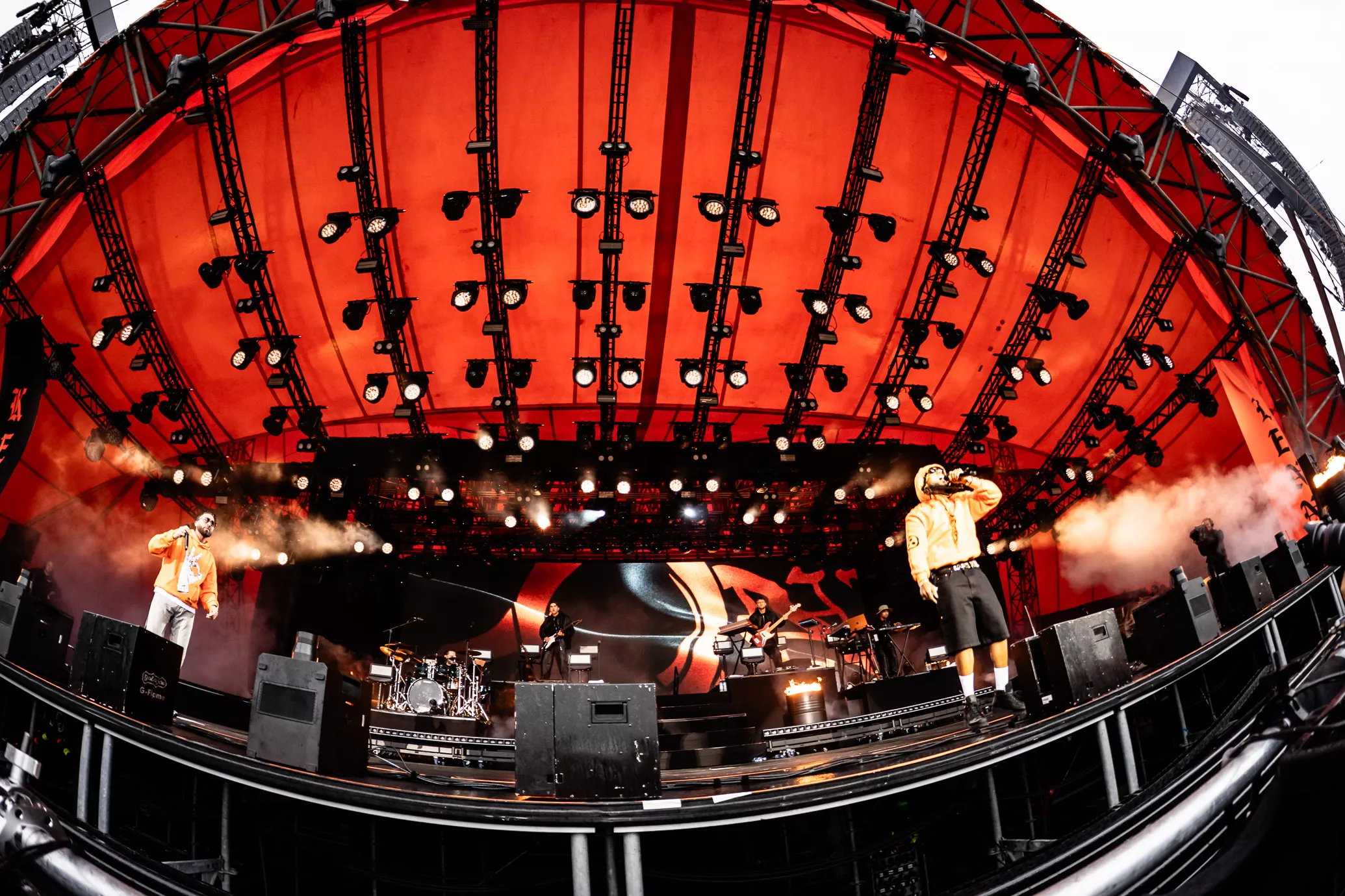 De rustne olietønder på scenen testes af med ild, da jeg træder ind i pitten i selskab med et hav af tændte unge mennesker. To aflange orange og sorte bannere med "Kenny" skrevet horisontalt på dem blæser i vinden i hver sin side af scenen. Jeg falder i snak med et par gutter foran mig, som fortæller,