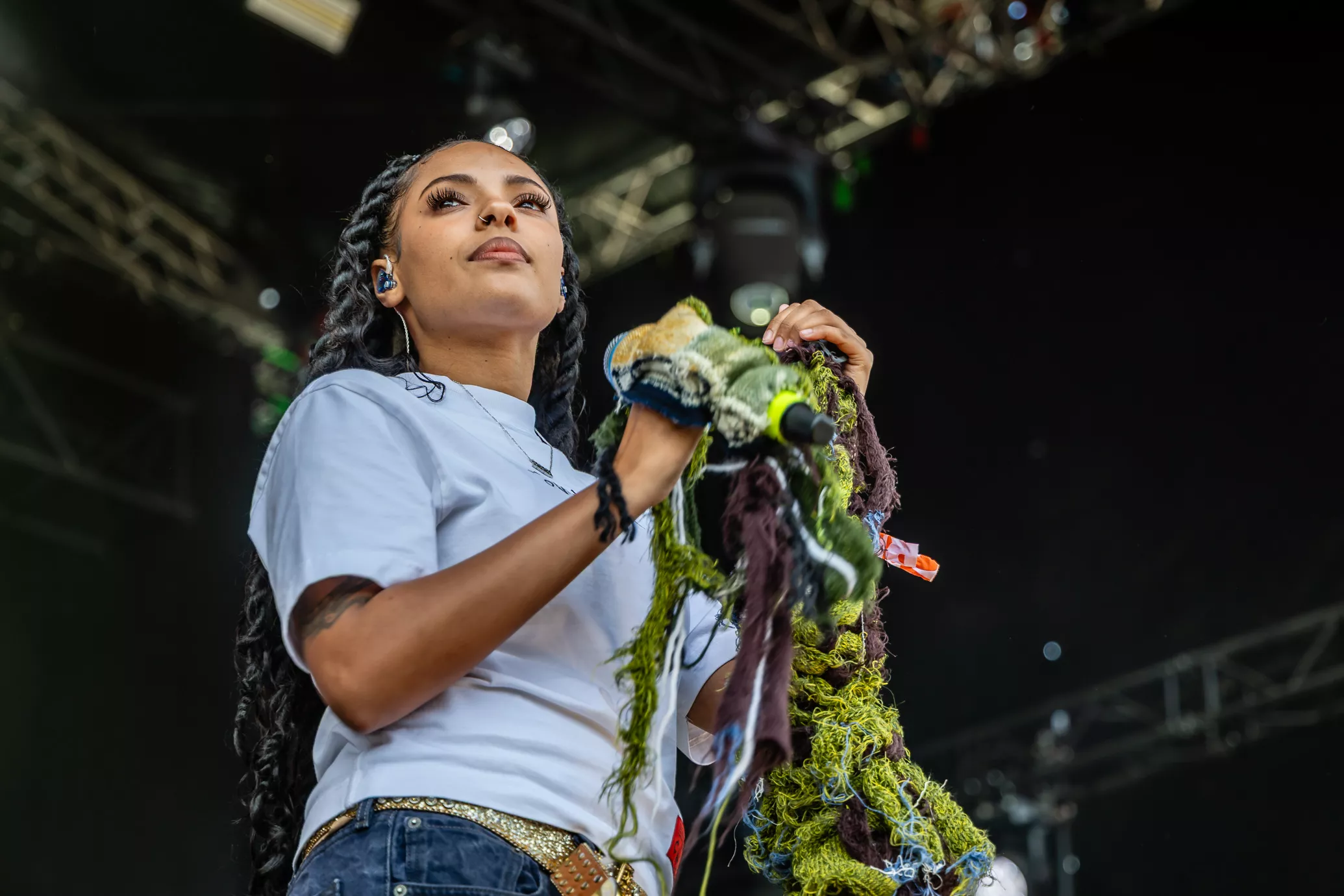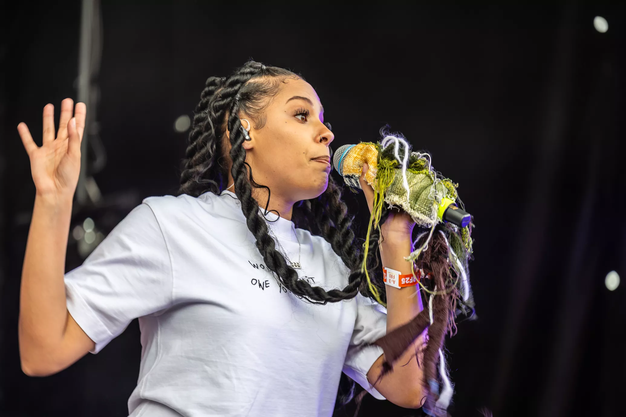 Jeg indrømmer blankt, at jeg blev en lille smule skuffet, da jeg mødte op på Eos-scenen for at se, at den amerikanske rapper og sanger Samara Cyn kun havde medbragt en dj og ikke et band til sin Eos-koncert. Jeg er med på, at konceptet med rapper og dj-pult er et af grundelementerne inden for hiphop,