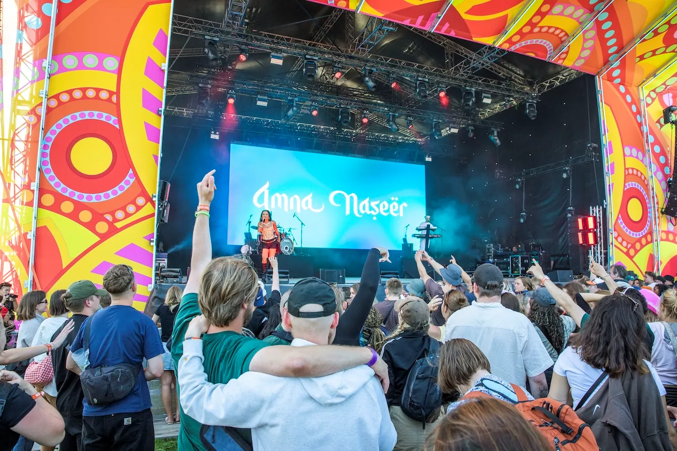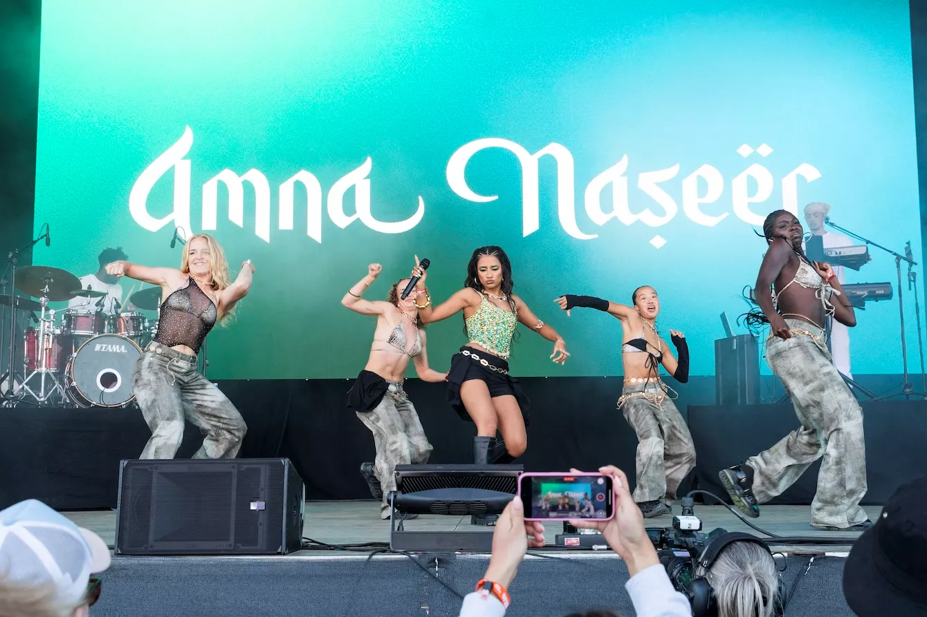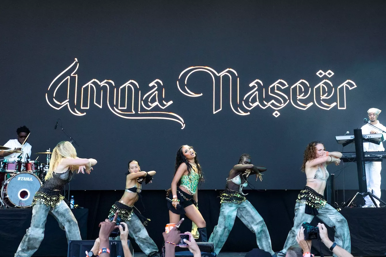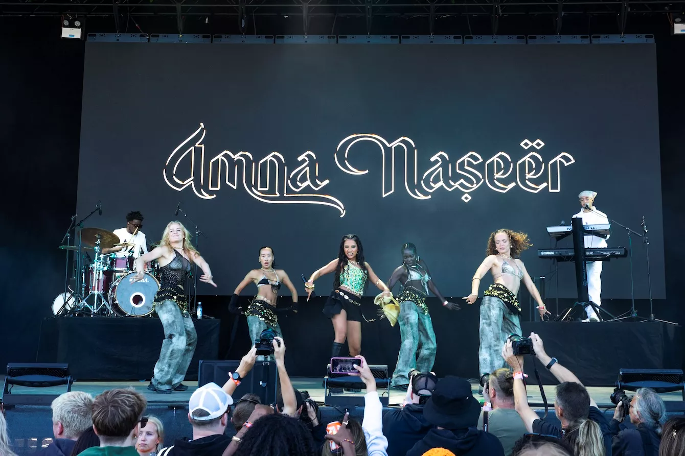 Pladsen foran Eos-scenen er langtfra proppet, da dansk-pakistanske Amna Naseer går på scenen på Roskildes første musikdag. Aftensolen luner, og en let vind blæser hen over publikum, der sidder spredt og småsnakker, inden koncerten skal til at begynde.