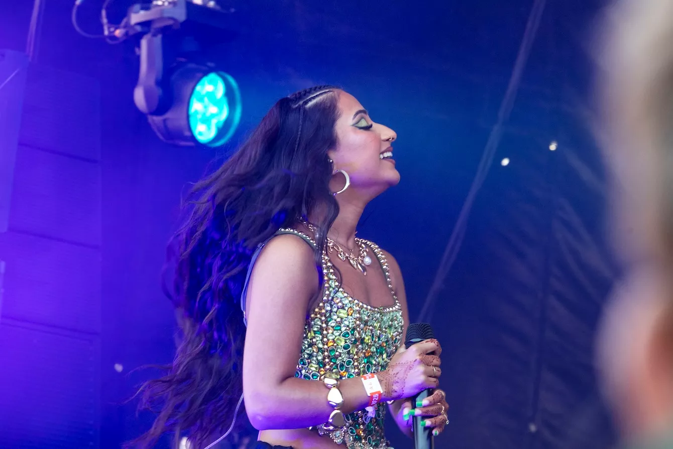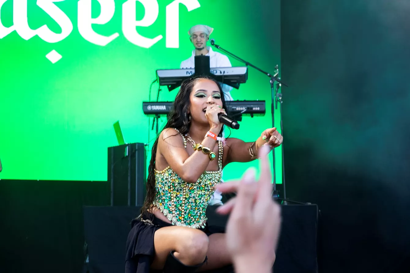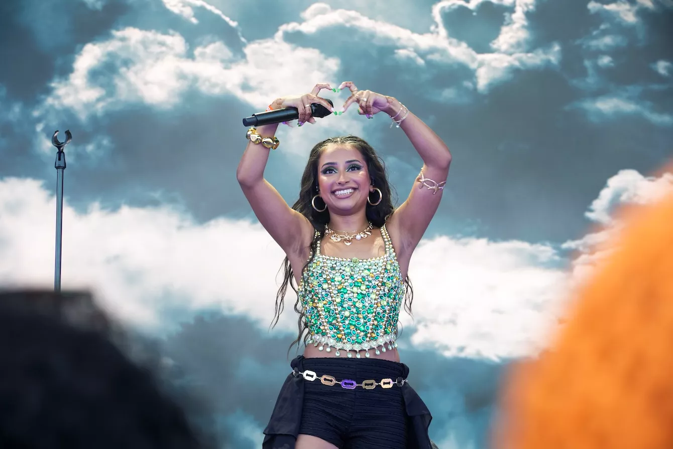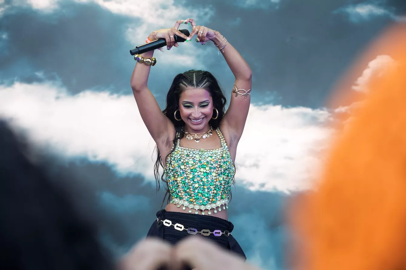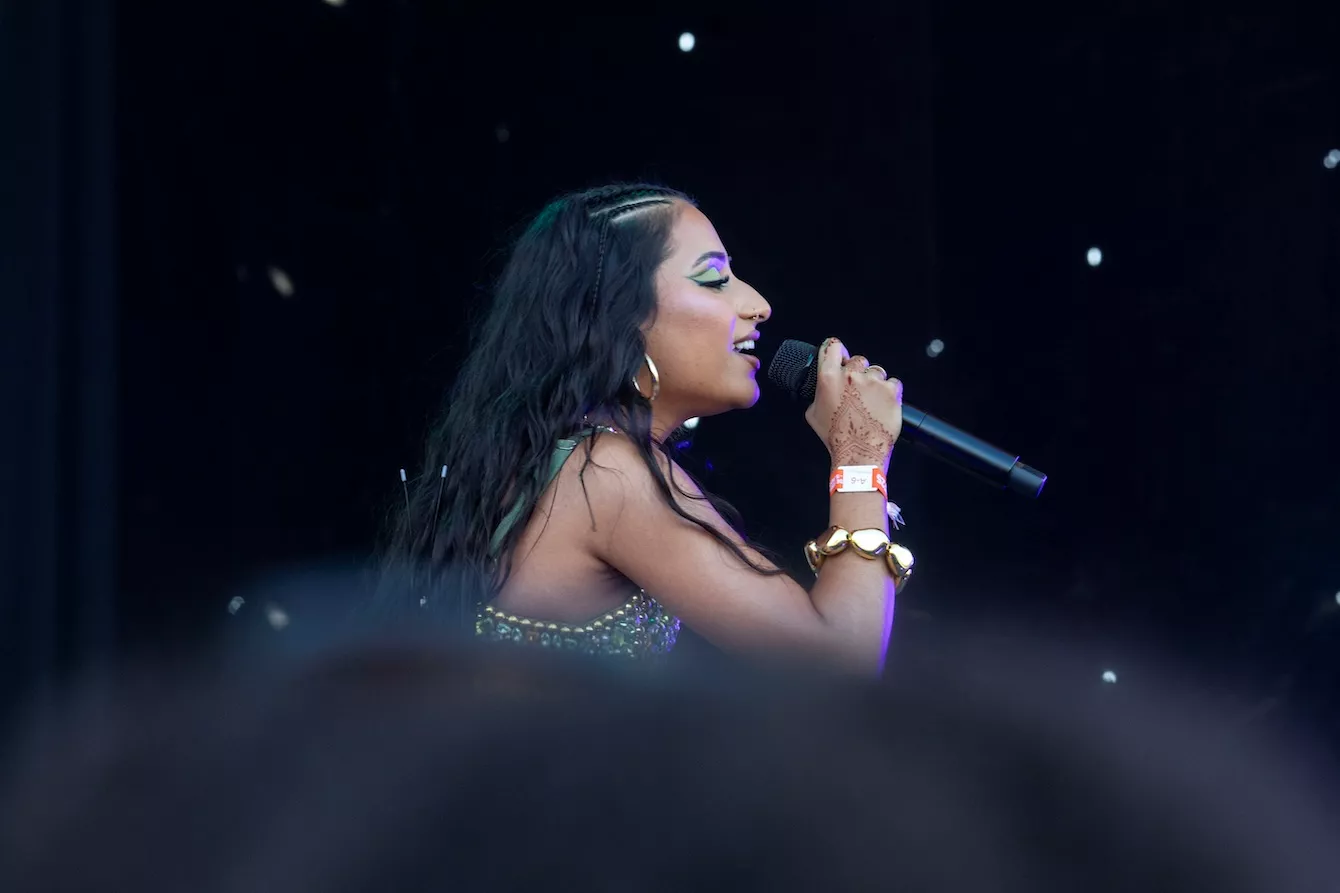 Pladsen foran Eos-scenen er langtfra proppet, da dansk-pakistanske Amna Naseer går på scenen på Roskildes første musikdag. Aftensolen luner, og en let vind blæser hen over publikum, der sidder spredt og småsnakker, inden koncerten skal til at begynde.
