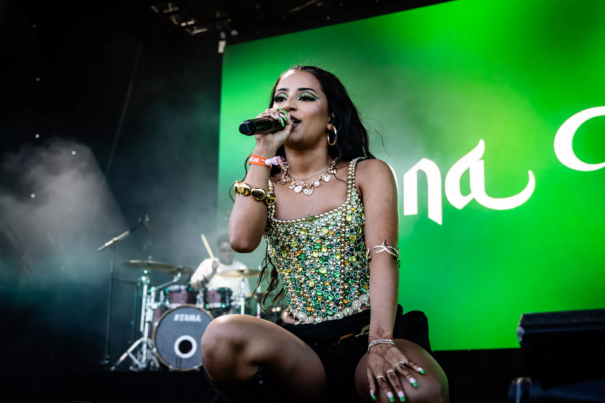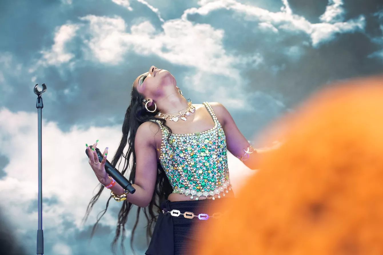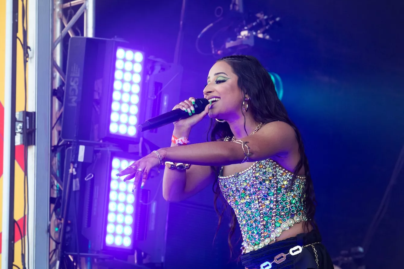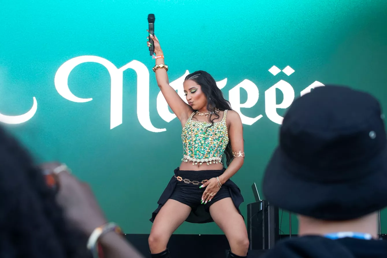Pladsen foran Eos-scenen er langtfra proppet, da dansk-pakistanske Amna Naseer går på scenen på Roskildes første musikdag. Aftensolen luner, og en let vind blæser hen over publikum, der sidder spredt og småsnakker, inden koncerten skal til at begynde.