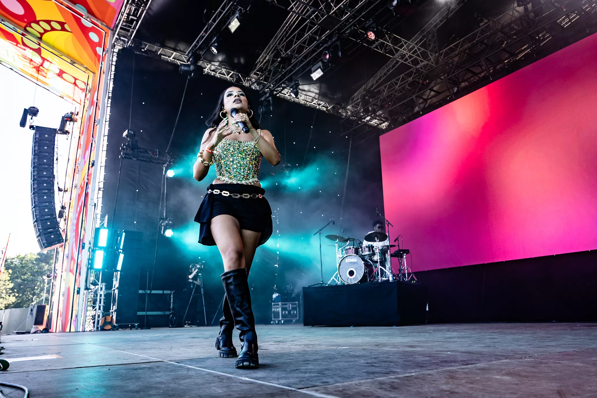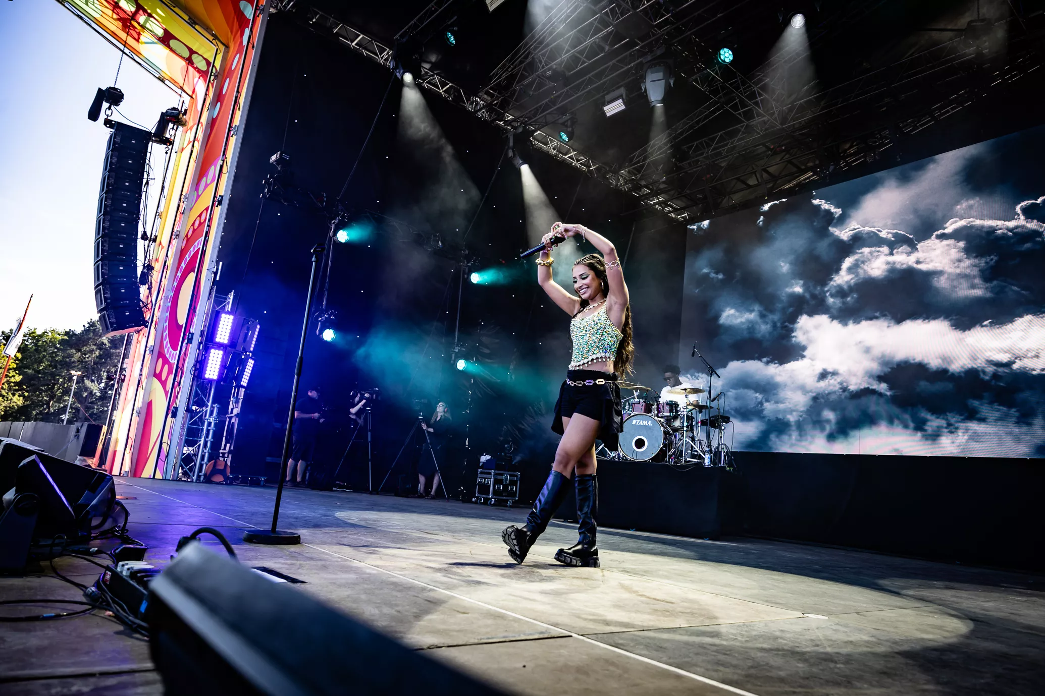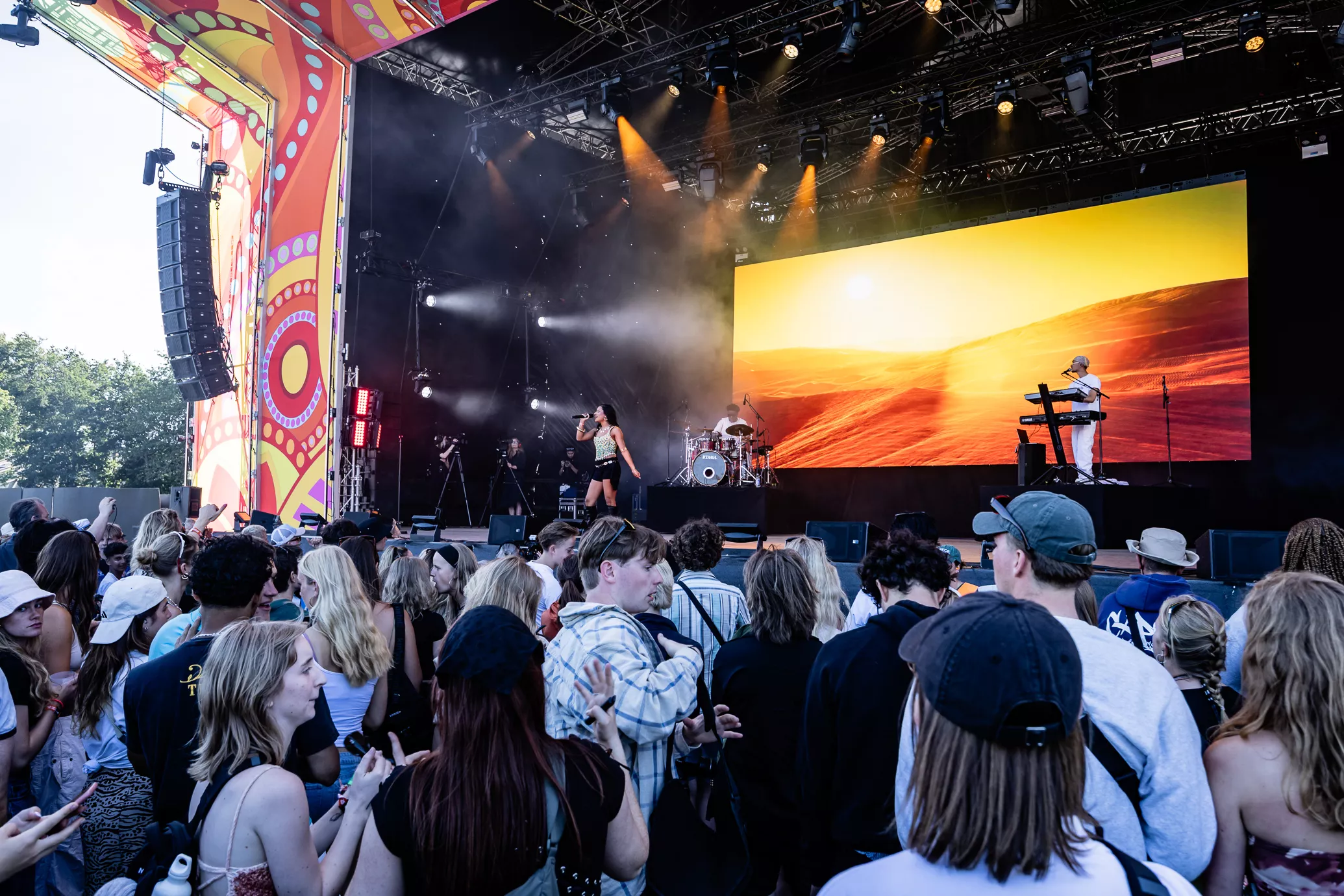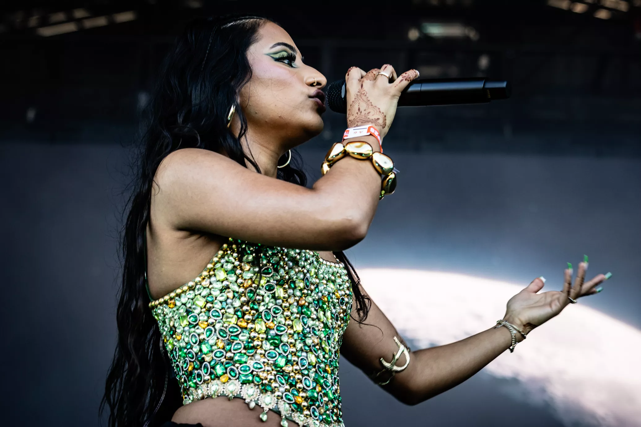 Pladsen foran Eos-scenen er langtfra proppet, da dansk-pakistanske Amna Naseer går på scenen på Roskildes første musikdag. Aftensolen luner, og en let vind blæser hen over publikum, der sidder spredt og småsnakker, inden koncerten skal til at begynde.