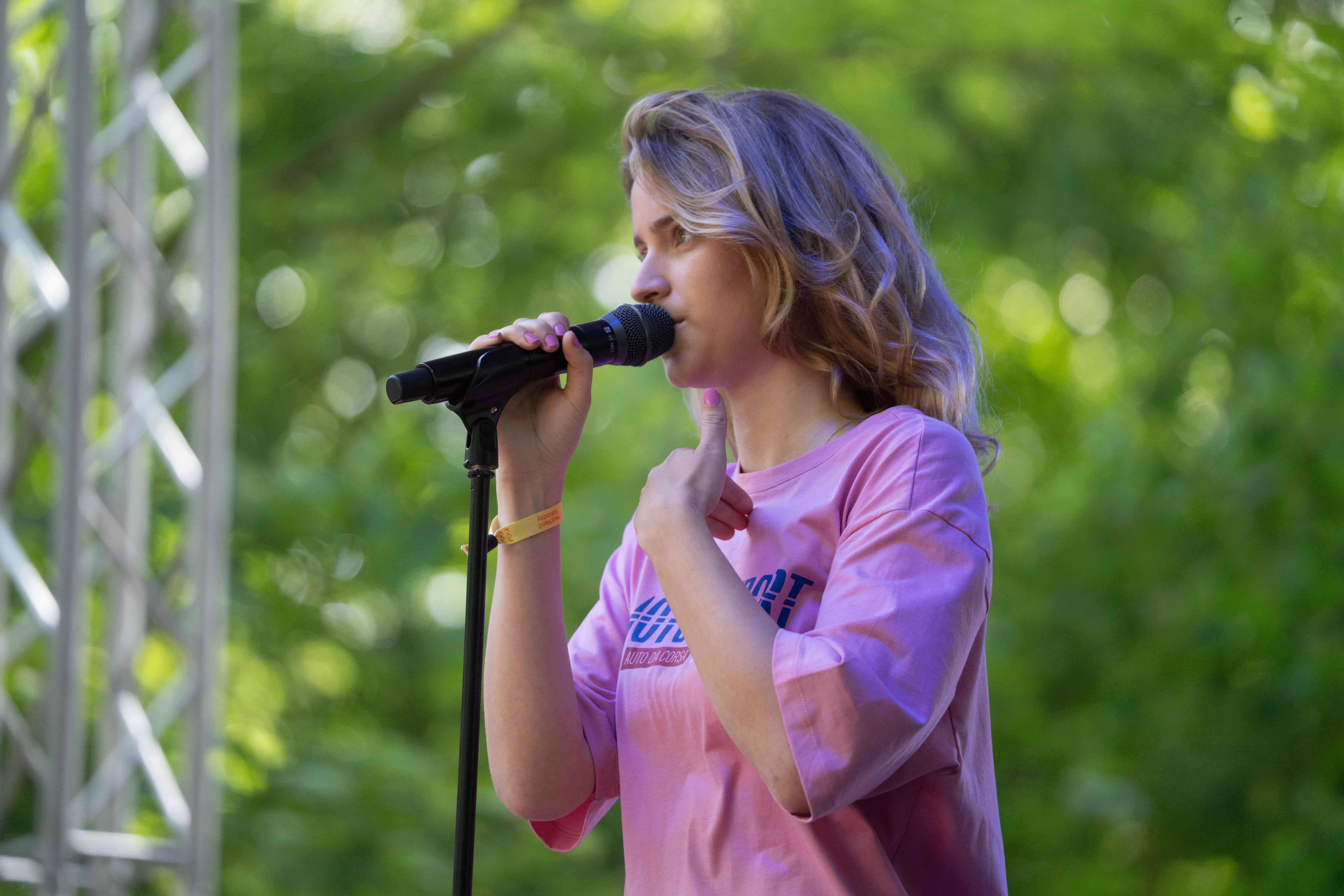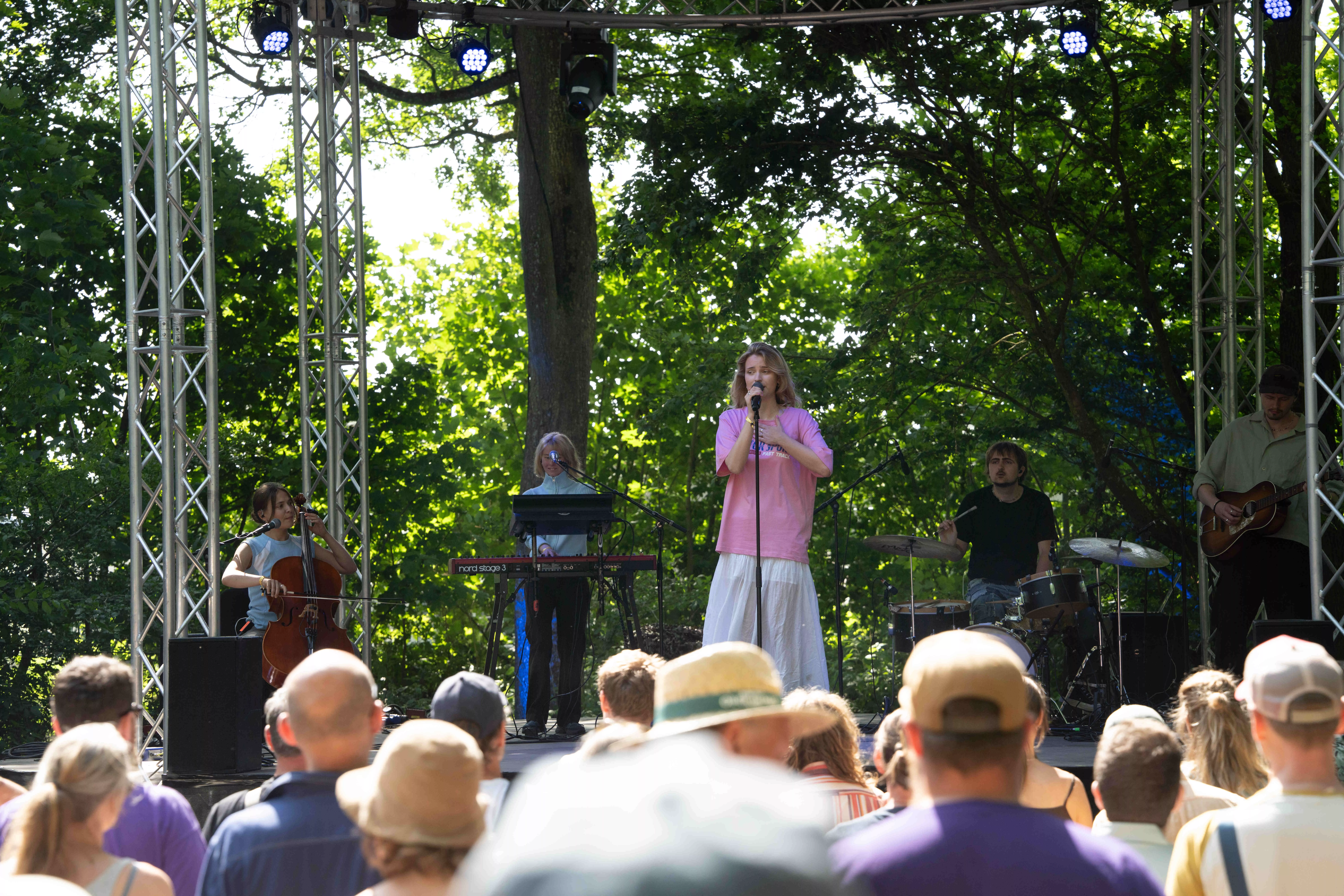 Det er ikke mange mennesker, der har fundet vej til Diorama-scenen lørdag eftermiddag, hvor Carlina de Place skal spille. Og det er ikke så mærkeligt – Annika spiller nemlig samtidigt på Highland-scenen, og med sin voksende popularitet og den kommende åbning af Orange Scene,