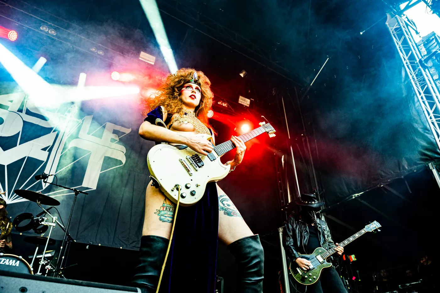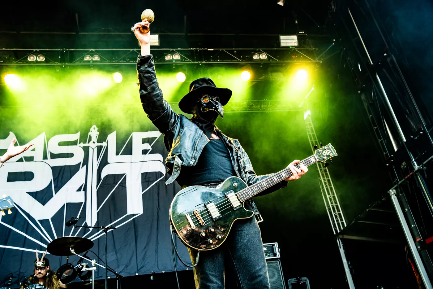 Det Brooklyn-baserede band Castle Rat går all in på 80’er-fantasy og rollespilsæstetik og består af de fire kostumeklædte karakterer The Rat Queen (vokal, guitar), The Plague Doctor (bas), The All-Seeing Druid (trommer) og The Count (guitar), der har til opgave at beskytte den pestbefængte, fiktive