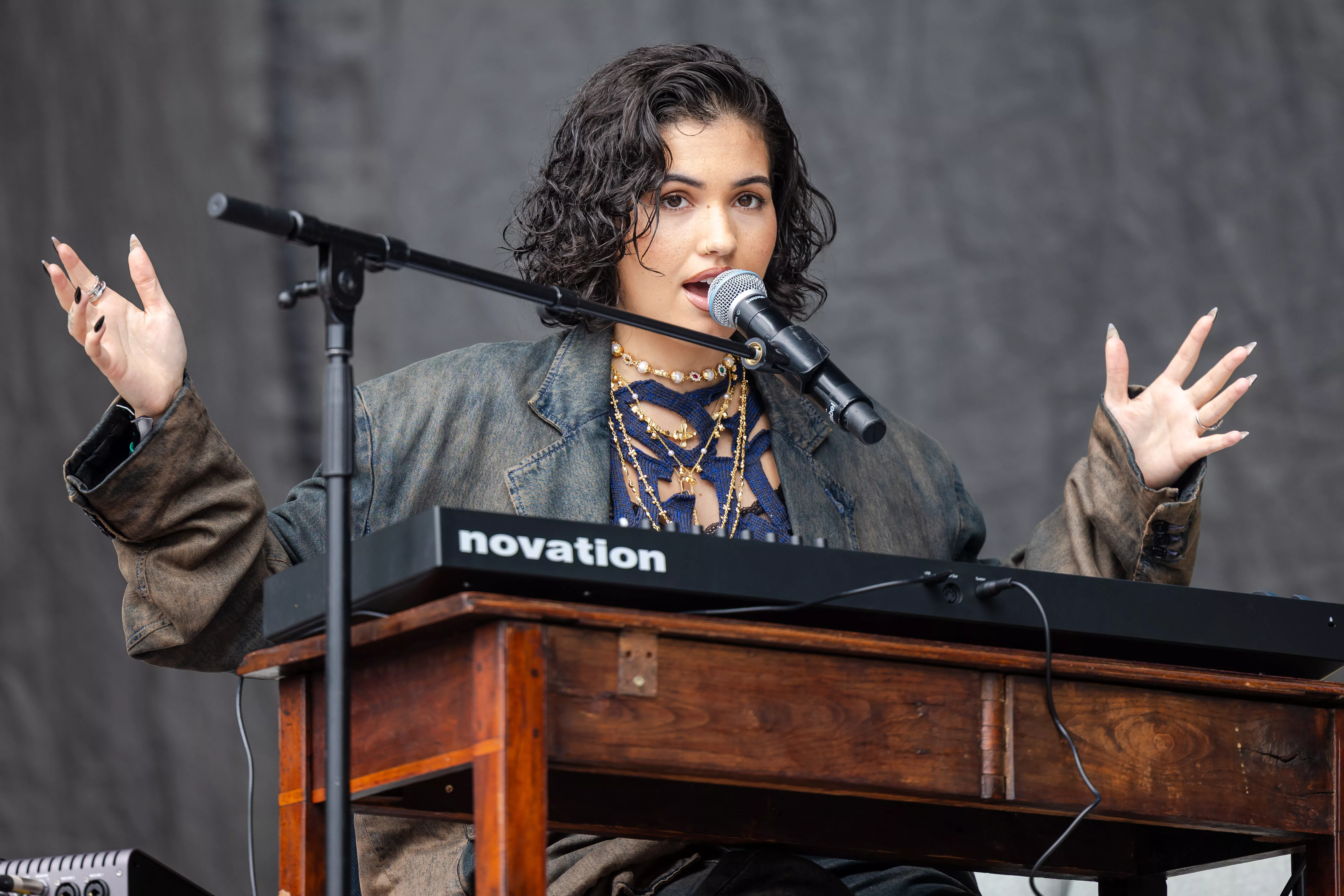 16.30 begynder backingtracket til “Is It Love?”, og kort efter kommer Mabel valsende ind på scenen og beviser med rund og fyldig stemmeføring, at hun er en veluddannet sanger. Men da sangen er omme, gør hun noget, der sætter tonen for resten af koncerten. Hun sætter sig ned.
