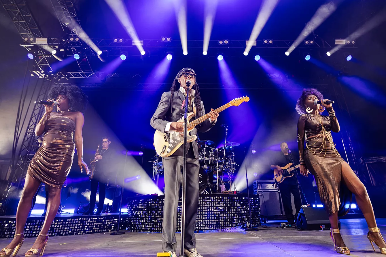 En del af de optrædende på Forever Festival har, hvis man skal være lidt hård, kun haft to-tre globale hits, men det kan ikke siges om Nile Rodgers. Manden har som sangskriver, guitarist og producer indtaget alverdens hitlister i næsten fem årtier – i slut-70’erne og start-80’erne med de to grupper