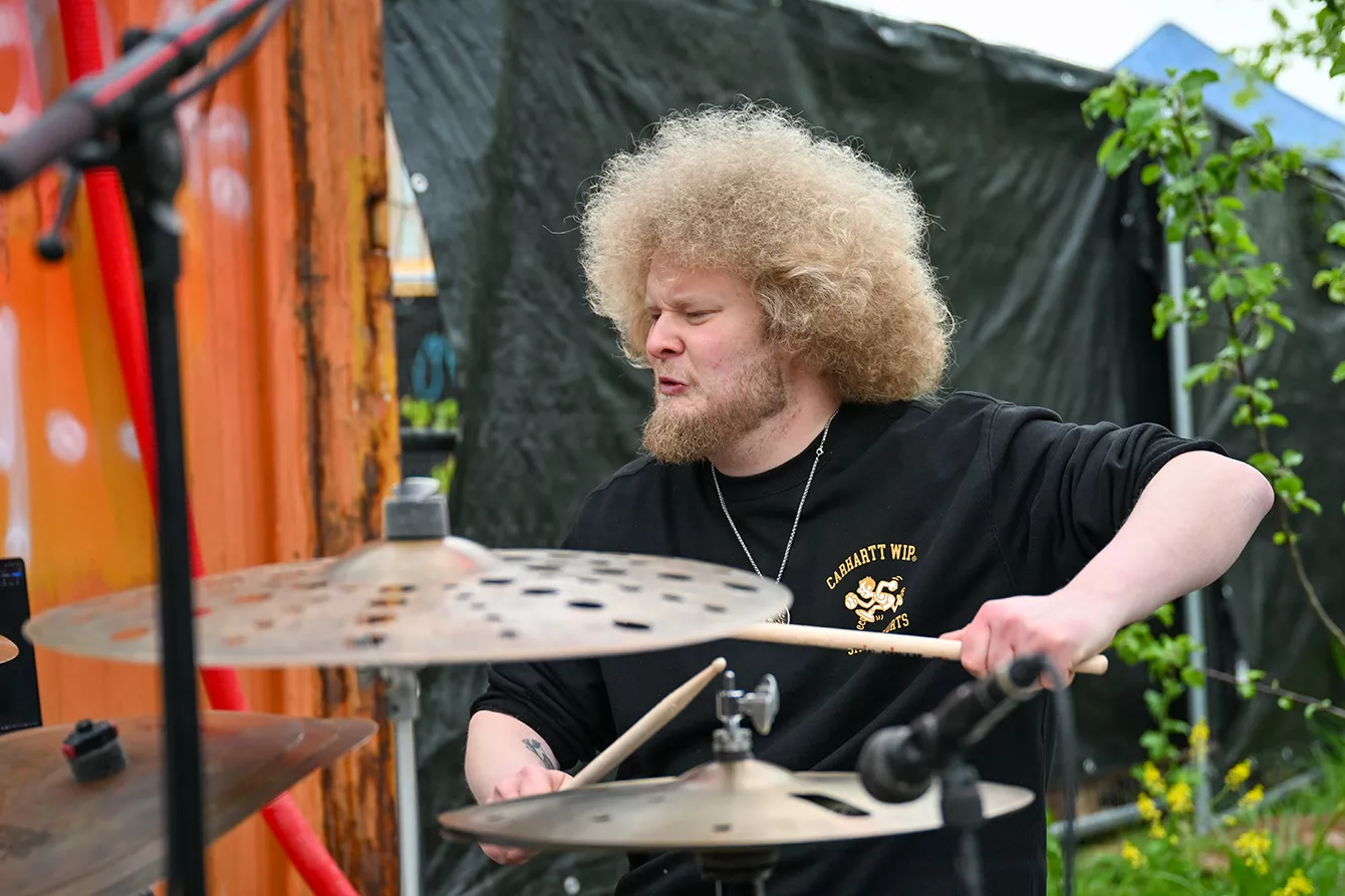 Regnen havde fået godt og grundigt fat i Spot Festival lørdag eftermiddag, men lige inden aalborgensiske Ahead skulle spille på Drivhus-scenen i den lidt ”dodgy” ende af Institut for X, kiggede solen kortvarigt frem. Kvartetten – med keys, bas, trommer og scratch i arsenalet – er efterhånden blevet