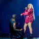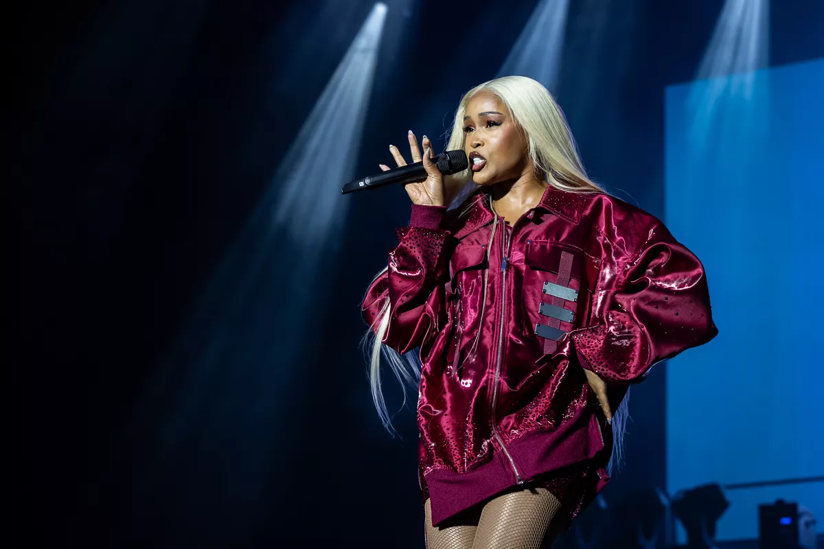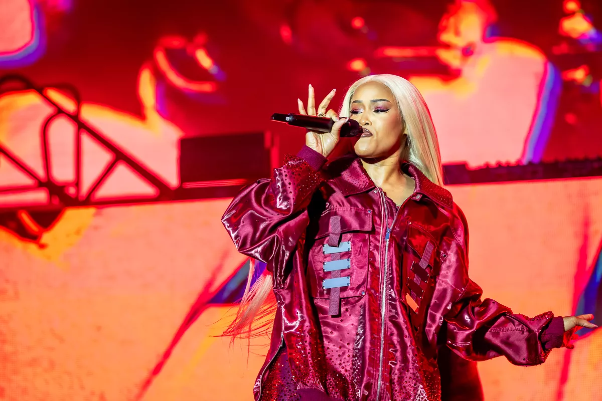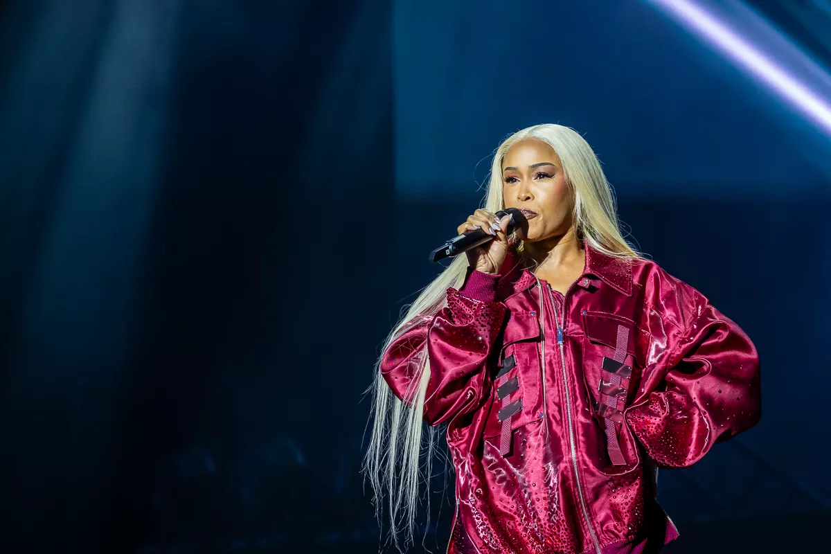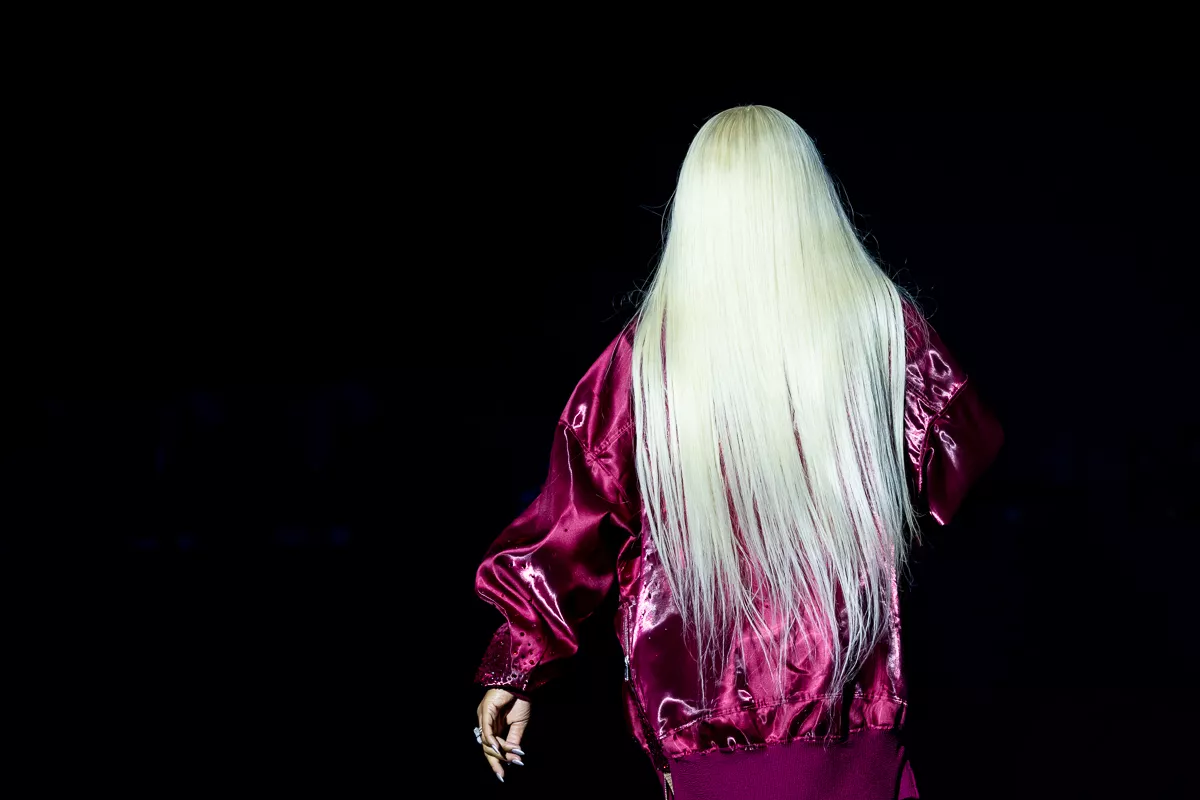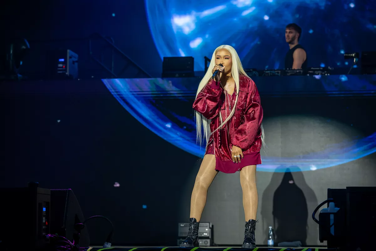 Ord som “hip-hop royalty” og “living legend” blev rystet lidt lemfældigt ud midt i det opvarmende dj-sæt med tracks som Kendrick Lamars “Not Like Us”, og for en stund var det åbenlyst, at Eve ikke kunne leve op til sin egen hypeman. Det var dog kun, fordi stemmen ikke kom helt ordentligt igennem mikrofonen