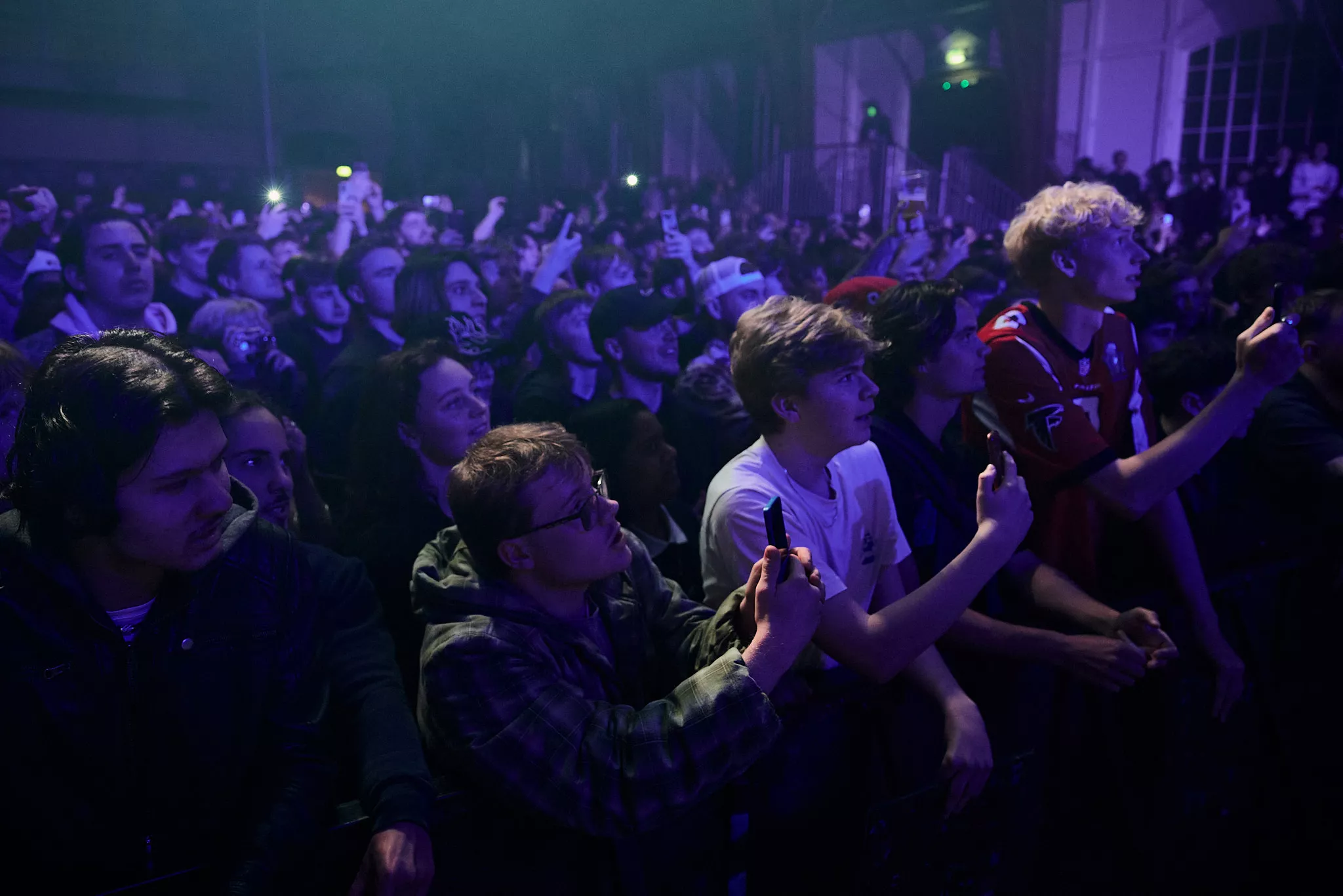 Køen strækker sig halvvejs over forpladsen, da vi venter på at komme ind i Den (udsolgte) Grå Hal. Indenfor er det velvoksne publikum lige dele utålmodige og chill forventningsfulde. Det tilrøgede lokale – fra tør-is på scenen (ikke tobak) - er modbelyst lilla, så hallen føles mere intim, end