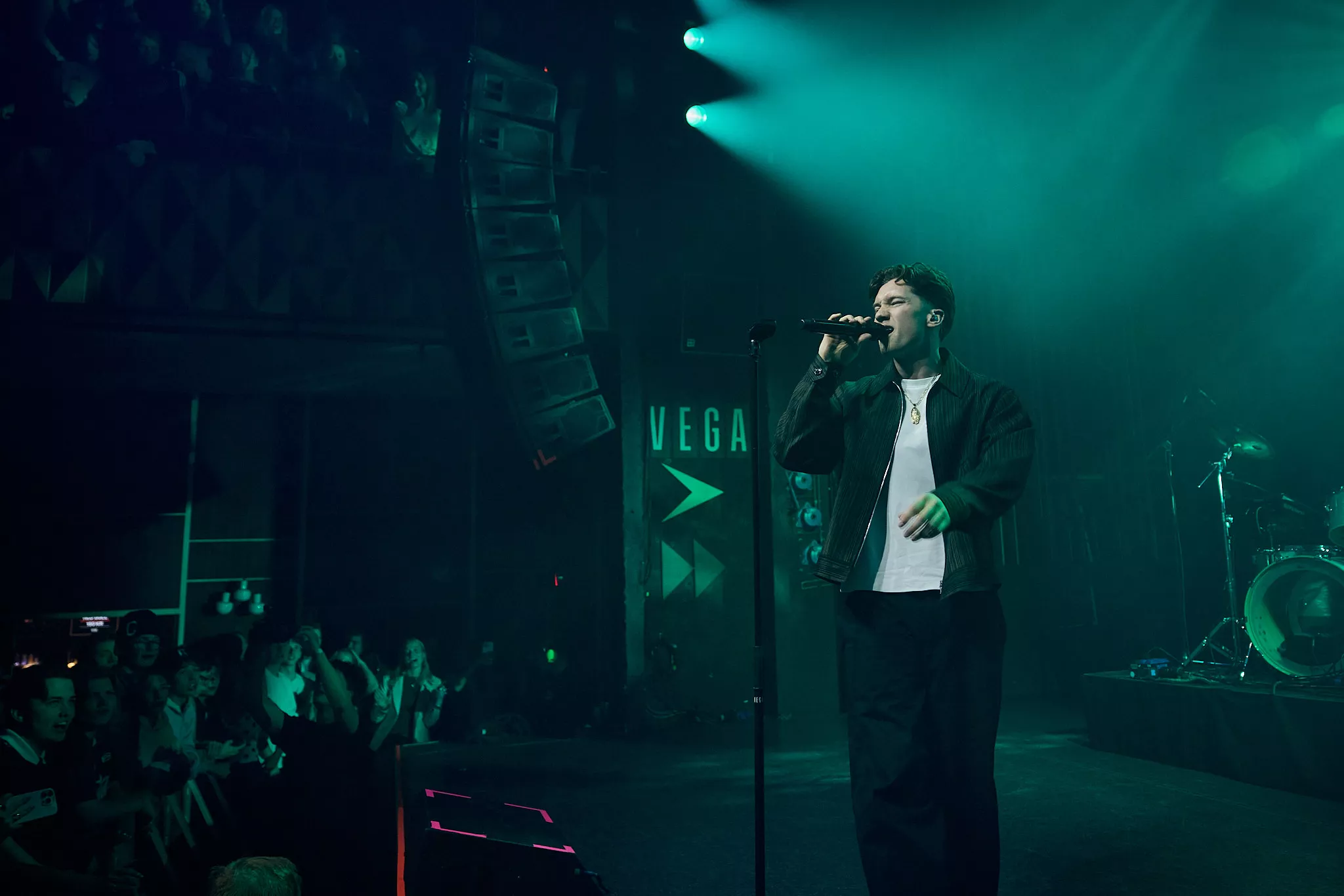 Breezere blev bundet i køen, og blueberry-vapes gik på omgang. Fredag aften foran Vega stod i ungdommens tegn. Store grupper af teenagere strømmede ind i salen, hvor stemningen virkede mere som en gymnasiefest end en koncert.