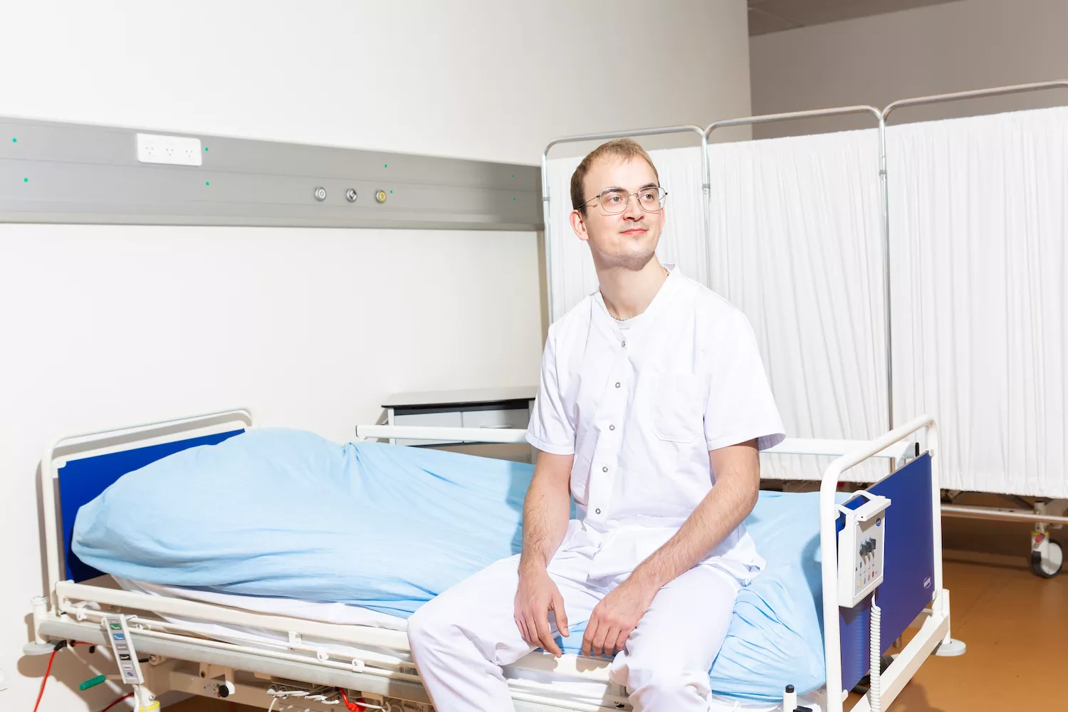 – Jeg havde egentlig aldrig regnet med, at jeg skulle være sygeplejerske, og da jeg startede på studiet, havde jeg faktisk ikke de helt store forventninger til det. Men da vi kom i gang med de teoretiske fag, fandt jeg ud af, hvor nørdet og spændende et fag det egentlig er, og hvor stort et naturvidenskabeligt aspekt fagene indeholder. Det elsker jeg, siger Lucas Hyttel og fortæller videre om, hvordan teorien går godt i spænd med praksis.
