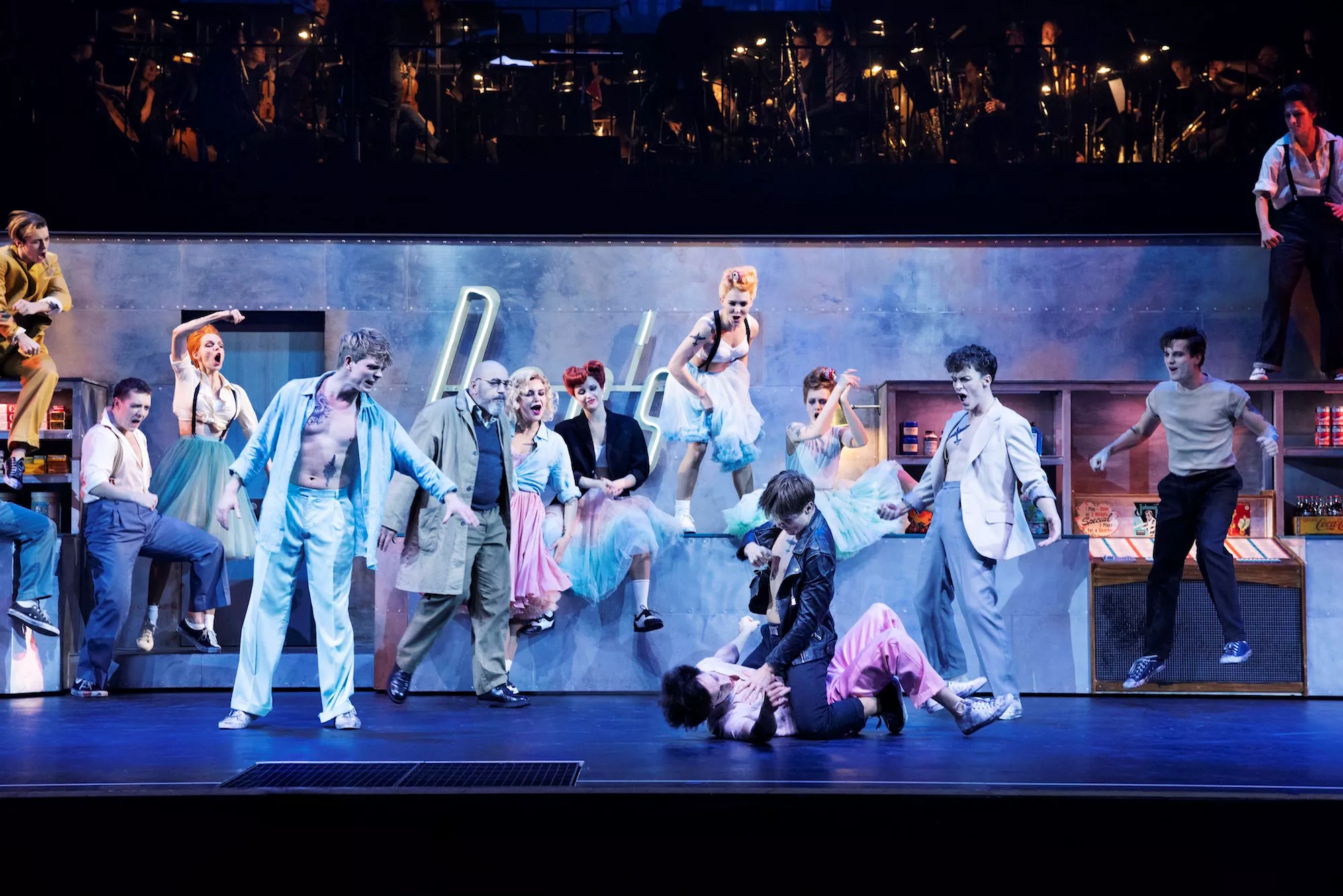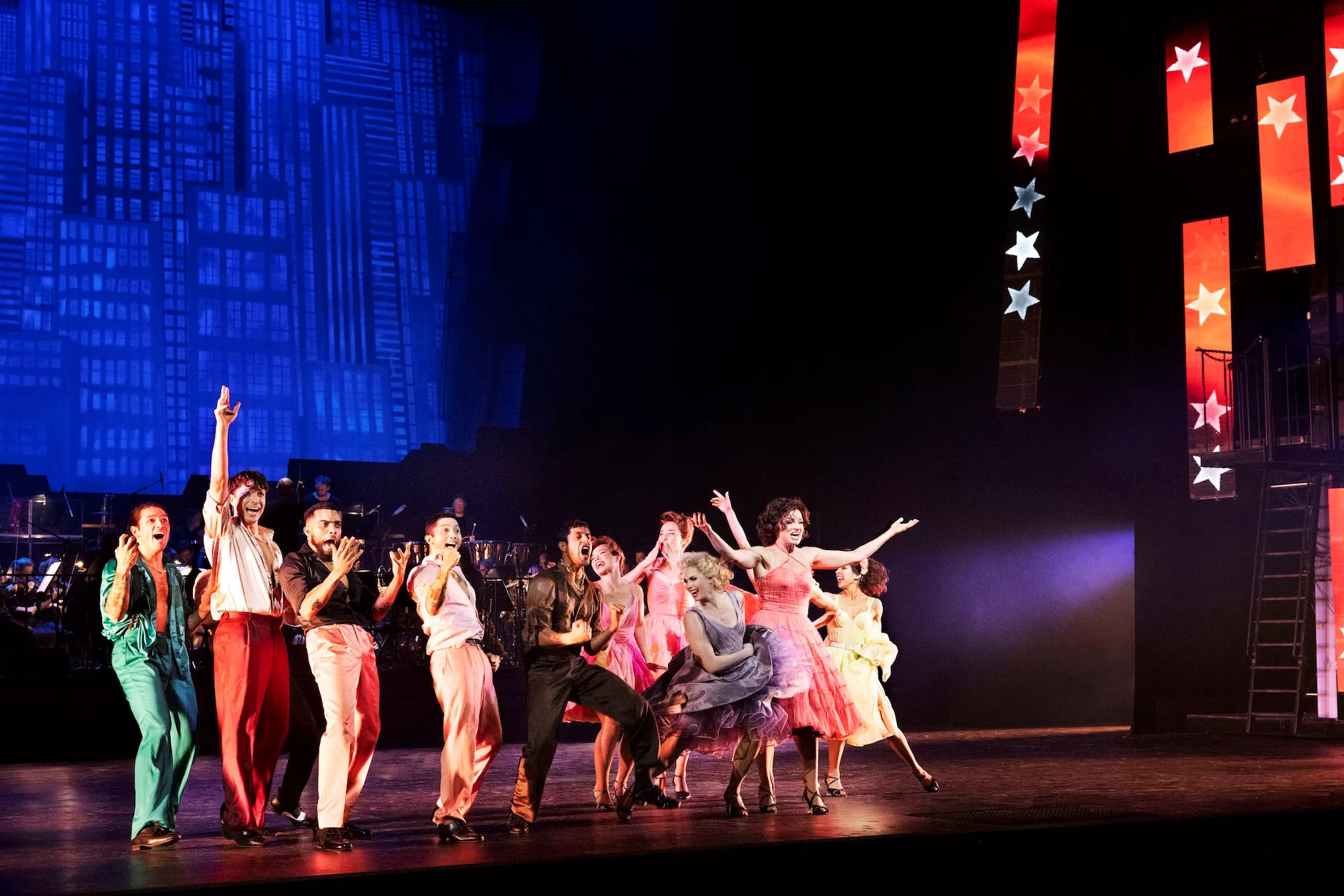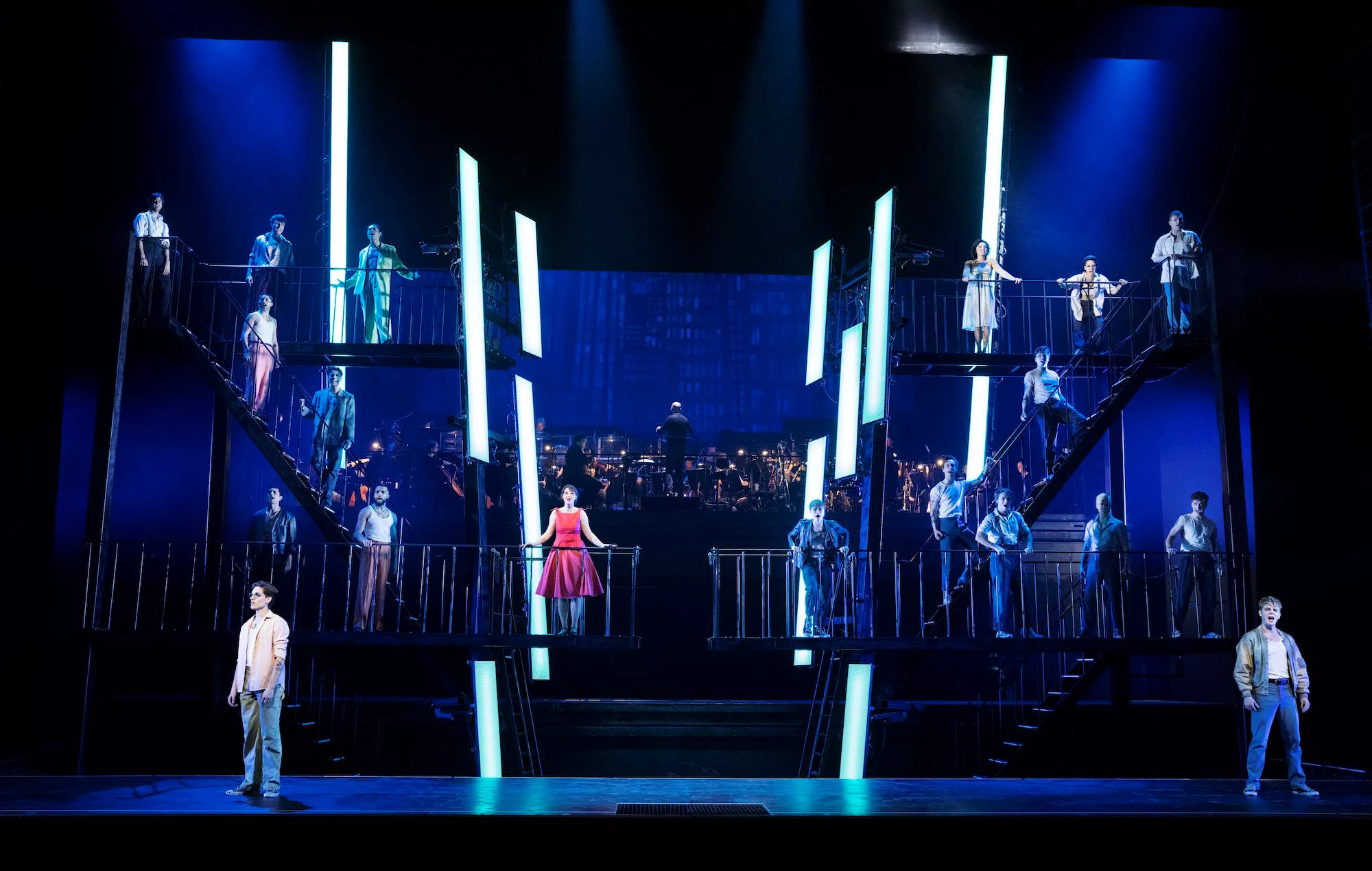 I Det Kongelige Teaters opsætning af West Side Story er Bernsteins musik omdrejningspunkt i forestillingen på en helt særlig måde. Teatrets orkester, Det Kongelige Kapel, har fået plads oppe på scenen i stedet for i orkestergraven. Musikken er på den måde nærværende både visuelt og lydmæssigt. Orkestret skaber en særlig baggrund for handlingen, når det hæves flere meter over scenegulvet og andre gange er direkte baggrund for de mange syngende og dansende medvirkende på scenen.