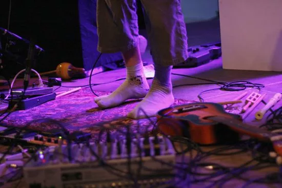 Koncerten starter til lyden af en eksotisk folkesang afspillet på en gammeldags spolebåndoptager. Så tager Jonas Stampe alias Snöleoparden fat. Iklædt et hårbånd, der får ham til at ligne dansk electronicas svar på Karate Kid, svinger han køllerne over en beskeden xylofon. Krumbøjet sampler han sig