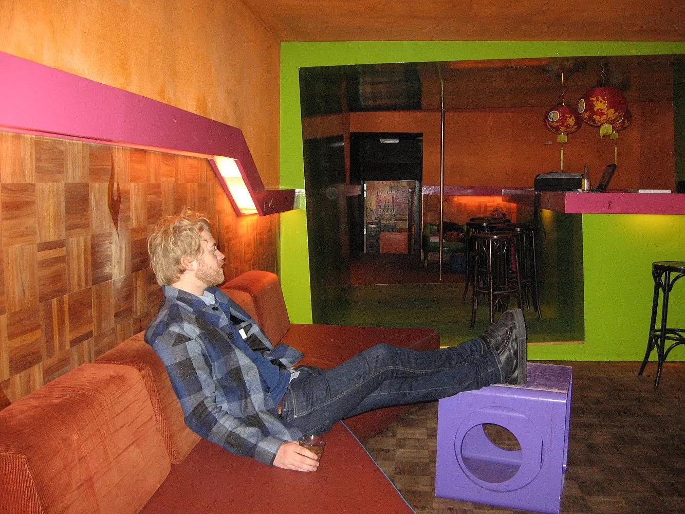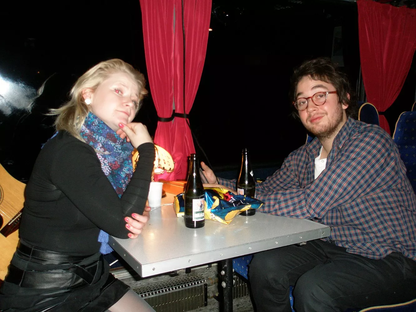 Vi kørte i nat til København efter Århus-koncerten i går aftes. Endnu engang fest i bussen.