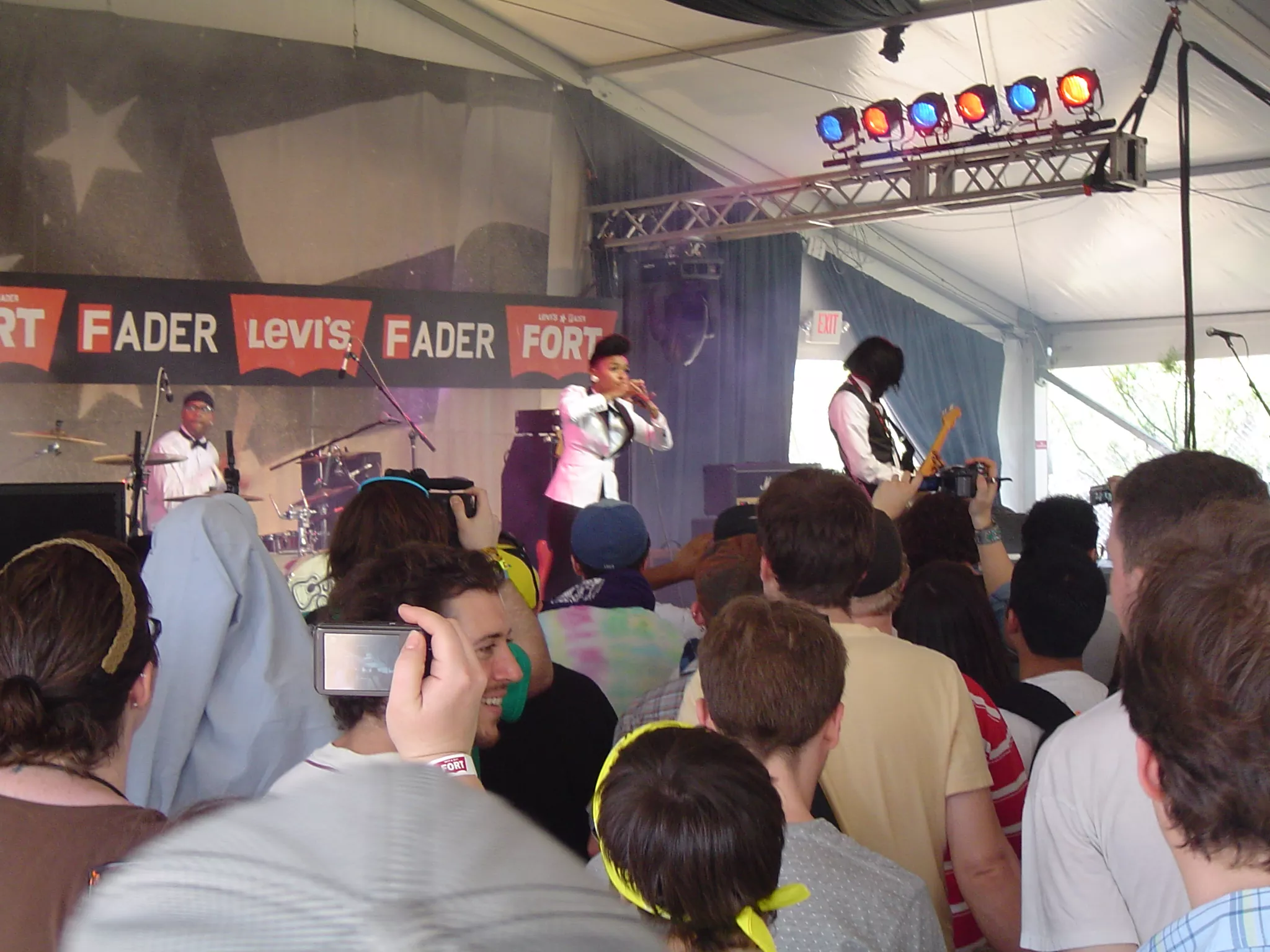 Den voldsomme trafik var skyld i, at jeg gik glip af Handsome Furs på The Fort, så det var et gensyn med Janelle Monae, der mødte mig, da jeg kom indenfor. Den diminutive sangerinde gjorde et bedre indtryk på den mindre scene, og hendes OutKast-inspirerede