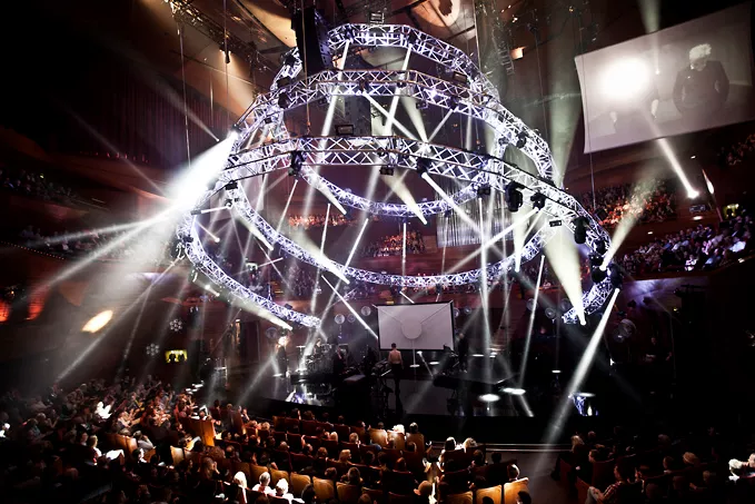 En festglad indspisker stod for at varme salen op til aftenens show inden værten Simon Kvamm gik på scenen. Og det med succes. Koncerthuset, som til lejligheden var fyldt til bristepunktet, blev behørigt livet op til en fin aften i musikkens tegn, der over 90 minutter vekslede mellem båndede indslag,