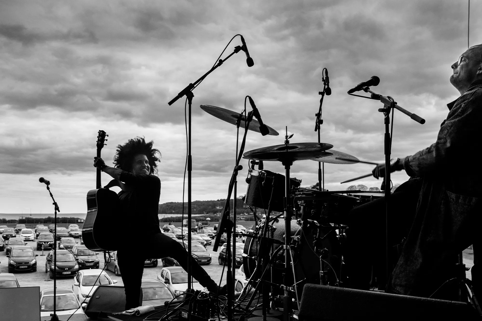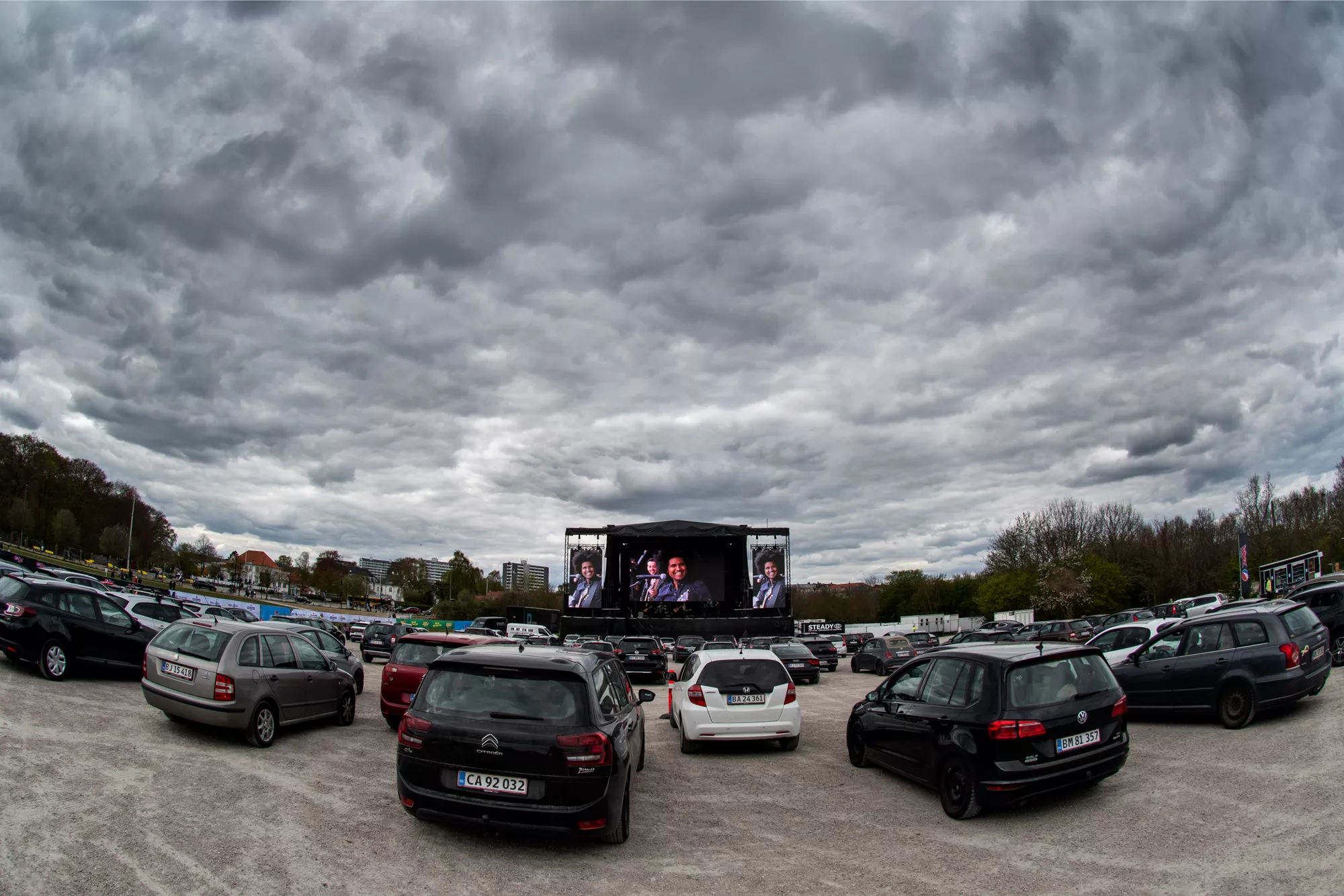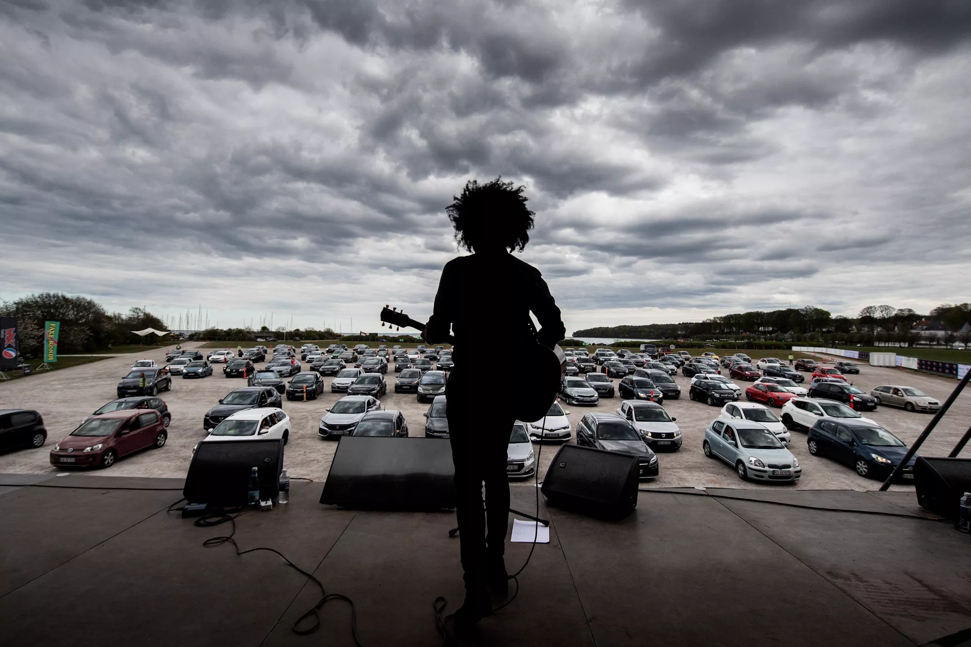 De fik idéen for 10 dage siden, og tidligt fredag aften den 24. april kunne eventmagerne Front of House i samarbejde med Aarhus City Forening så præsentere Danmarks første drive in-koncertsted P-scenen, på det idyllisk beliggende Tangkrogen lige ud til Aarhusbugten.