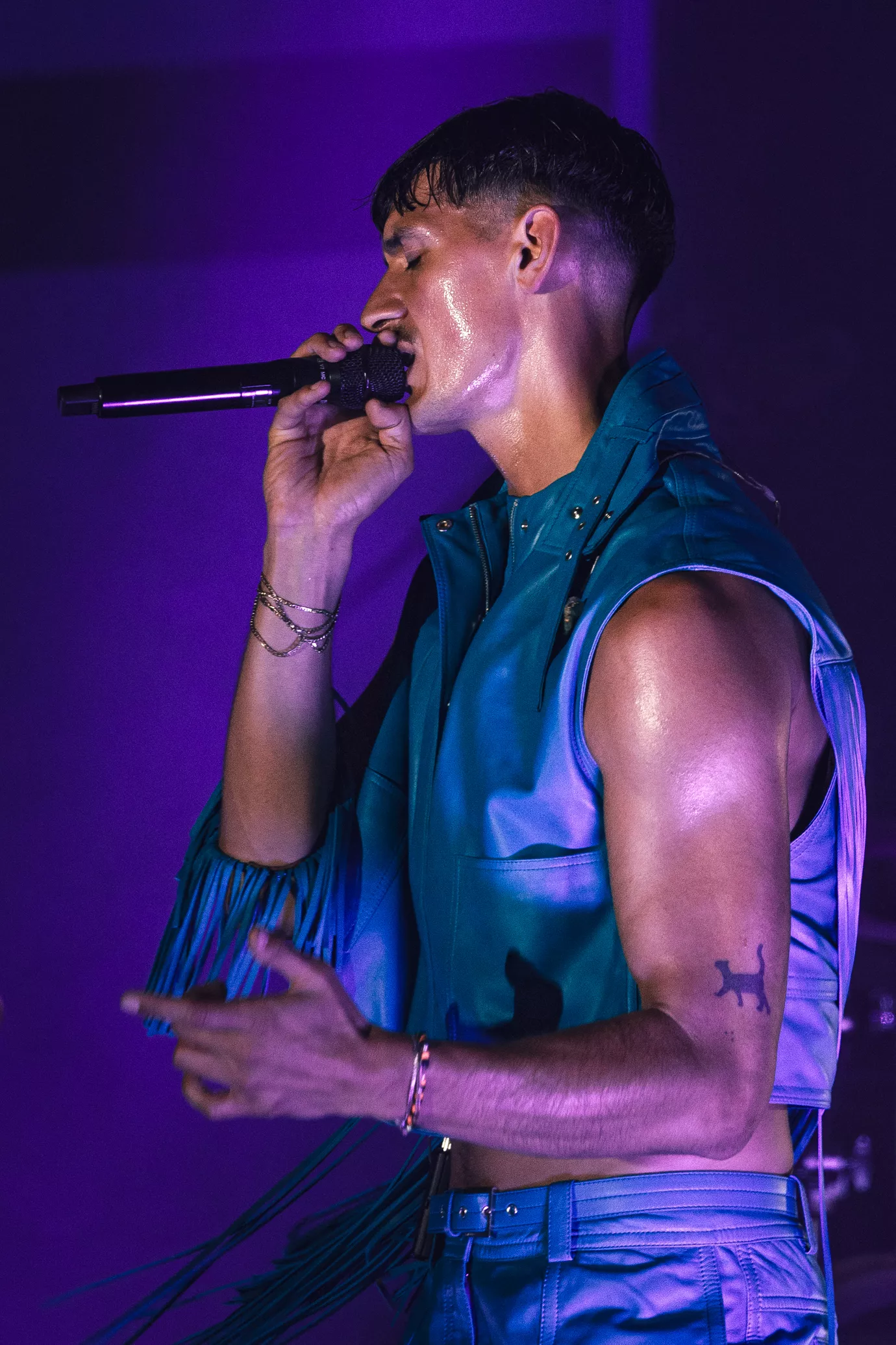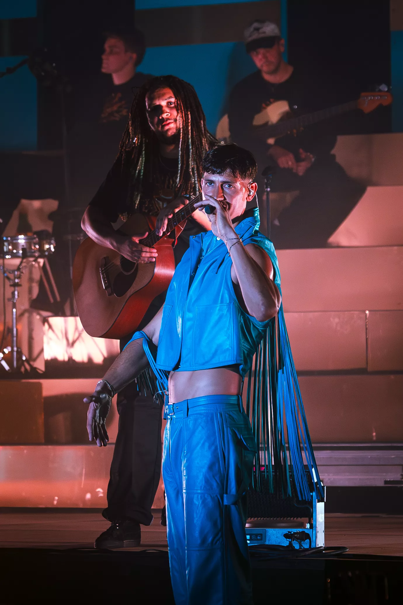 Det er med en Tobias Rahim i en øm turkis version af den dragt, han har optrådt på hele sommerens festivaltur, at det hele synes at peake. Væk er Andreas Odbjerg som ikke-overraskende surprise, men den langlemmede superstjerne er alt nok for Ankermyr-scenens hengivne publikum.