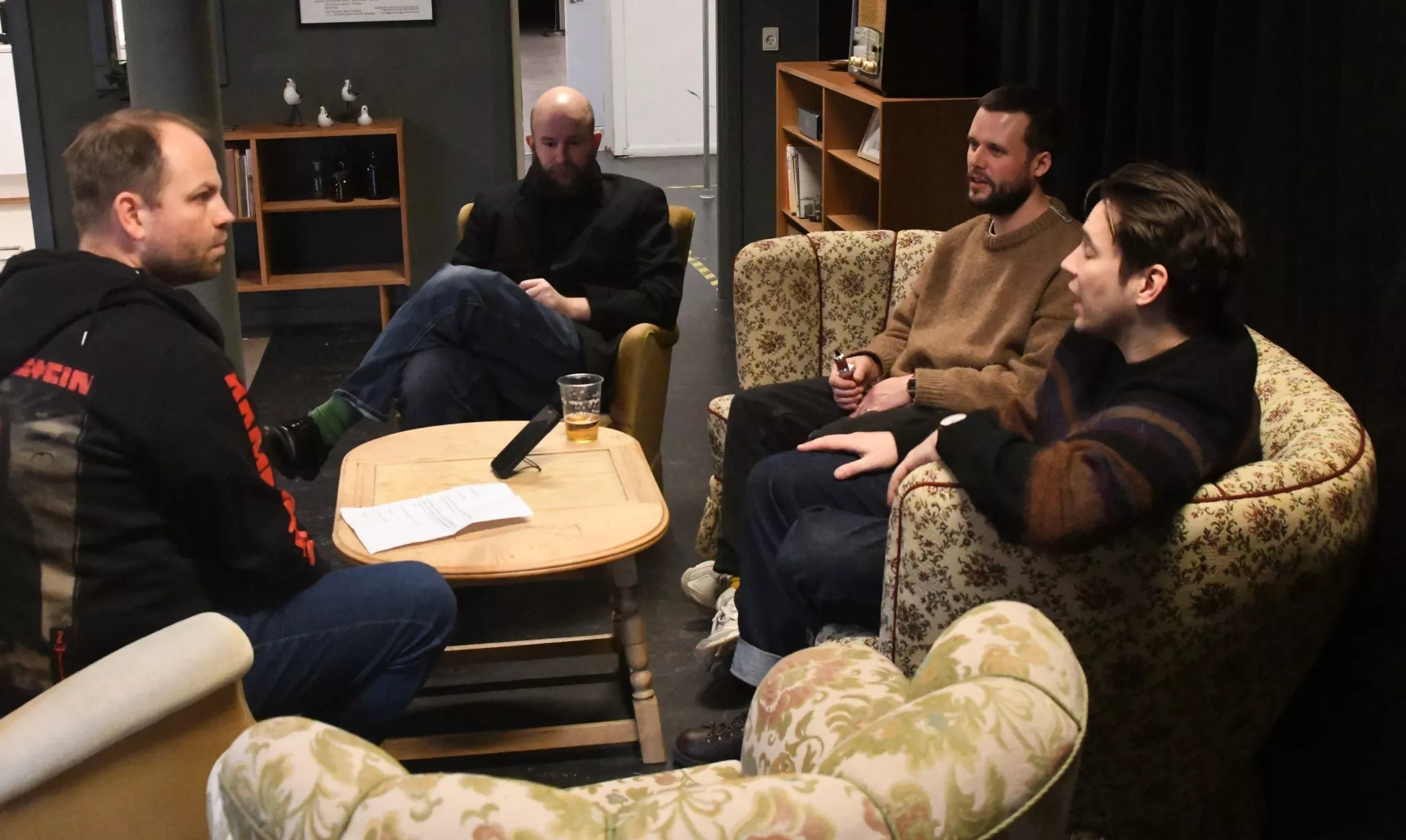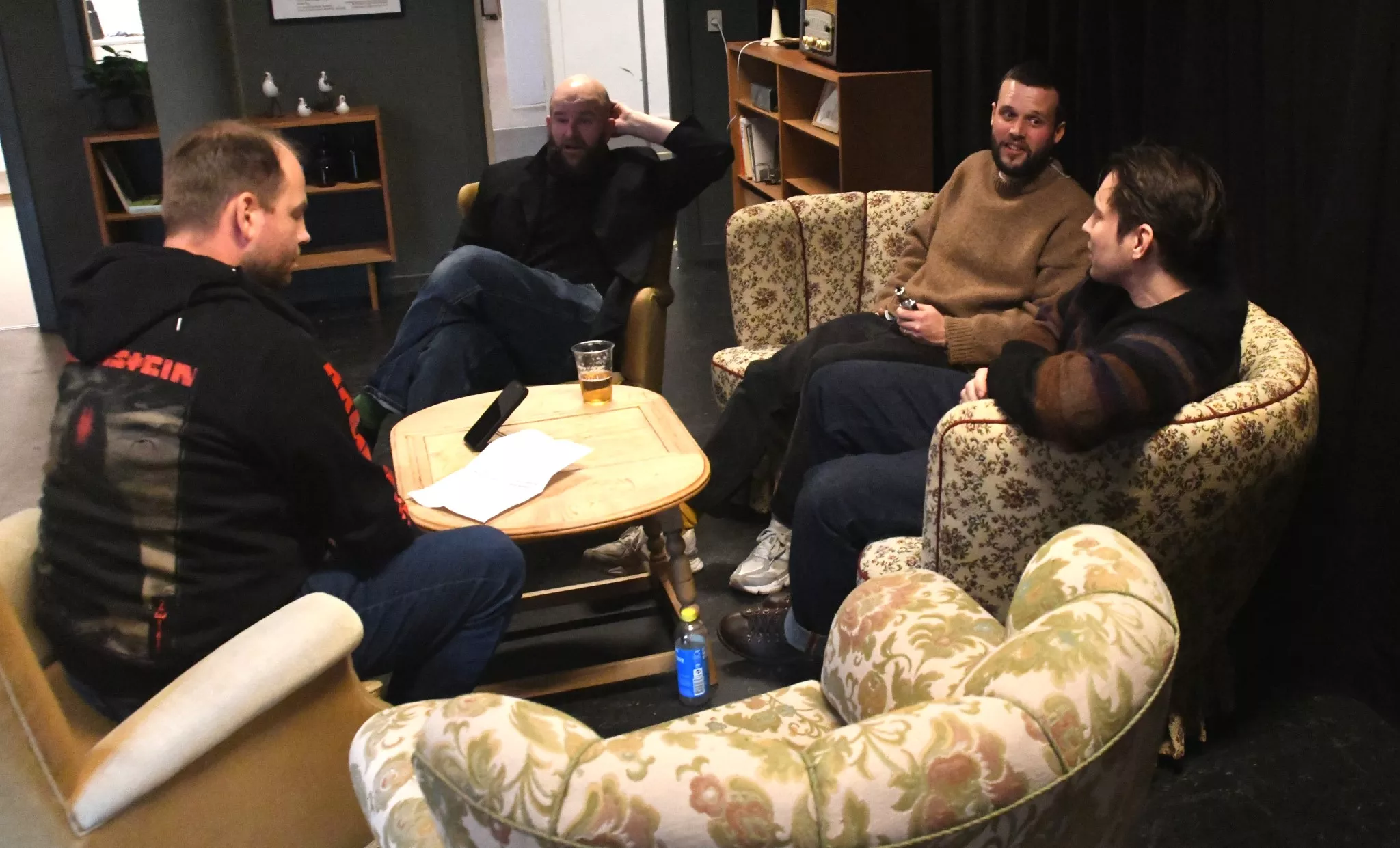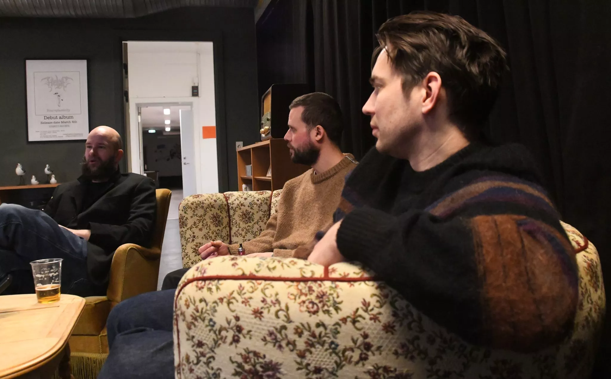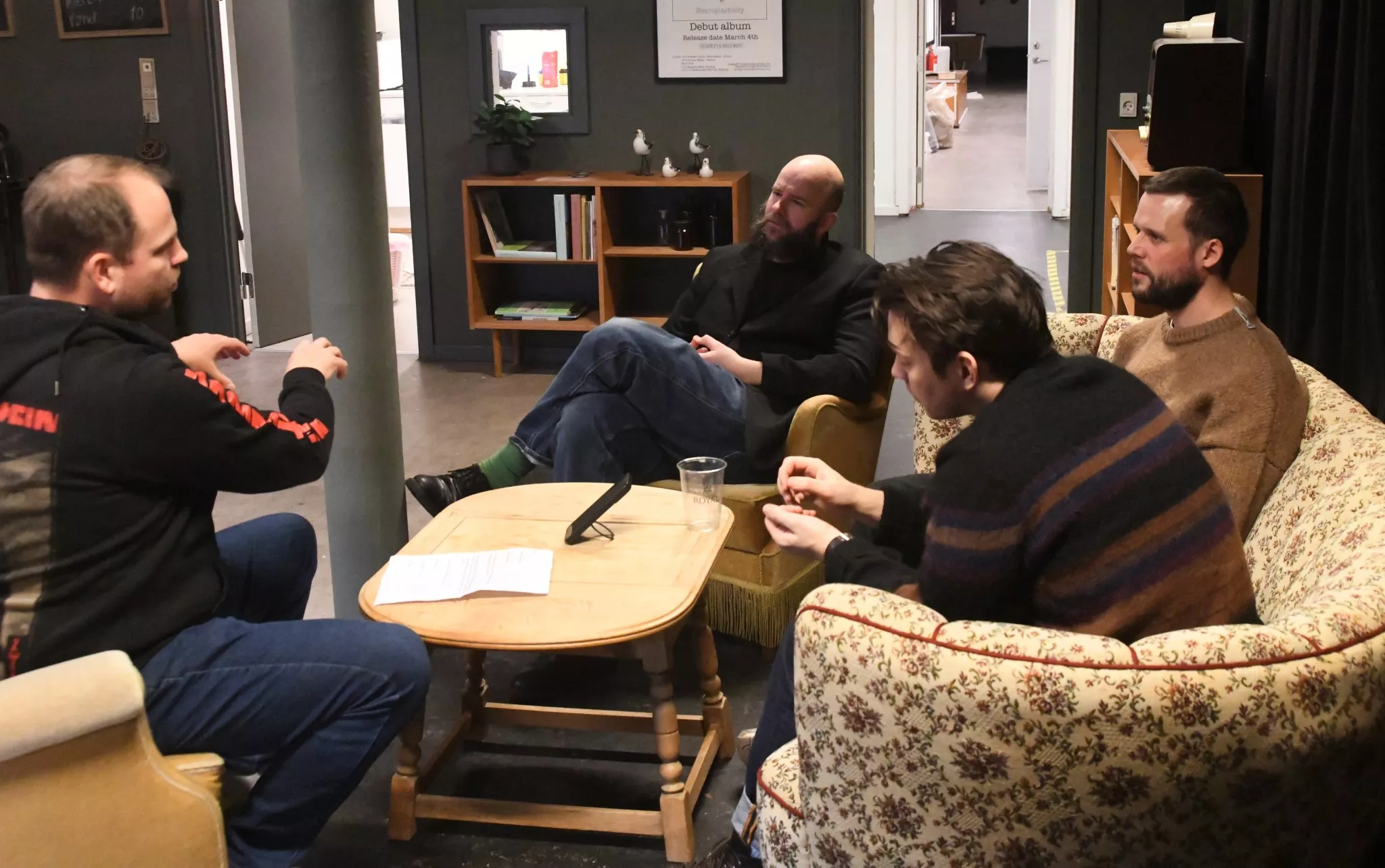 Interviewet begynder uformelt med snak om morgenens oplevelser og bandets tur til Fanø.