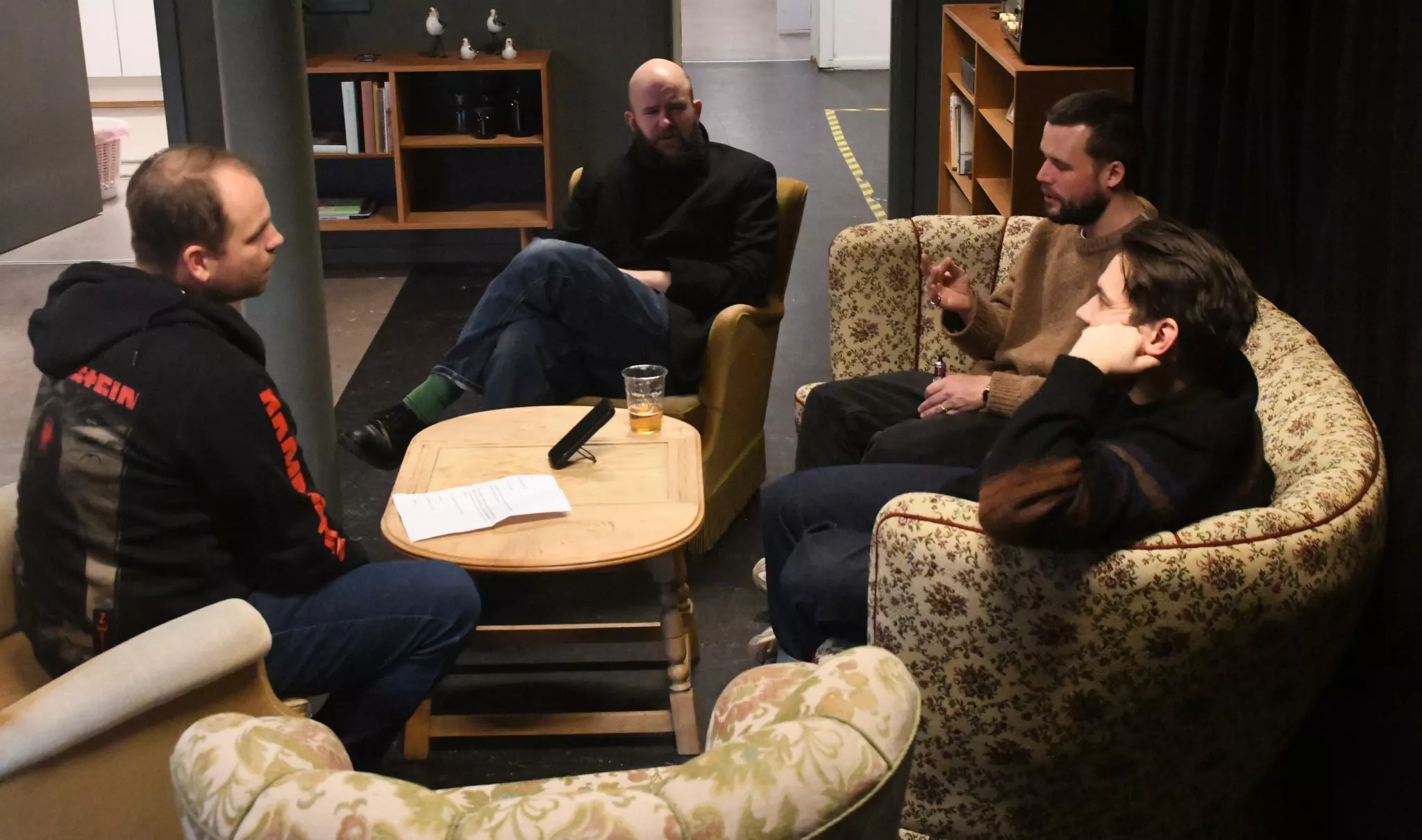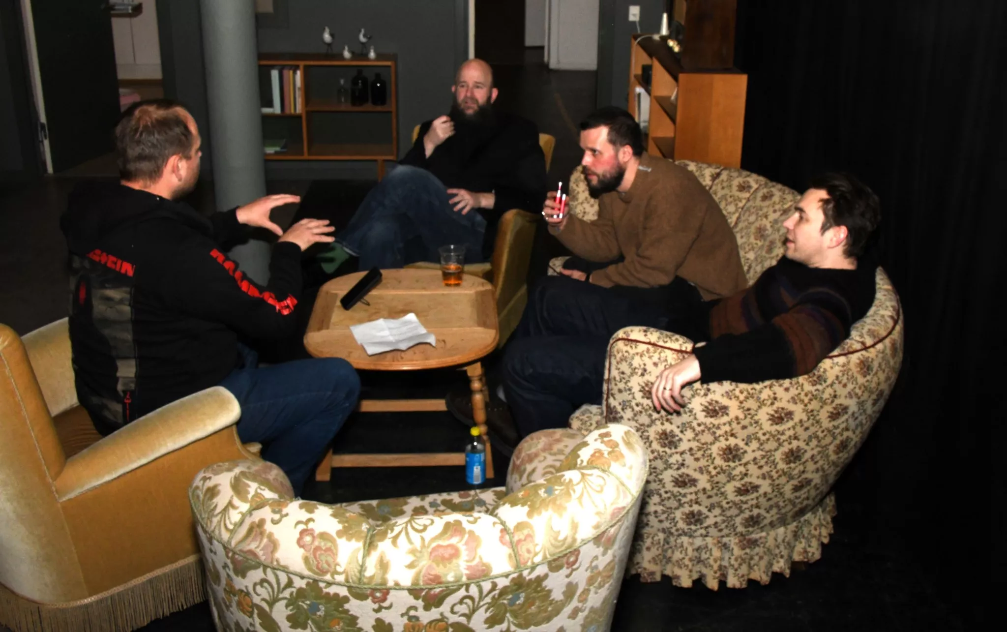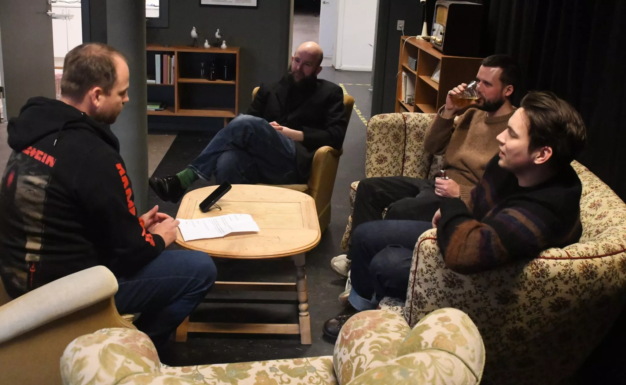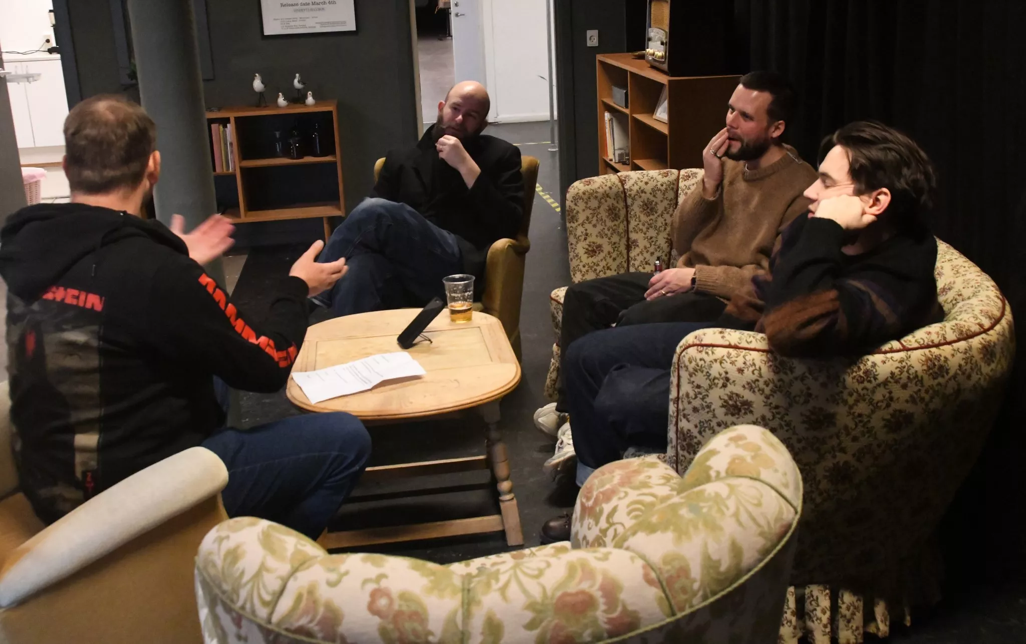 Interviewet begynder uformelt med snak om morgenens oplevelser og bandets tur til Fanø.