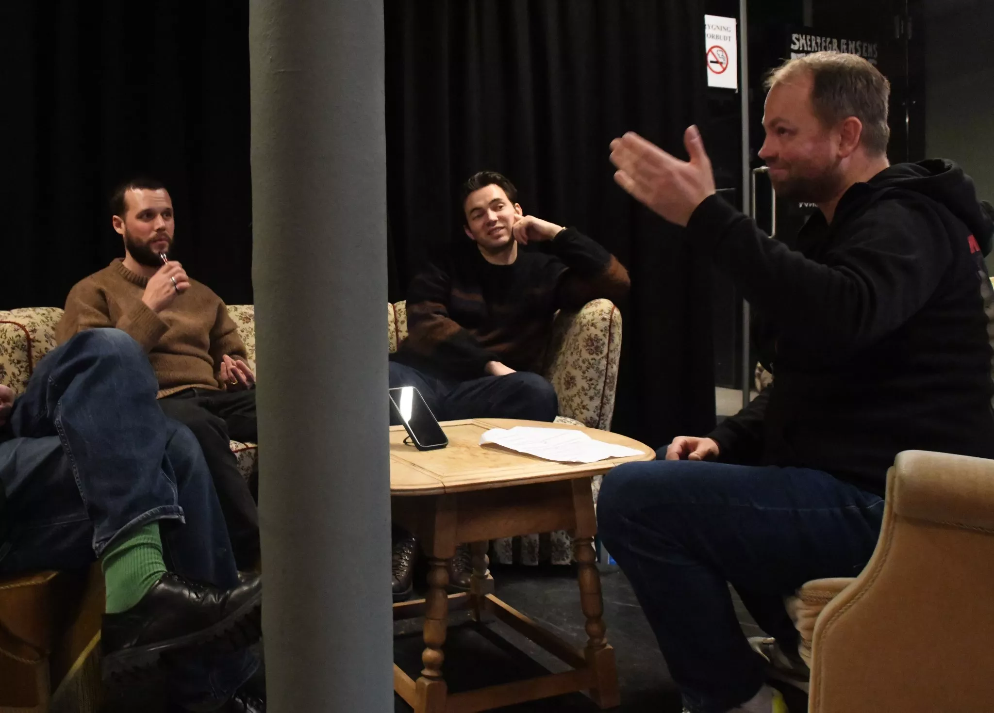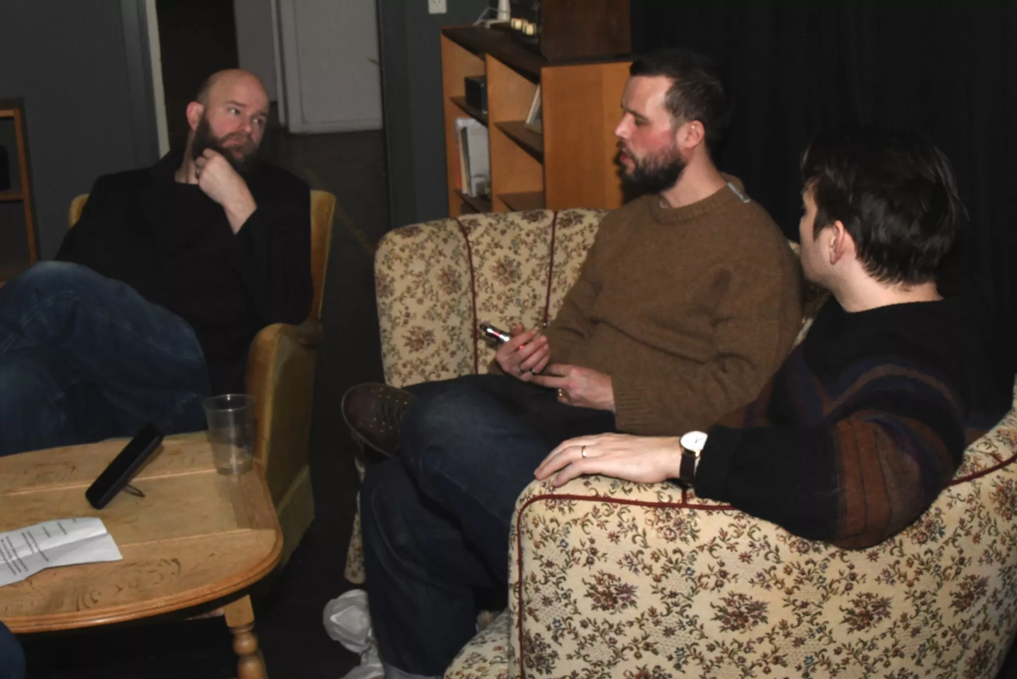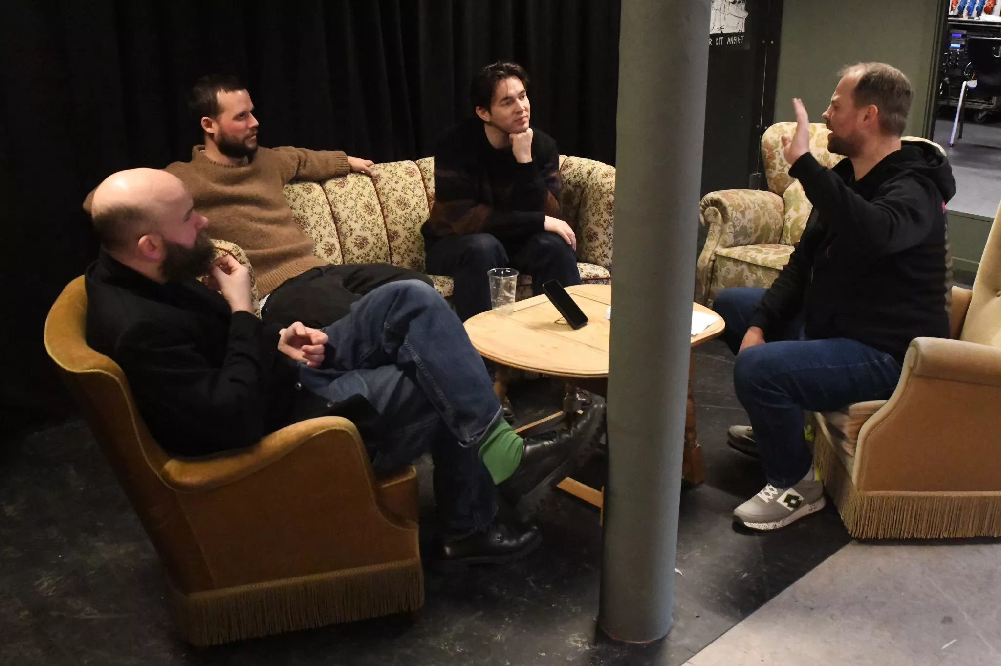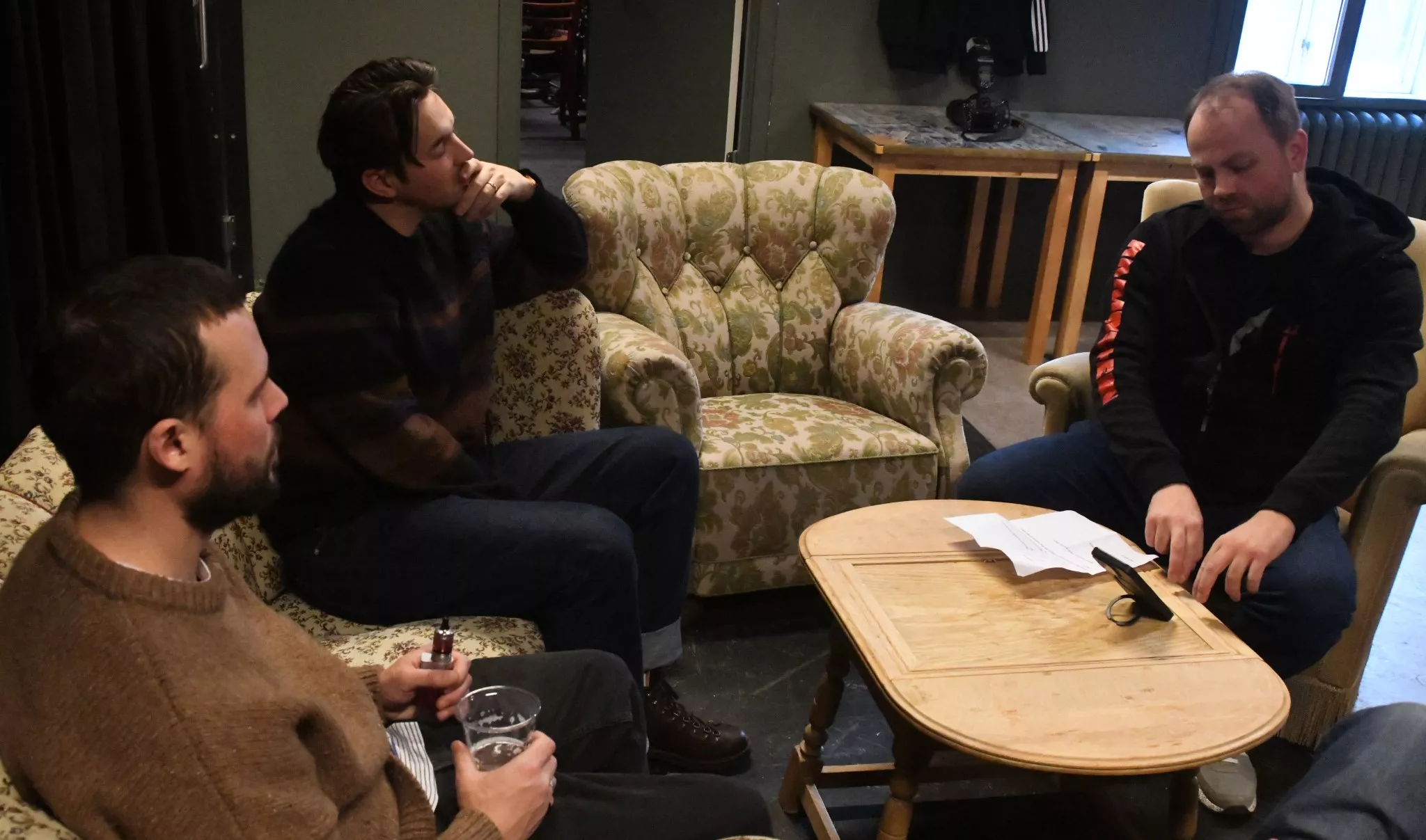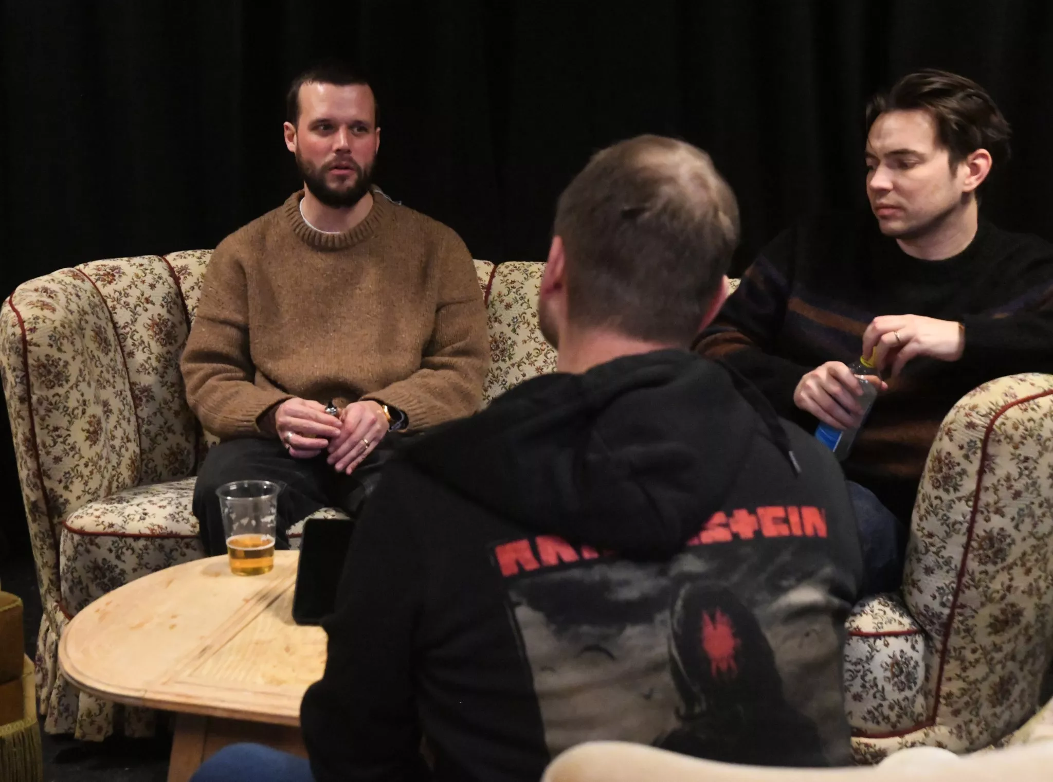 Interviewet begynder uformelt med snak om morgenens oplevelser og bandets tur til Fanø.