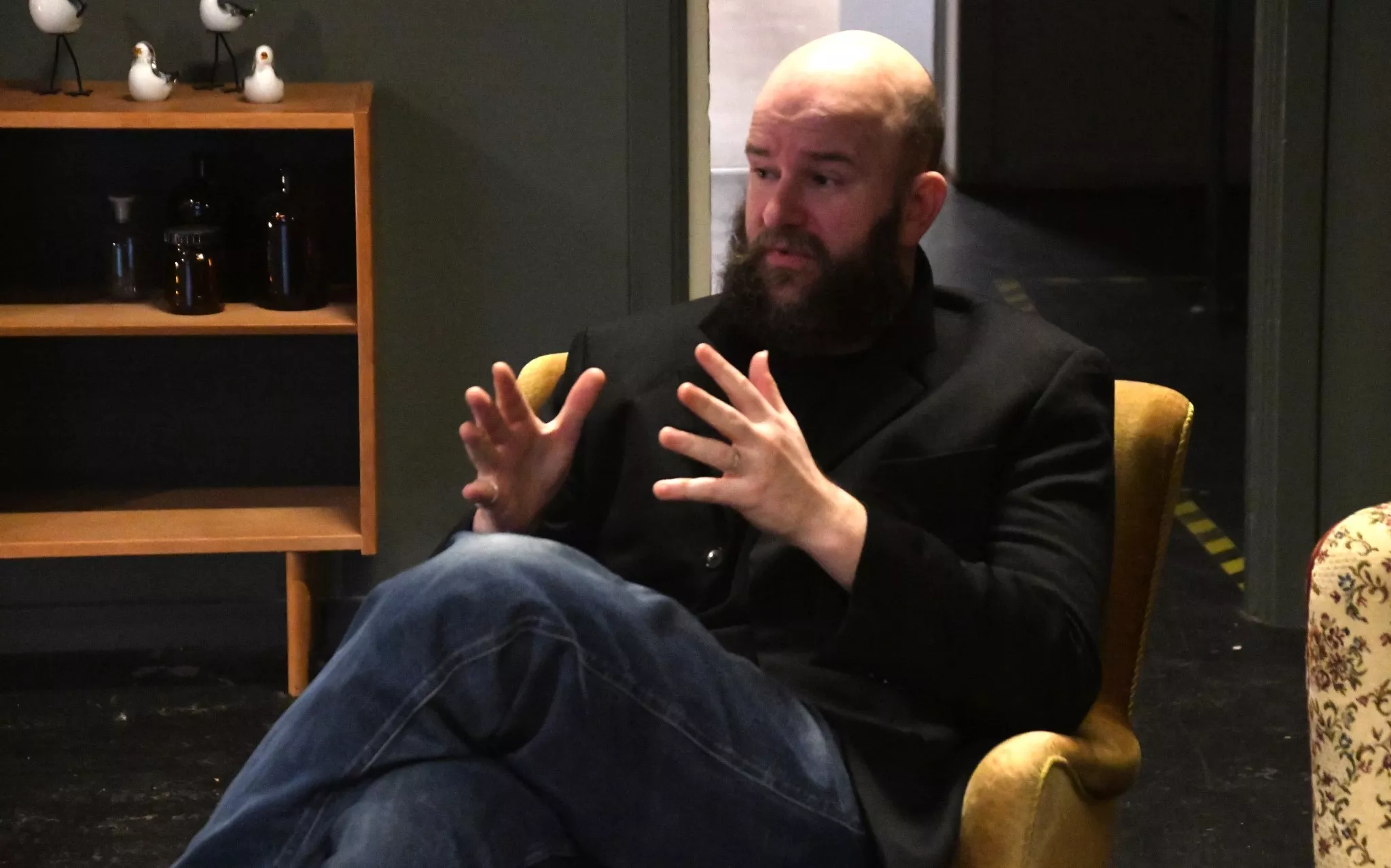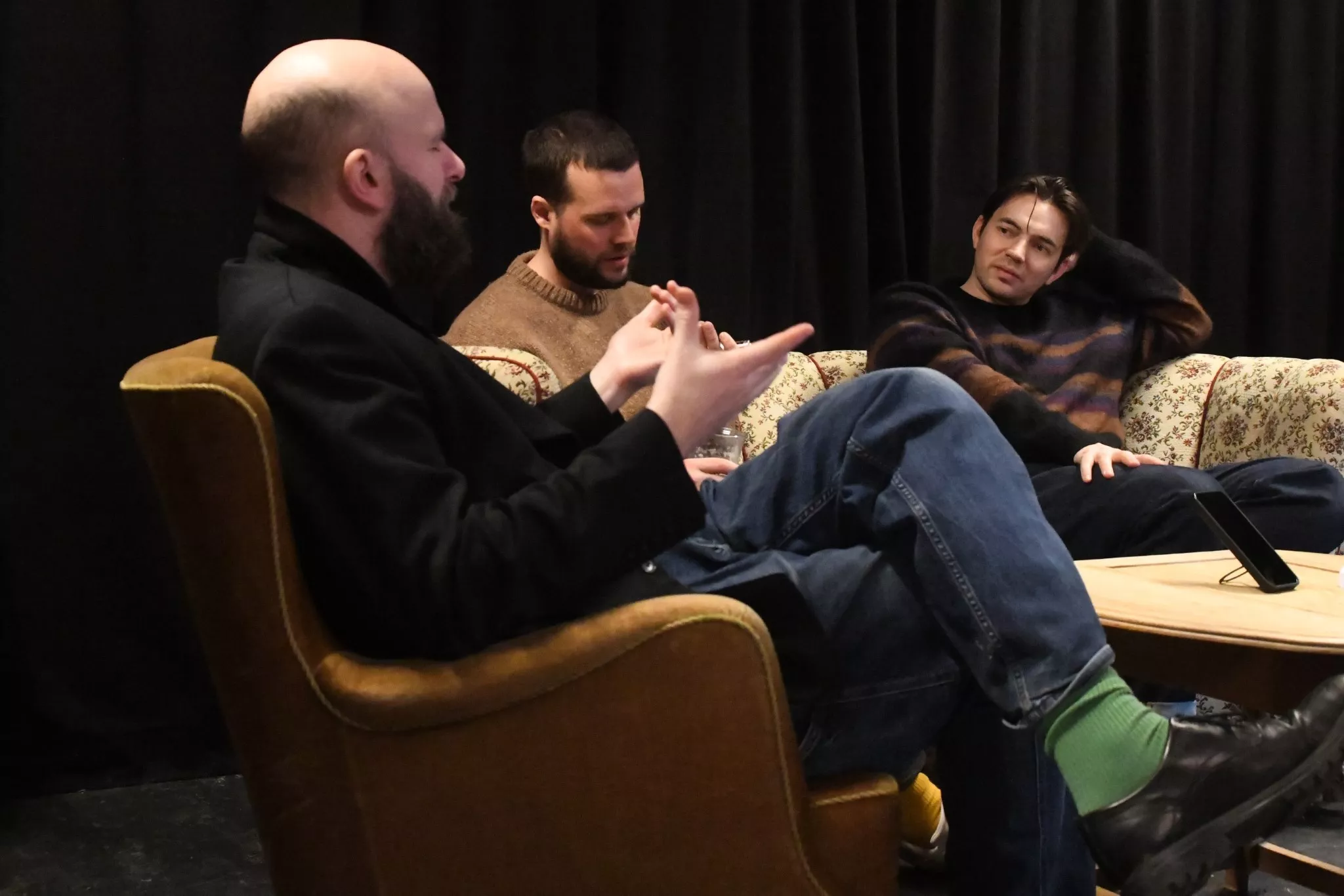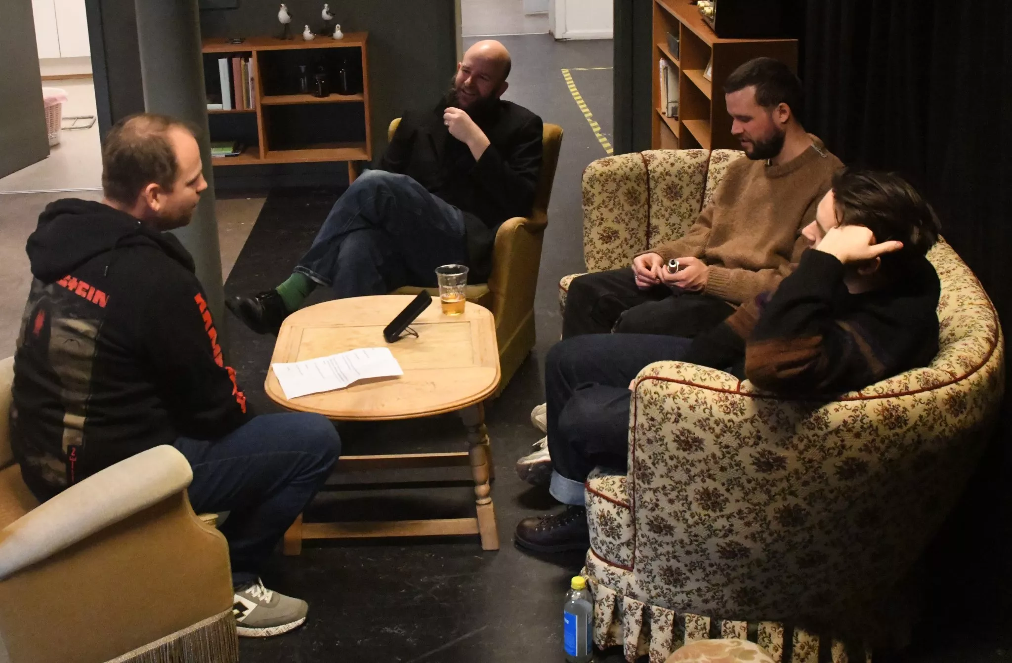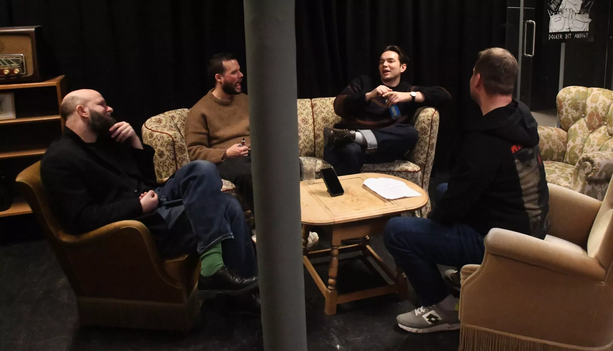 Interviewet begynder uformelt med snak om morgenens oplevelser og bandets tur til Fanø.