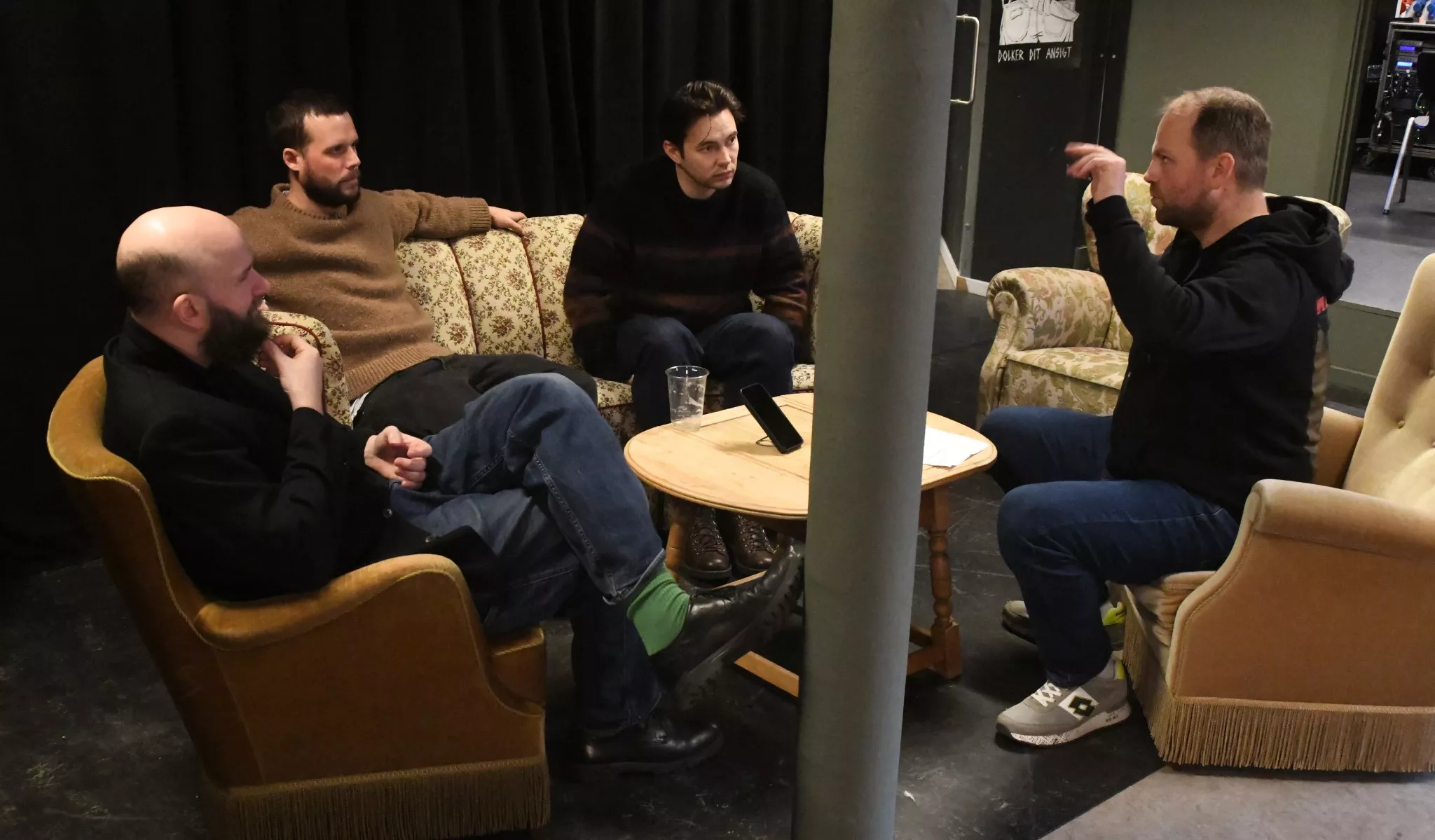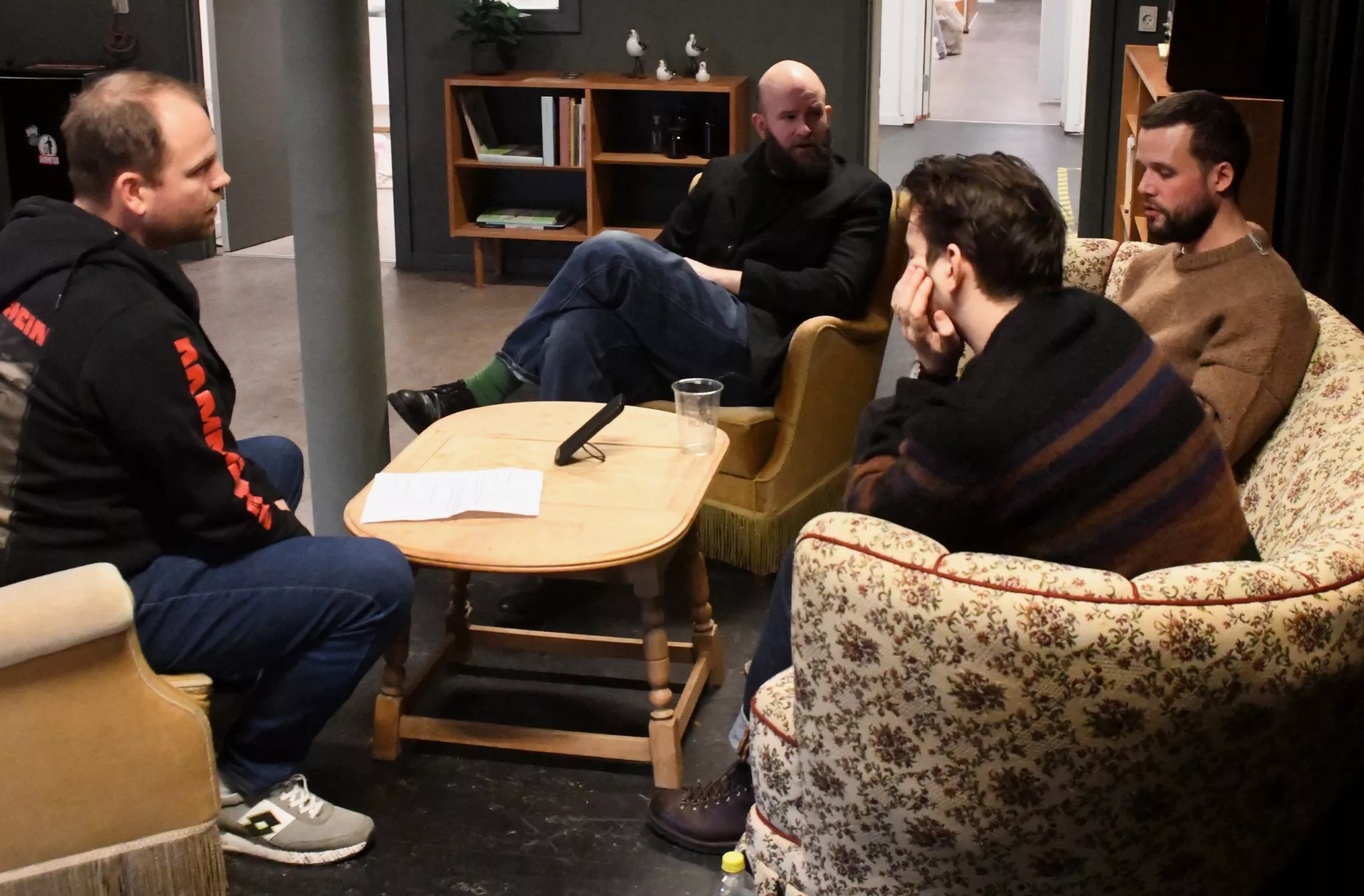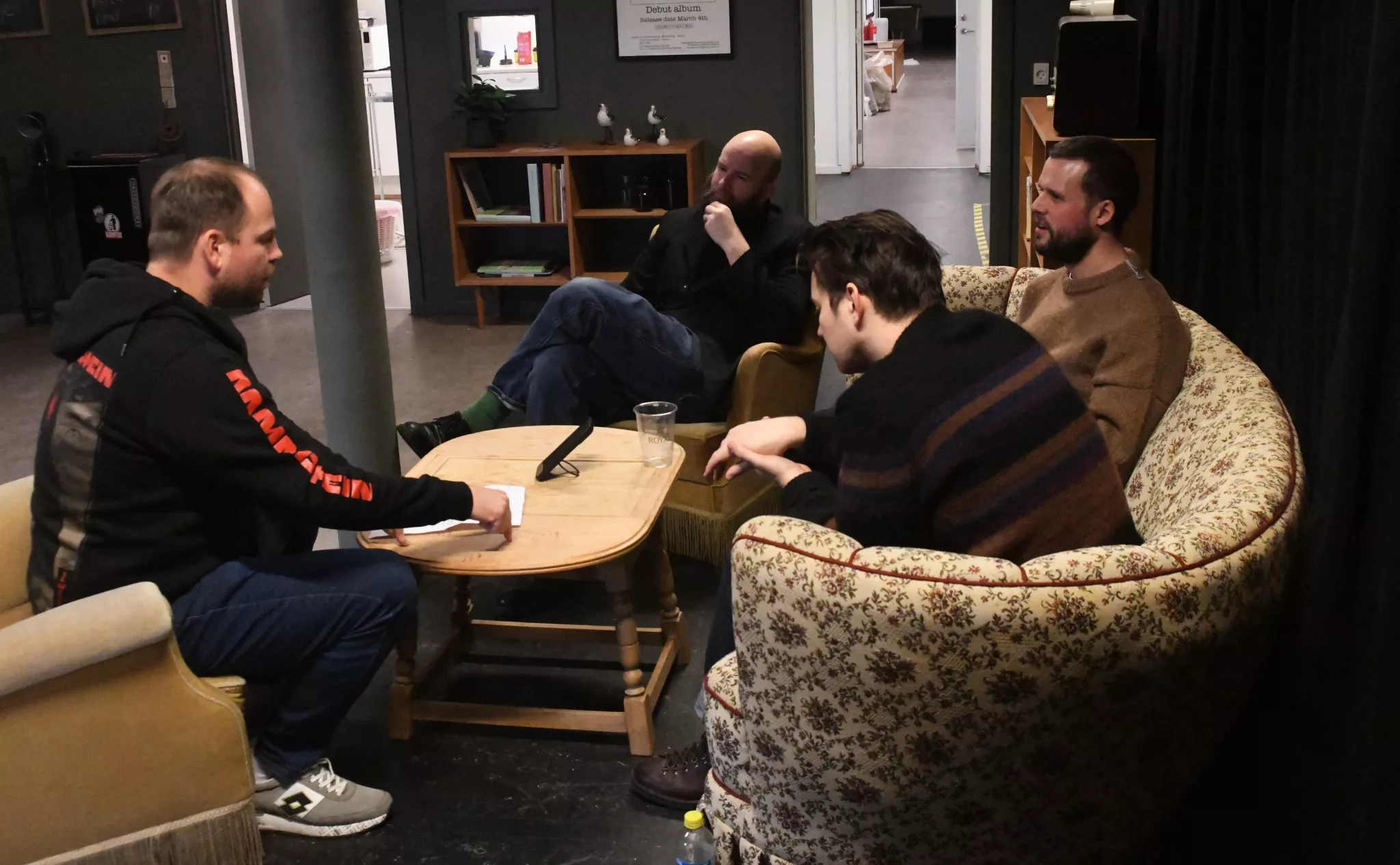 Interviewet begynder uformelt med snak om morgenens oplevelser og bandets tur til Fanø.