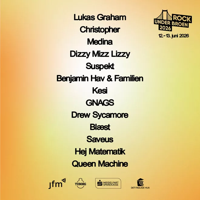 Oplev stjerner som Christopher, Suspekt, Kesi, Medina, Lukas Graham, Dizzy Mizz Lizzy, Blæst, Drew Sycamore, Martin Jensen, DJ Aligator og mange flere under Lillebæltsbro.