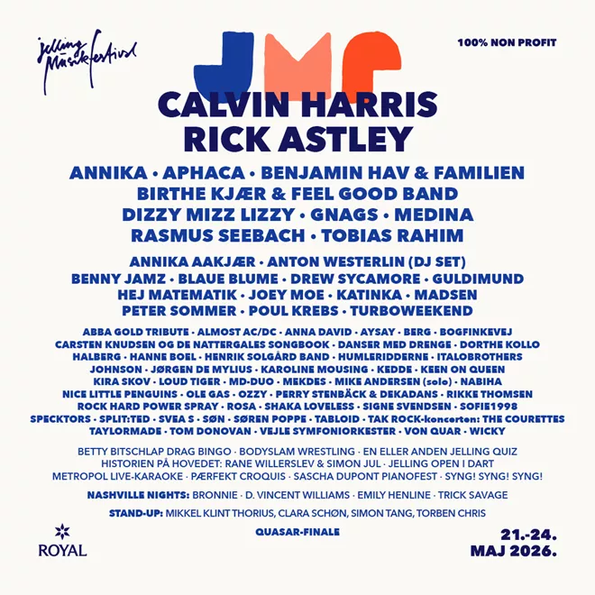 Oplev stjerner som Calvin Harris, Rick Astley, Annika, Aphaca, Benjamin Hav & Familien, Medina, Rasmus Seebach, Tobias Rahim, Gnags og mange flere i Jelling.