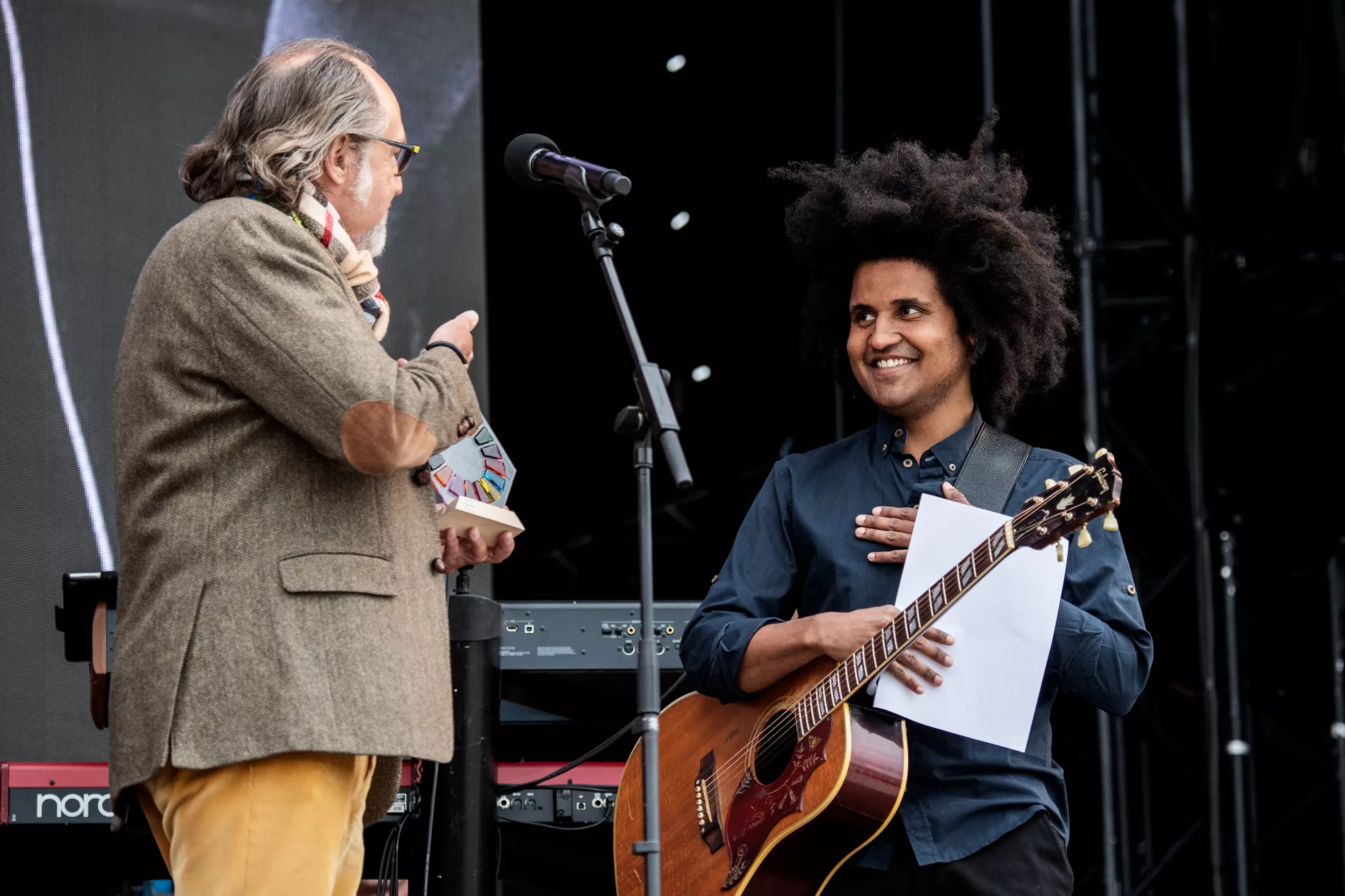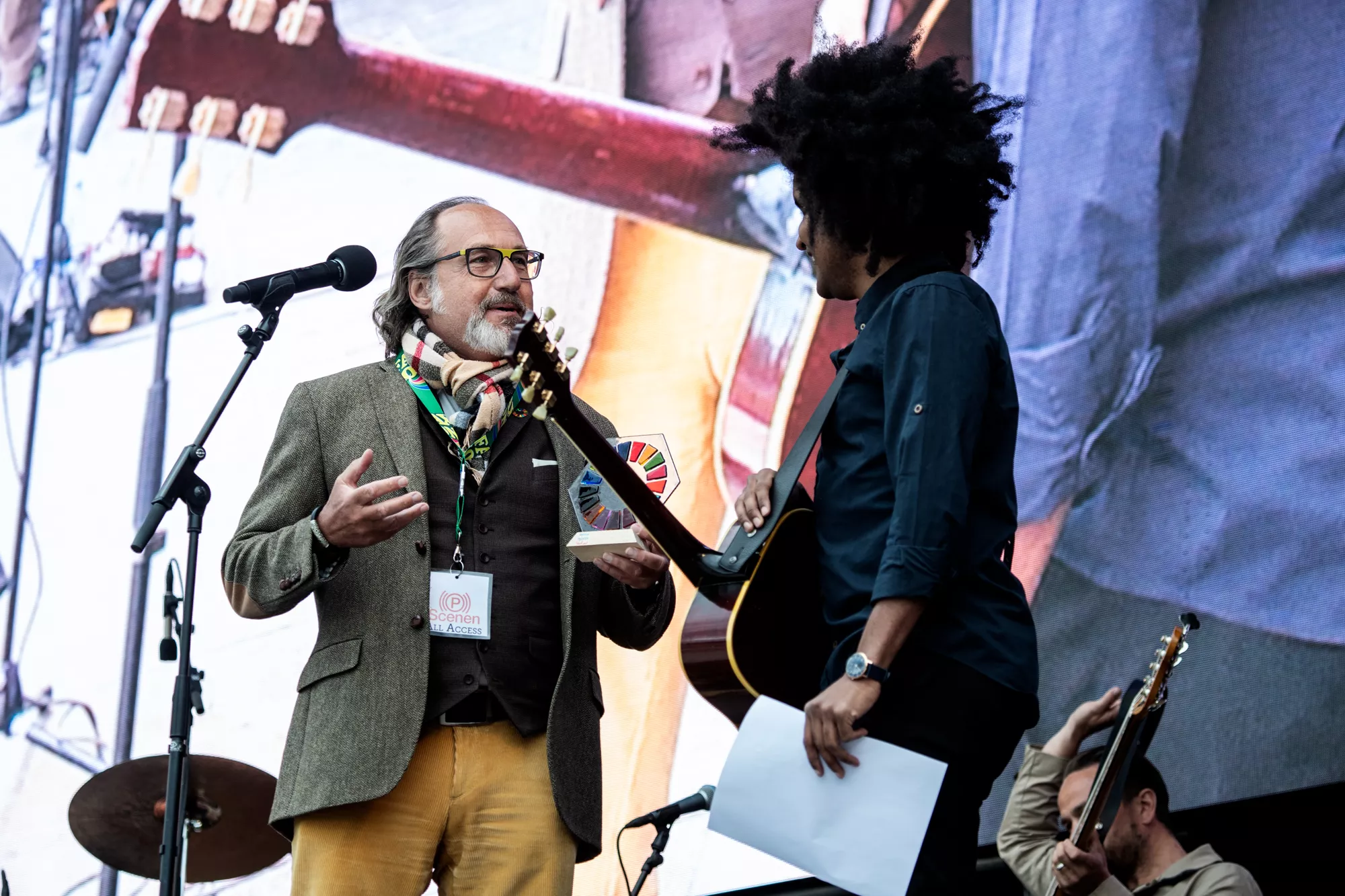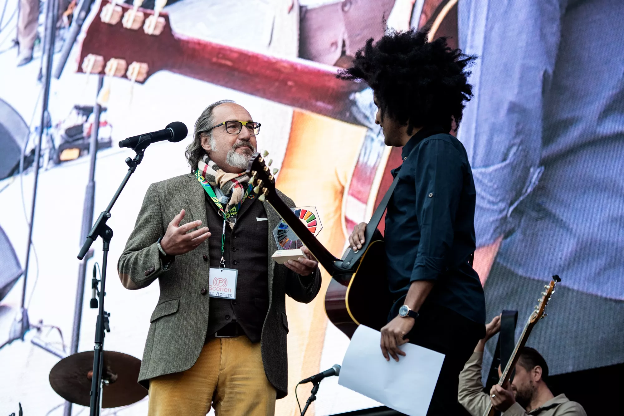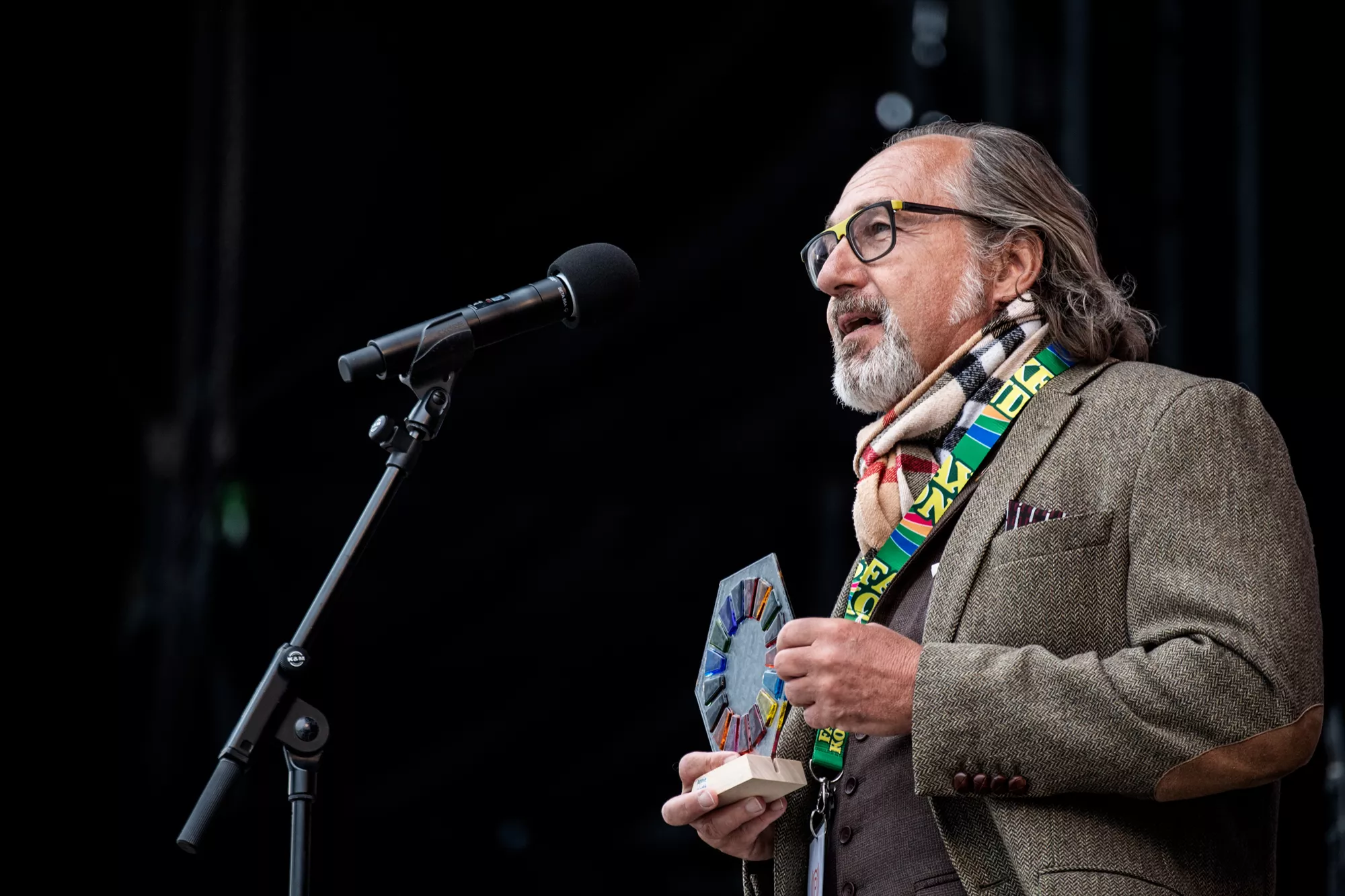 Inden sin koncert fik han dog en overraskelse, idet han fik overrakt en Verdensmåls-statuette af Aarhus City Forenings direktør og bestyrelsesmedlem i landskampagnen Danmark for Målene / Global Public, Claus Bech.