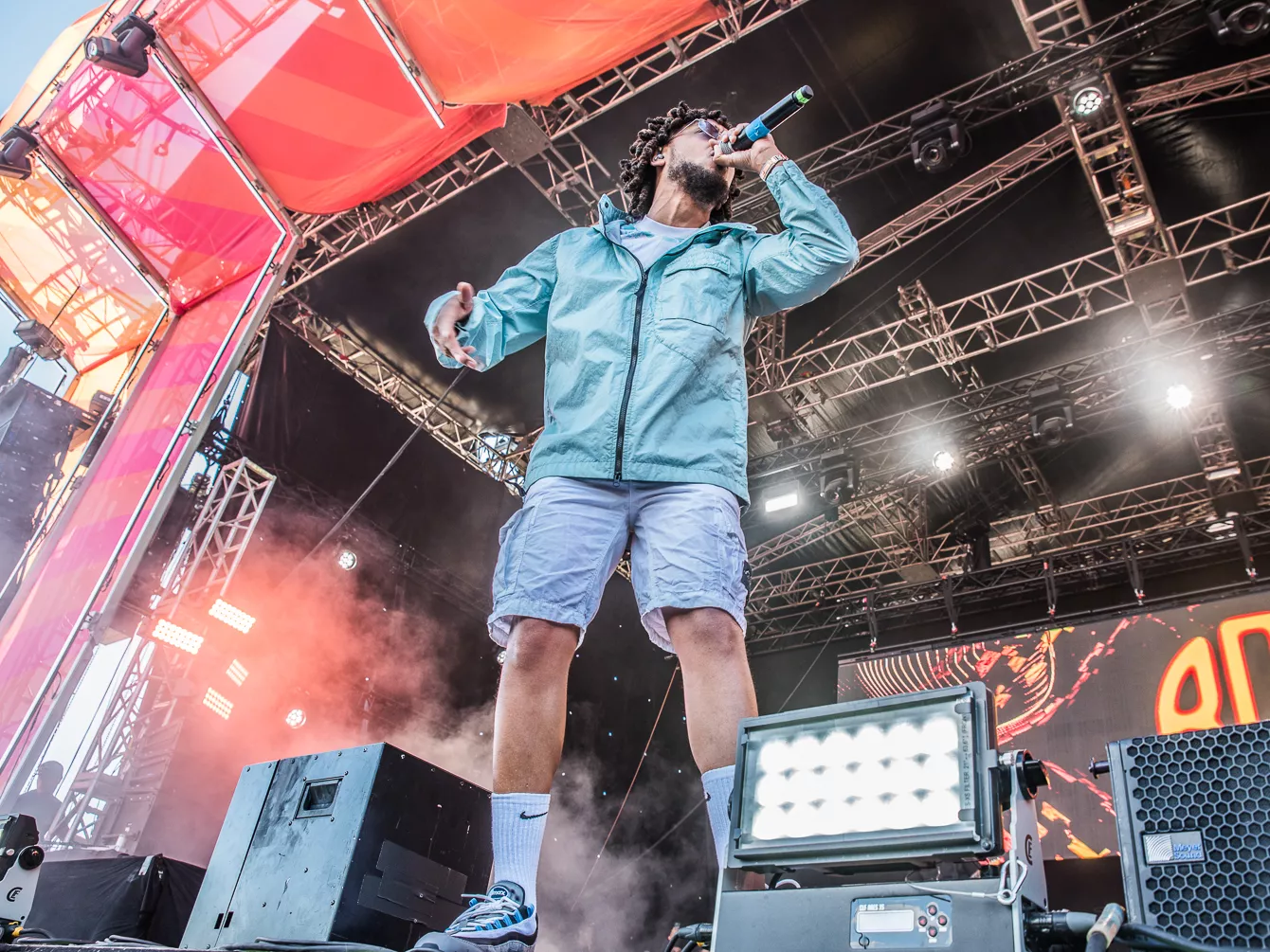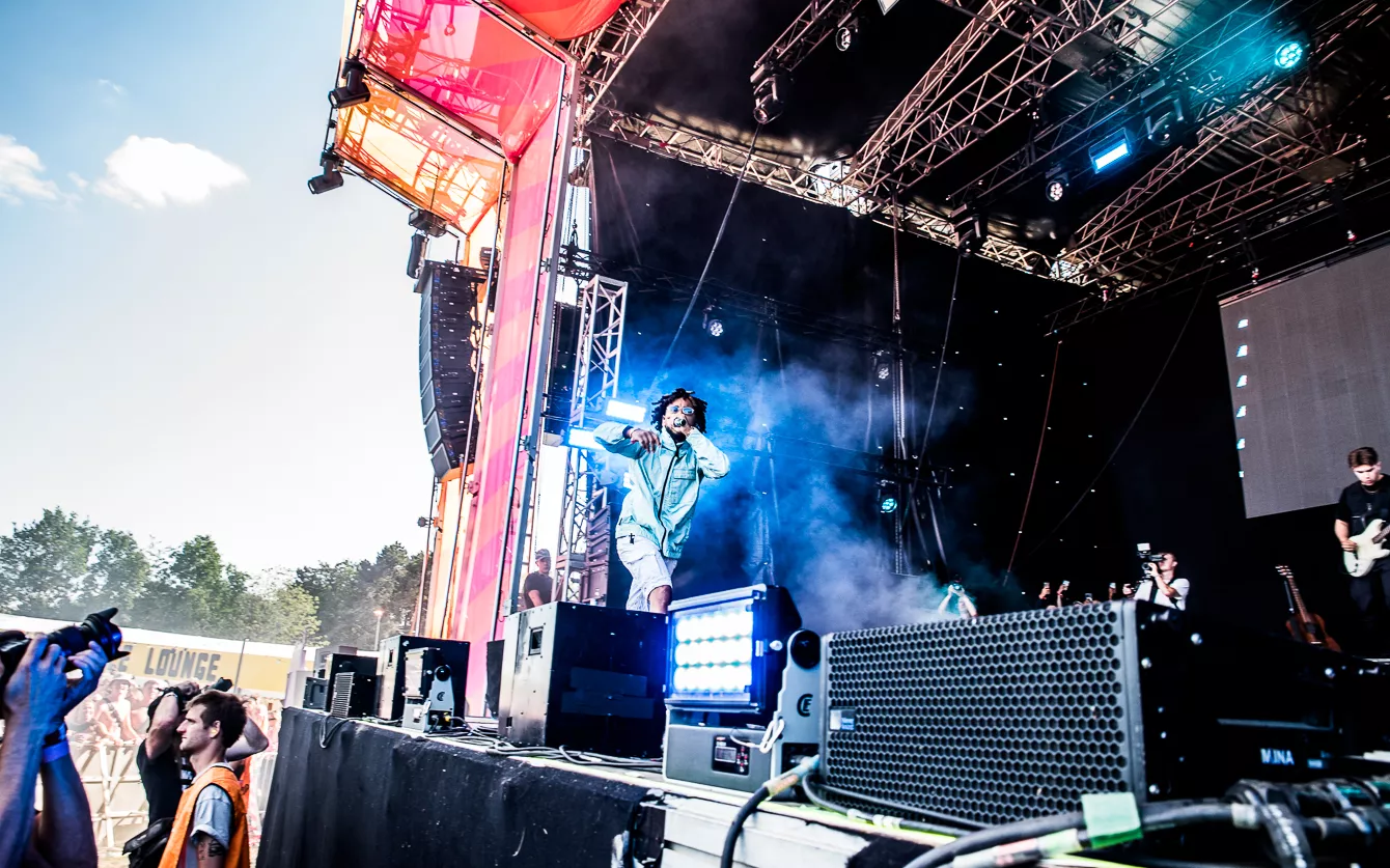 Det er ikke fordi, Eos-scenen er en lille scene som sådan, men antallet af unge berusede festivalsgængere var mere, end hvad rapperen kunne have håbet på.