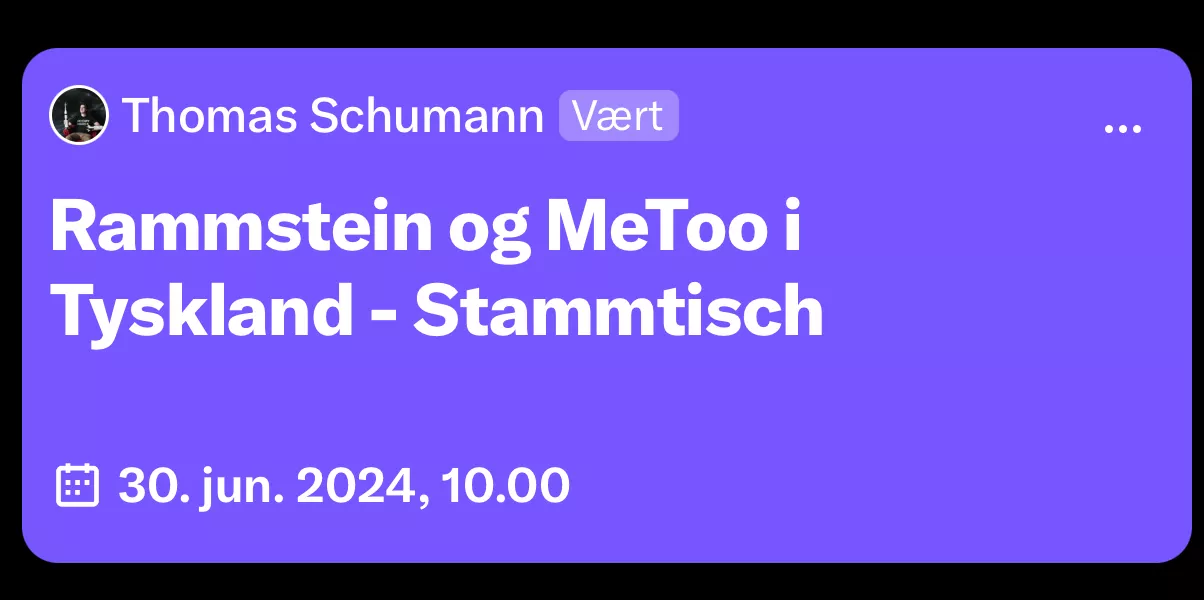 “I podcasten “Stammtisch” giver vært Thomas Schumann lytterne indsigt i det, som optager tyskerne. Søndag den 30. juli klokken 10-11 sender podcasten live via et rum på X, og her skal det handle om Tysklands absolut største band, Rammstein, som har været omdrejningspunkt for en hidsig debat om sexisme. Forsanger Till Lindemann anklages for at rekruttere flotte, kvindelige fans til at have sex med ham.