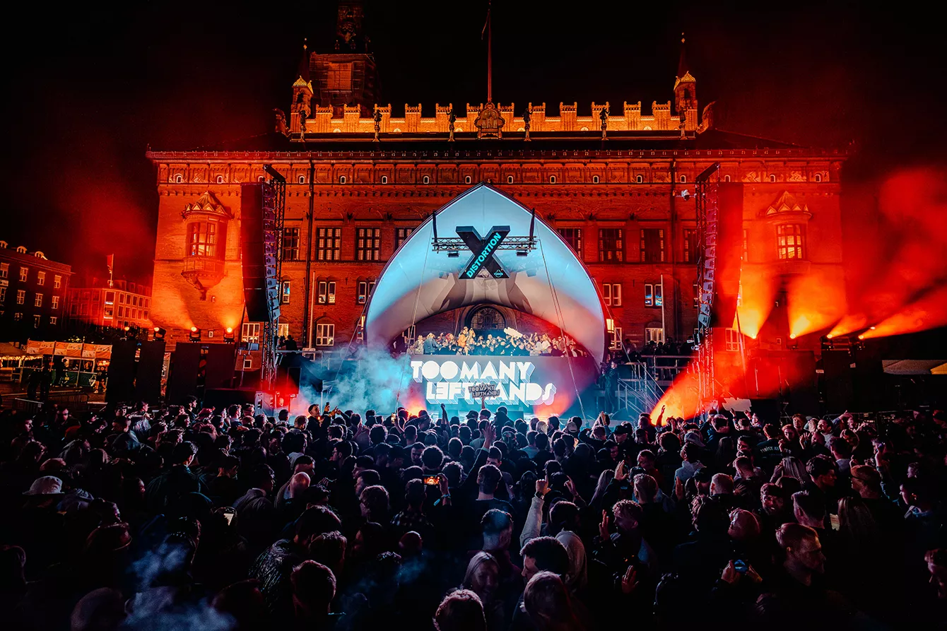 I går åbnede Distortion 2024 med blandt andet Distortion X Rådhuspladsen med et program sammensat af TooManyLeftHands.