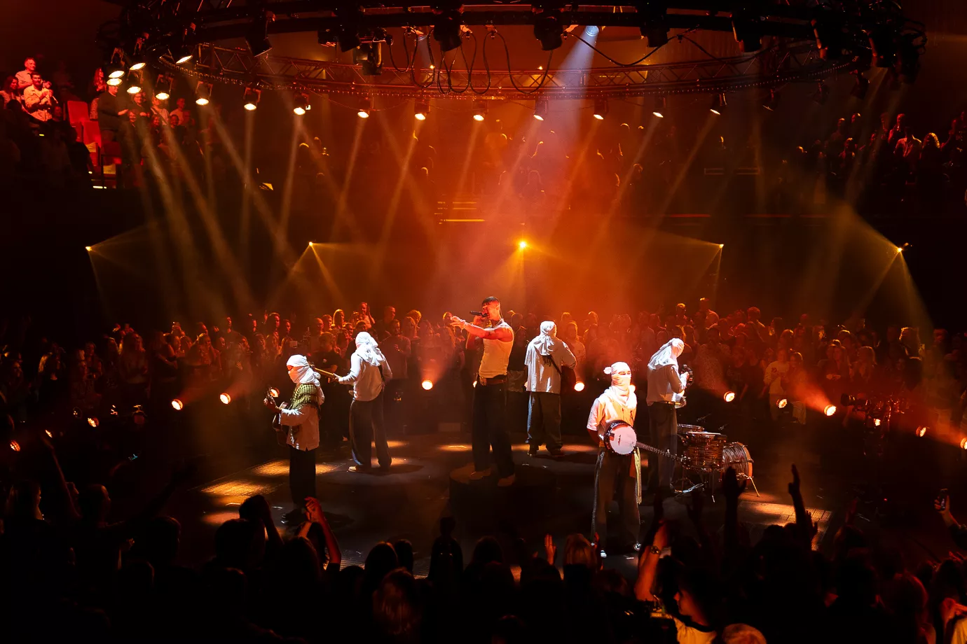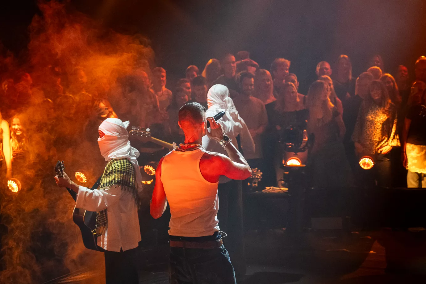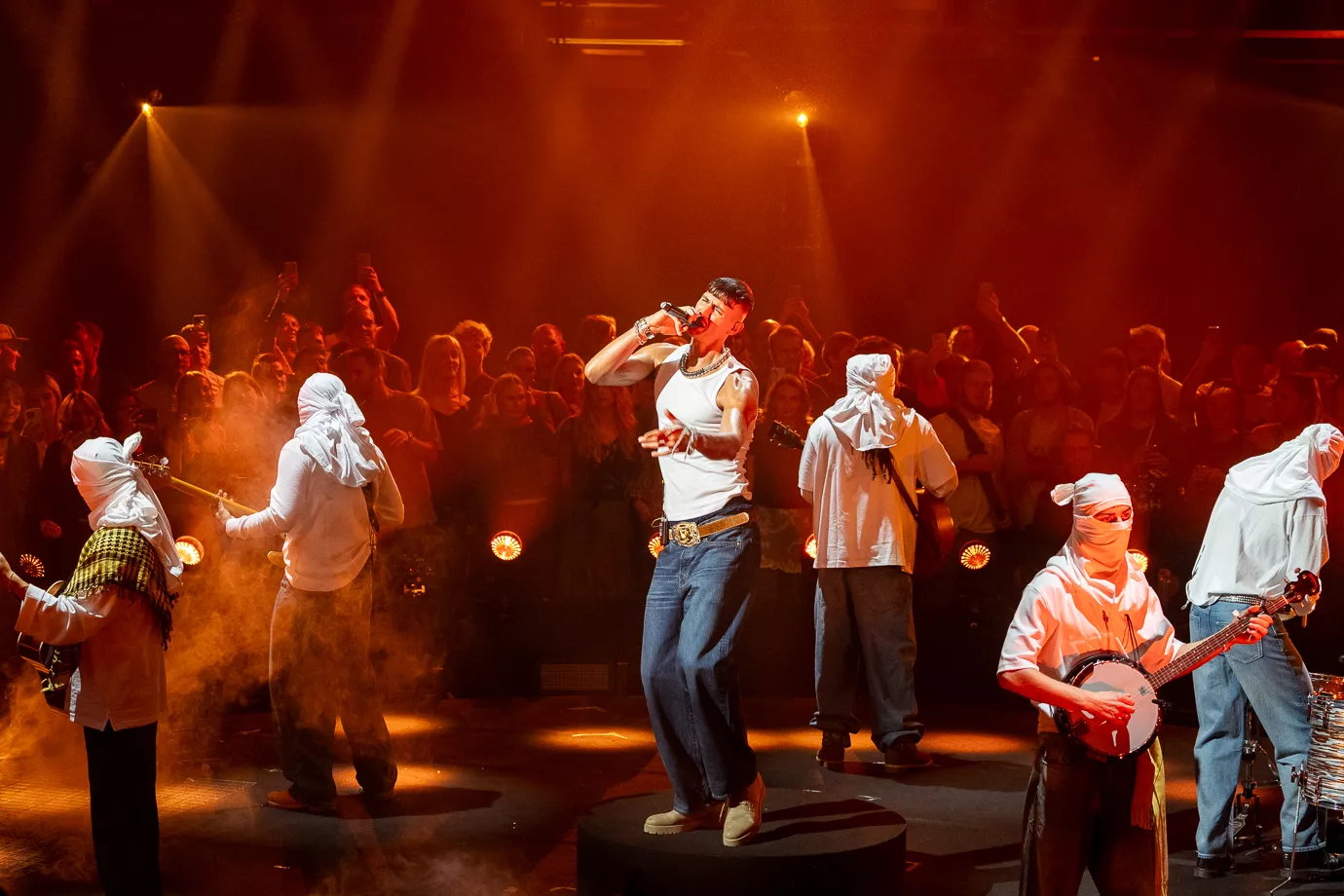 Ena Cosovic og Andreas Mojo er aftenens værter. Aftenen åbnes af Tobias Rahim, der synger sit hit "Jylland.” Han ankommer gående gennem publikum og går derefter ind på den cirkelformede scene. Badet i orange, omringet af hvidklædte, maskerede musikere og med hans iørefaldende, provokerende tekster beriges vi af dansk-kurdiske Tobias Rahim.