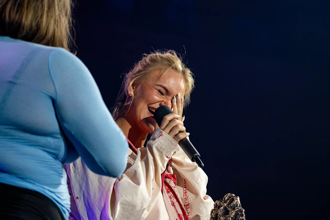 Et rørt og taknemmeligt Blæst kommer på scenen og reflekterer over, hvad P3 Guld har betydet for dem og deres karriere og markerer en smuk afslutning på sanger Fernanda Rosas tid i bandet.