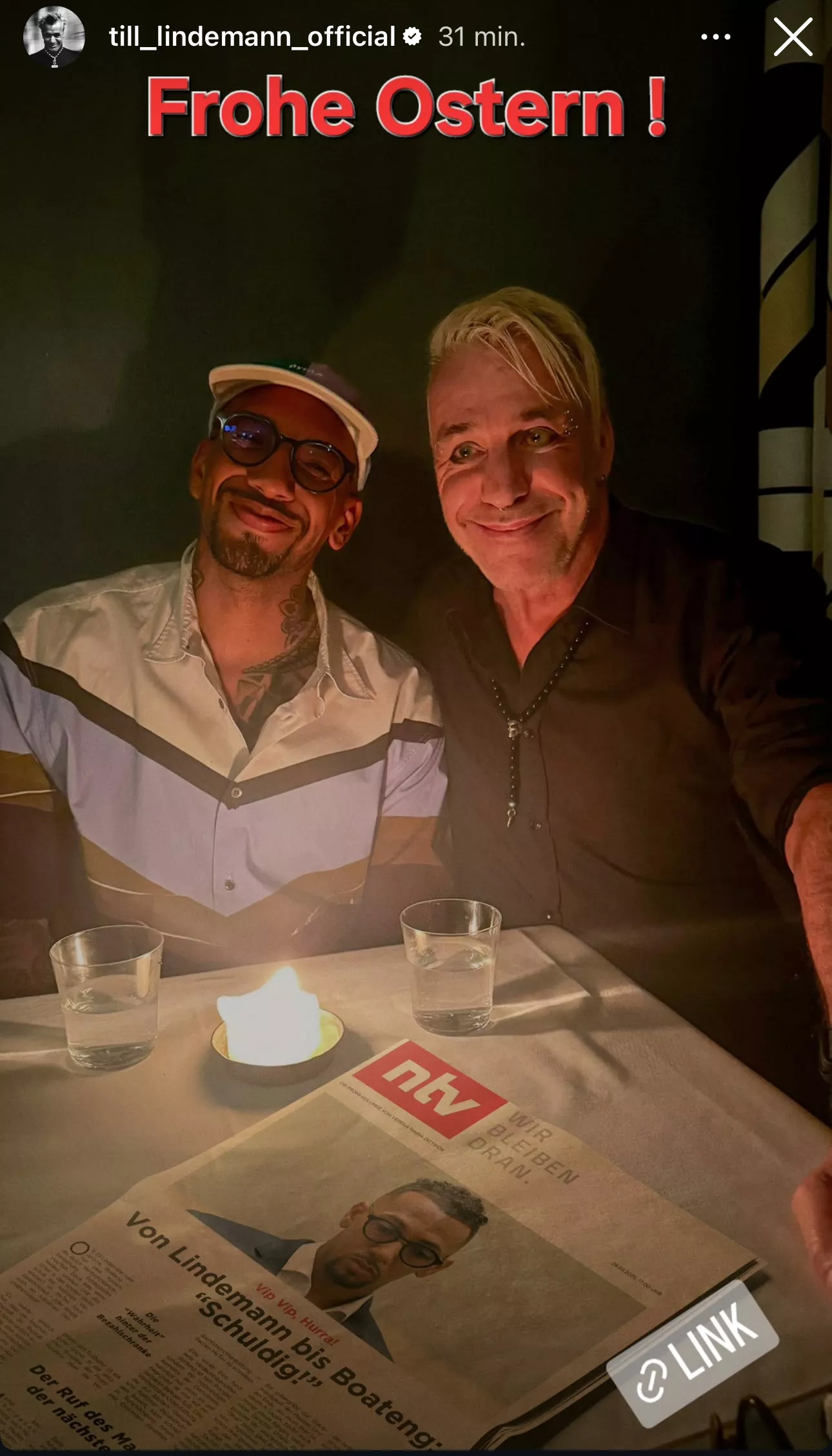 Till Lindemann ønsker "God påske" med tidligere Bayern-fodboldstjerne Jerôme Boateng (se billede 2)