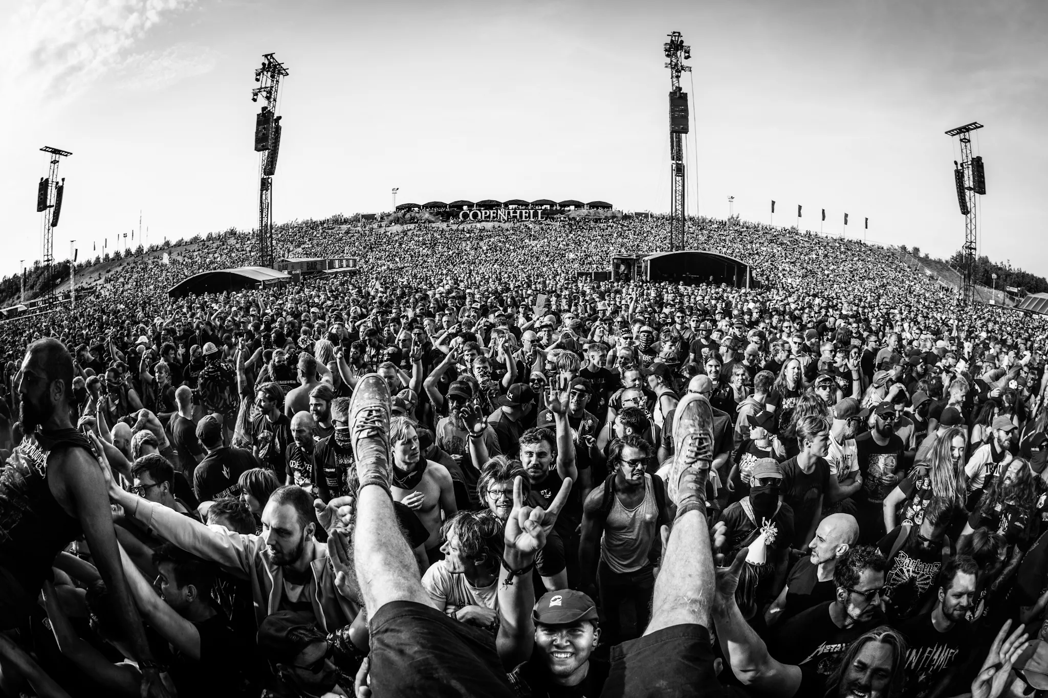 Midt under In Flames’ intense koncert blev jeg hevet med af et par unge gutter, der mente, jeg skulle crowdsurfe. Jeg nåede kun lige at overveje, om det var en god idé, før jeg pludselig lå på ryggen og blev båret frem af hænderne under mig. Med kameraet i den ene hånd fangede jeg menneskehavet foran Hades – et af de øjeblikke, hvor lyd, kaos, adrenalin og fællesskab smelter sammen.