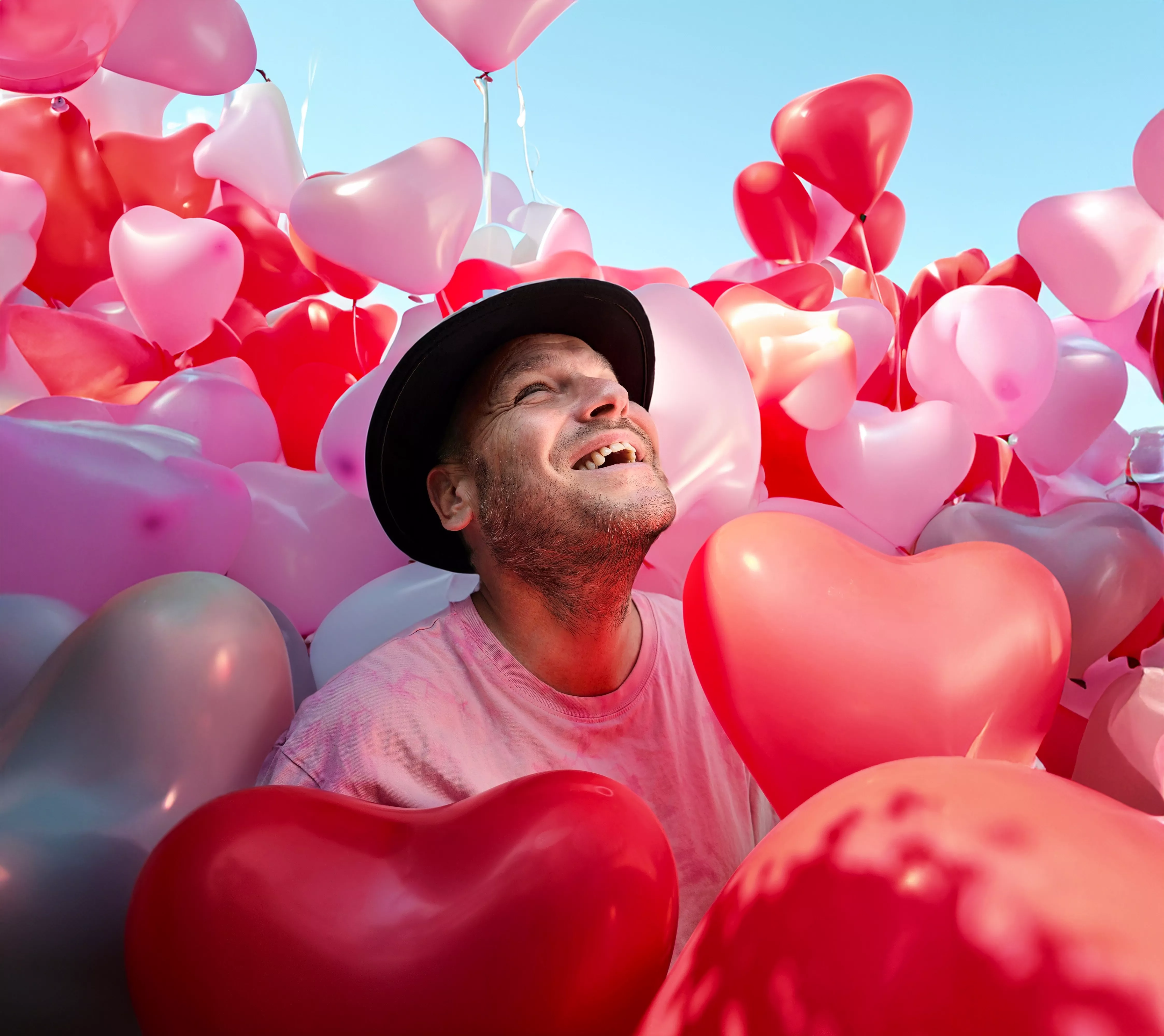Lars, som han også hedder, havde tidligere sat hjerteballoner op til at overraske sin kæreste med, så vi greb ballonerne og fik skudt ham i et opløftet øjeblik. Det er taget i sommer.