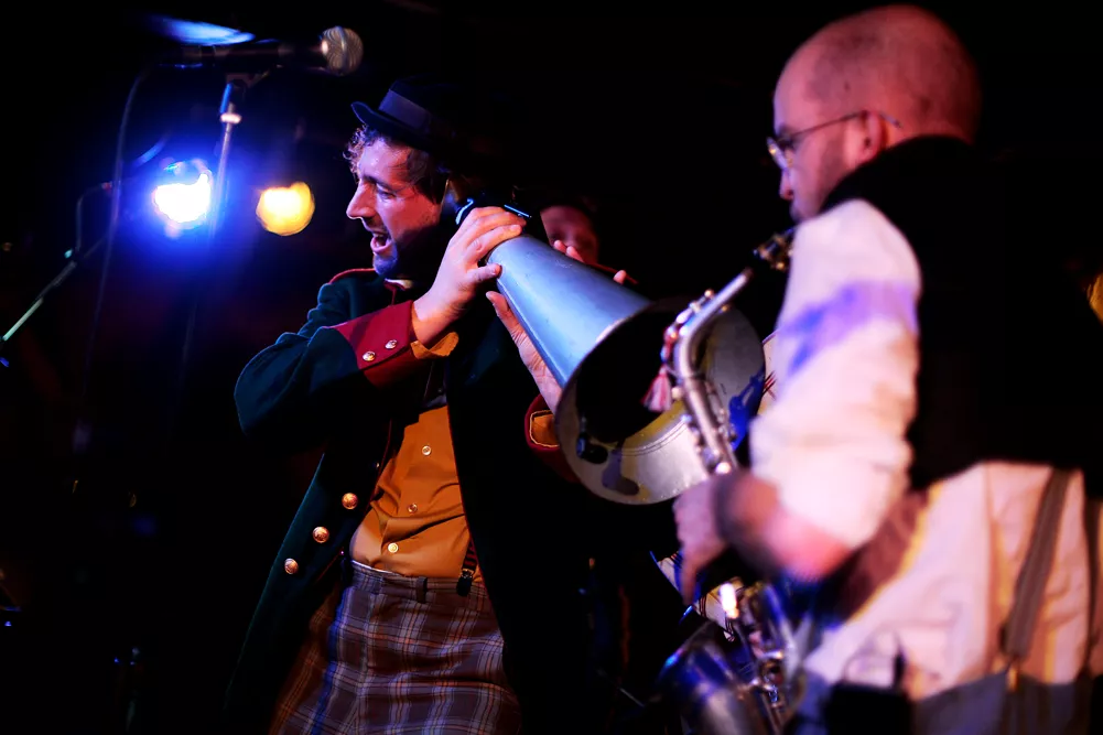 I København var det nu heller ikke ringe, for her fik vi et grundigt besøg til en verden, der mere end duftede af balkan, men som i første omgang også havde en herlig blanding af funk, rockabilly og spandevis af humor kanaliseret gennem det herlige svenske band, Tummel (billedet). Med en sousafon i baggrunden og noget fragmenterende guitar, samt et drive uden lige, satte de fut under hyggen og fik os ind i regulært partymood. Booyaka!