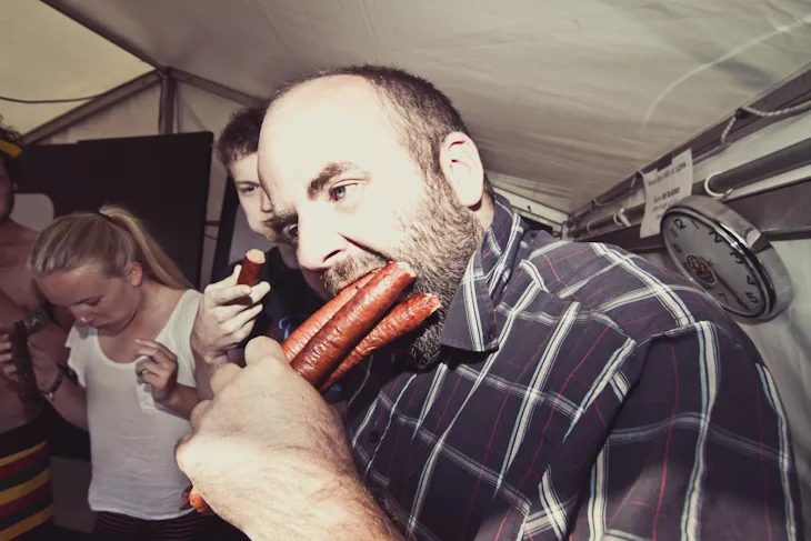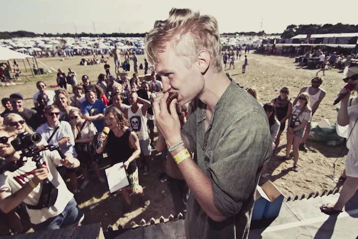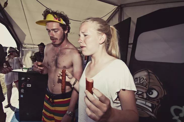 Hvem kunne spise flest og hurtigst pølser på Roskilde Festival? Kig på billederne og se deltagerne – og vinderen
