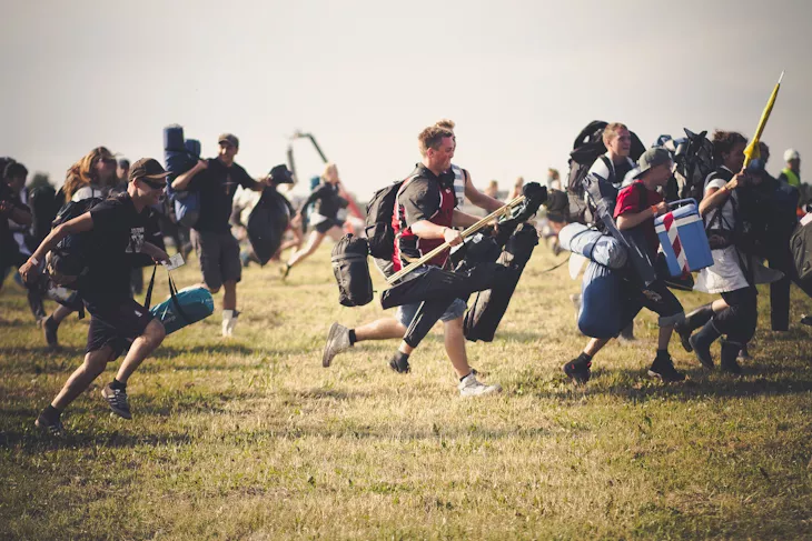 Lørdag klokken 18 åbnede portene ind til campingområderne på Roskilde Festival 2012, og tusindvis af forventningsfulde festivalgæster havde ventet i timevis, nogle siden torsdag aften, for at få en god plads. Derfor var der fuld fart over feltet og hektisk stemning, da pladsen endelig kunne indtages, og folk strømmede ind for at få en god plads. GAFFAs fotografer Henrik Reerslev og Kristoffer Amlani Ulbak og fotoblogger og GAFFA-konkurrencevinder Mathias Eis Schultz var på pletten, da portene gik op, og du kan se deres billeder i GAFFAs gallerisektion.