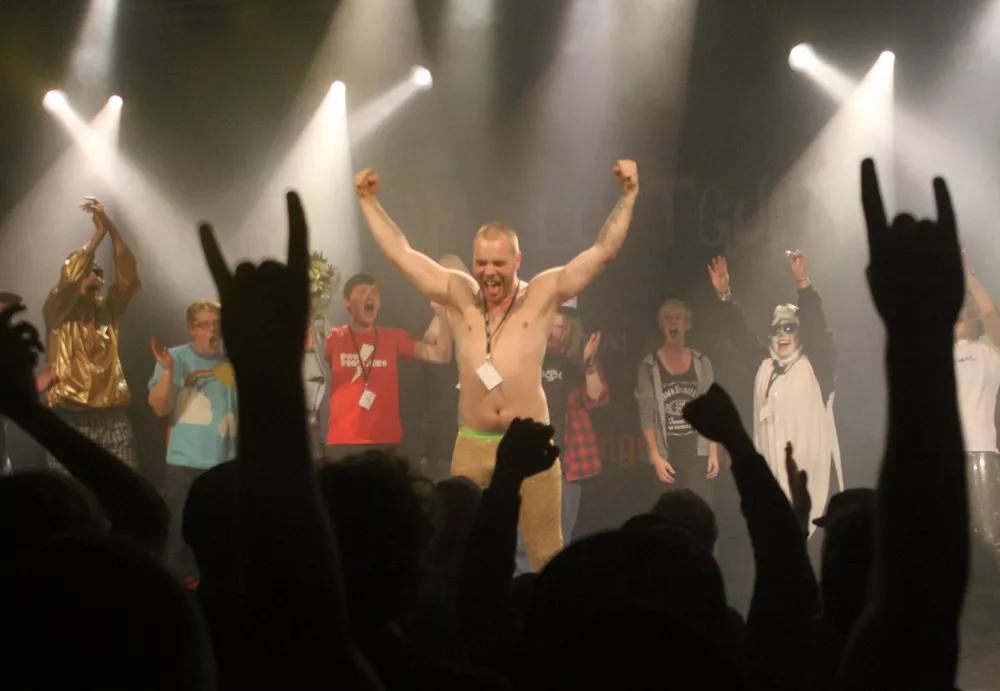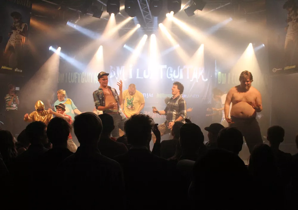 Indrømmet: Jeg anede ikke, hvad jeg skulle forvente mig af DM i luftguitar, men i forhold til underholdning blev jeg bestemt ikke skuffet. Hvis man havde tænkt, at lørdag aften skulle bruges på noget seriøst, så var man i høj grad gået forkert i byen – men det tror jeg egentlig ikke så mange havde tænkt. Størstedelen af det pænt store publikum var unge mennesker, der brugte aftenens event som startskud til en bytur. Det er ikke noget jeg ved. Blot et gæt, men et ret godt et af slagsen, da der med indgangsbilletten fulgte gratis adgang med til afterparty på et eller andet diskotek.