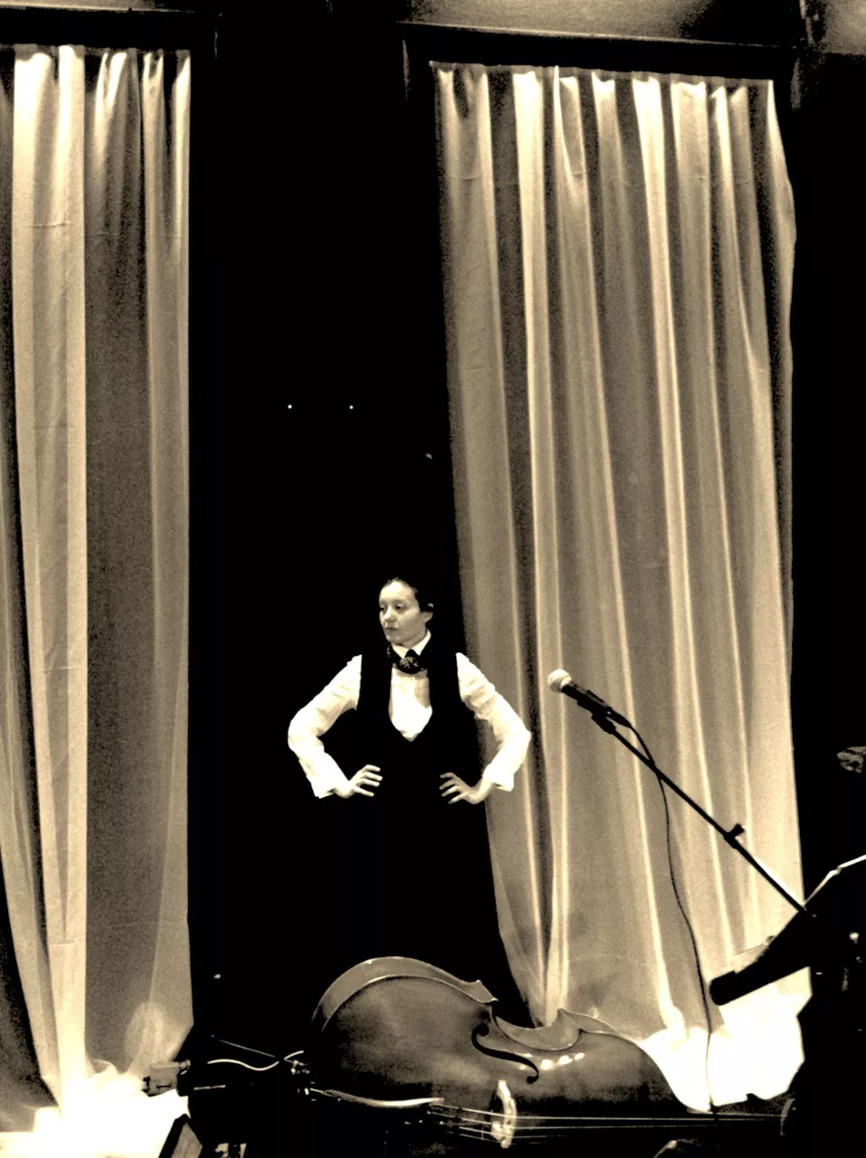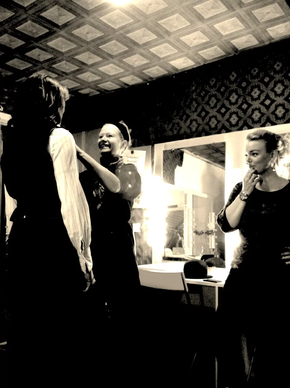 De første to timer starter med kun at øve selve musikken og prøve diverse lyde og instrumenter. Vi ender op med at have rundet både John og John (Cale og Mogensen), sådan i en slags inspirations-agtig spændvidde. Jeg foreslår Ida og Henriette at vi faldbyder os selv under navnet "Trio Bodega" hvor vi backer semi-kendte sangere på skumle bæverdings rundt omkring på byens brokvarterer. Der er helt sikkert ingen penge i det, men det gi'r go' streetcred og billige points hos Enhedslisten-typer.
