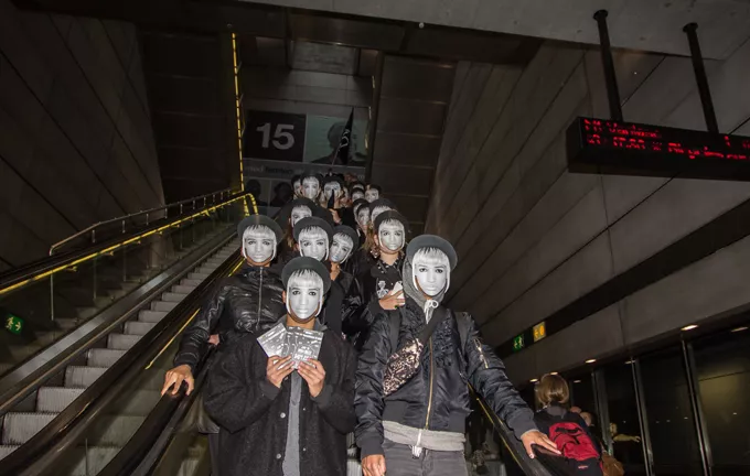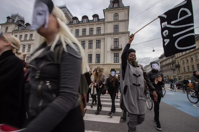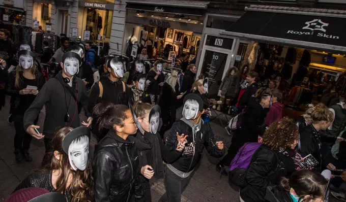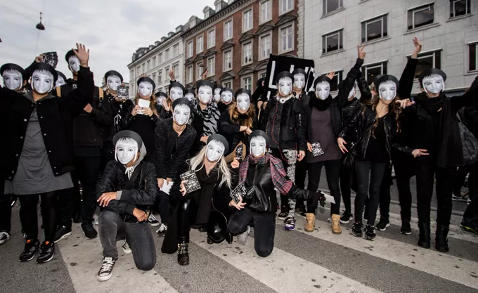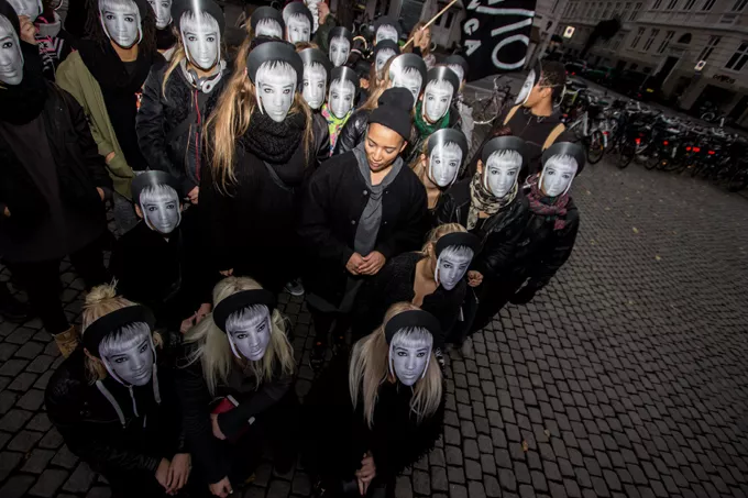 30 Lucy Love-kloner gik parade i det indre København som kombineret performance og reklameindslag