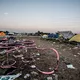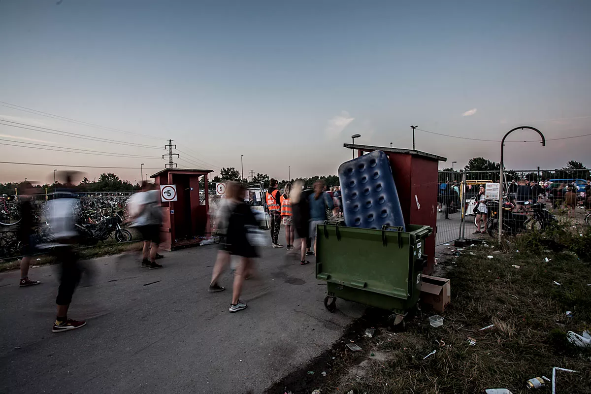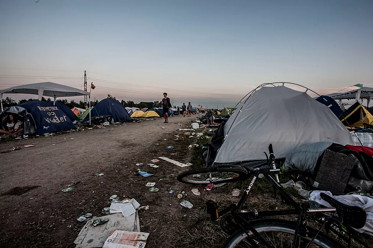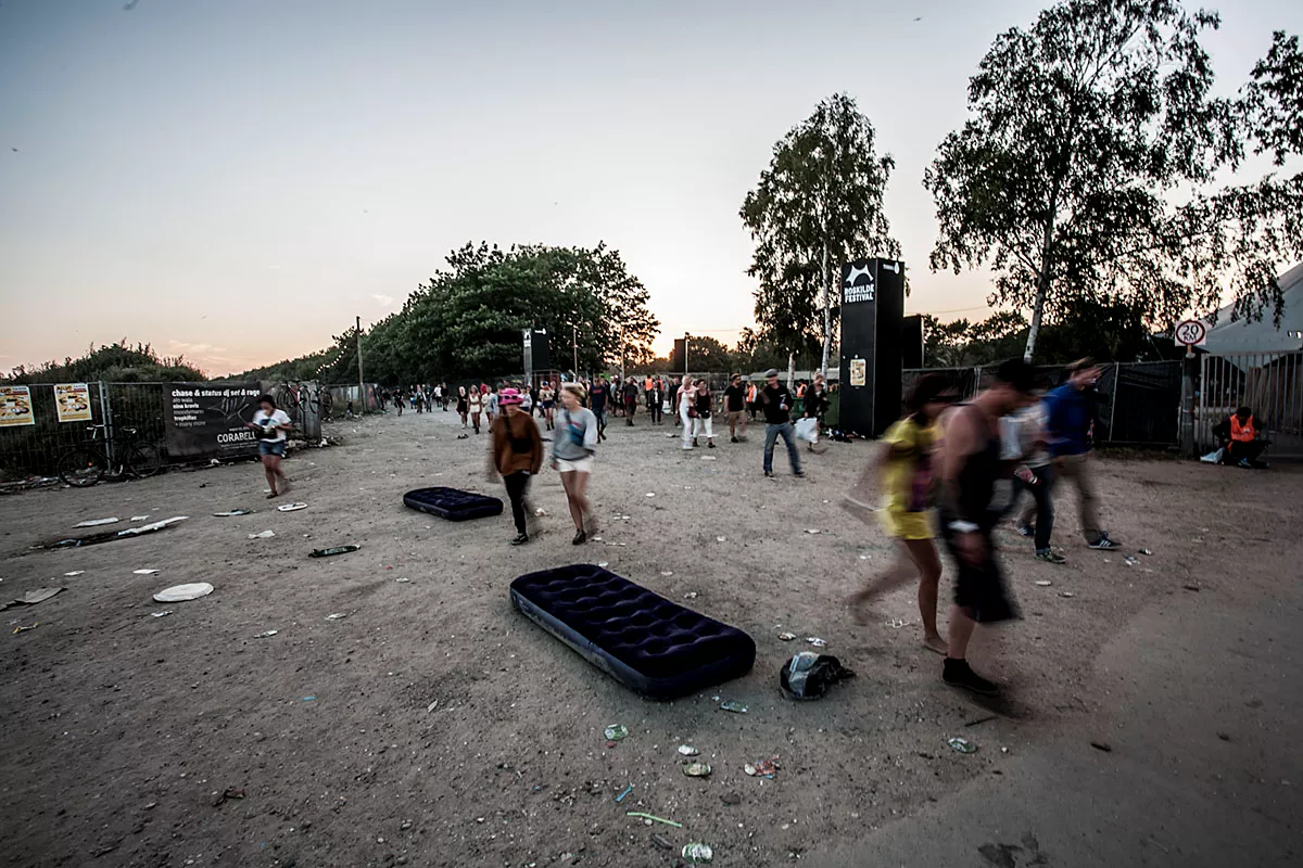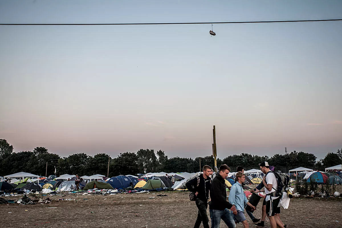 I GAFFAs billedgalleri kan du tage festivalpladsen i selvsyn, efter 80.000 glade mennesker har festet siden forrige søndag. Teltene er smadrede, campingstolene ligger ødelagte med deres sortfarvede ben stikkende op som knækkede ribben, efterladt mad ligger og mugner i den steghede sol. Mest af alt ligner det en stor losseplads.